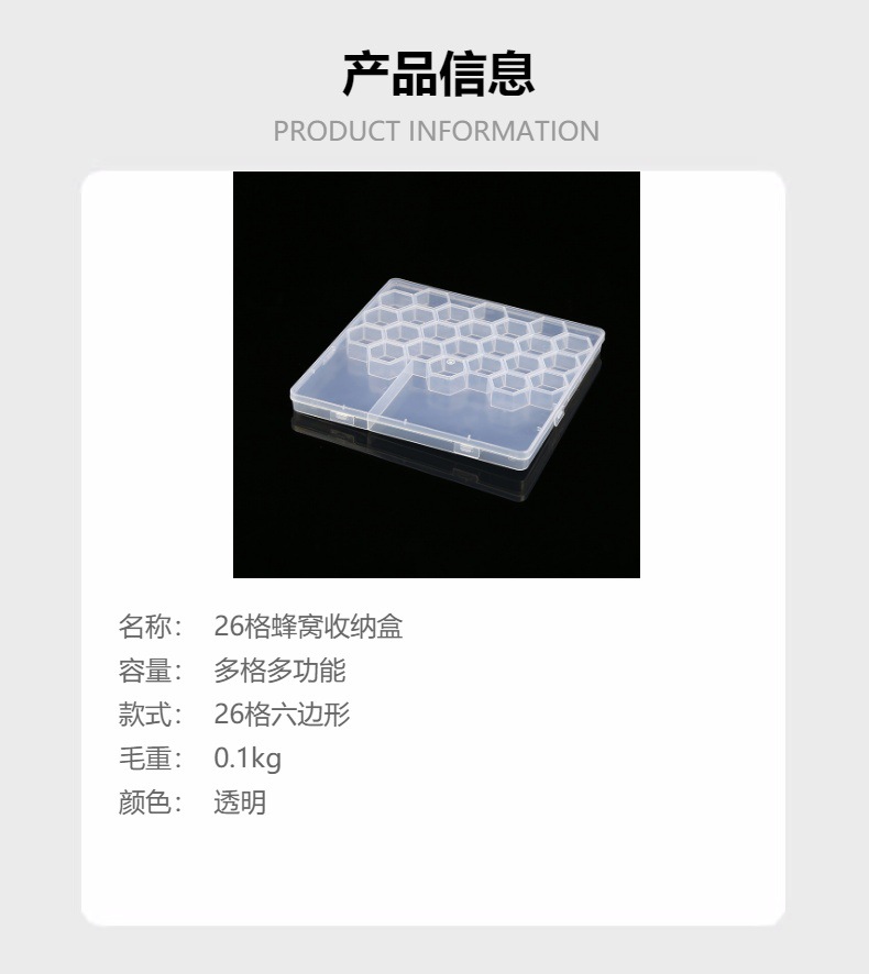 Nueva caja de almacenamiento de panales de 26 celdas, herramientas de hardware diy, joyas transparentes, caja de almacenamiento de perlas de arroz de cerámica blanda