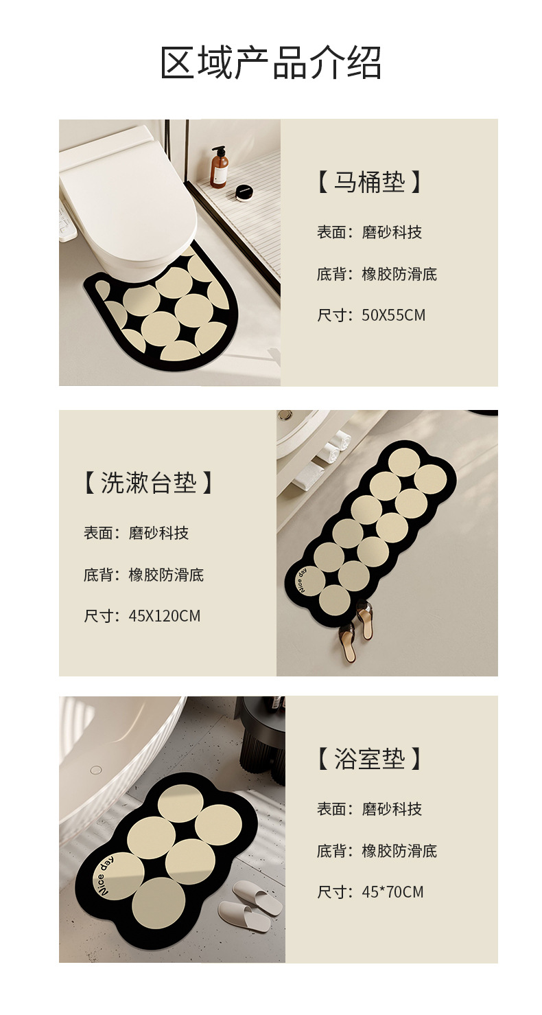 Absorción de agua del baño, almohadilla de barro de diatomeas blandas, almohadilla antideslizante del baño, inodoro, juego de lavamanos doméstico