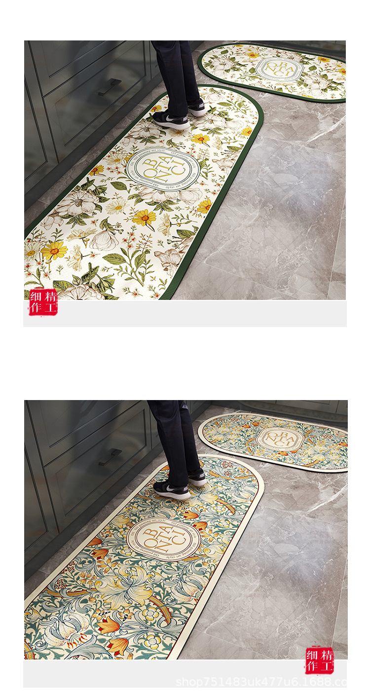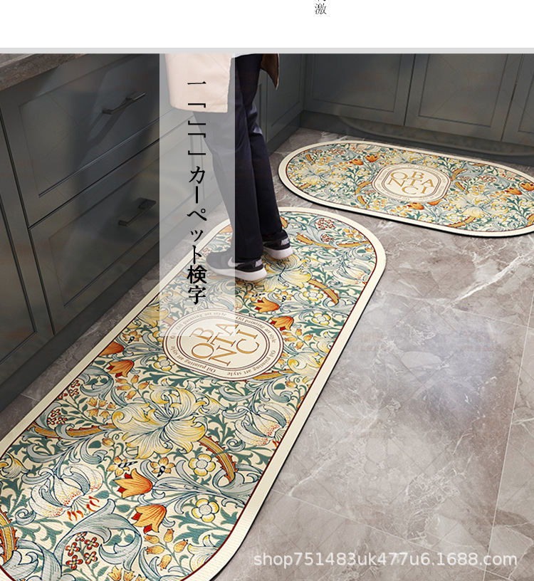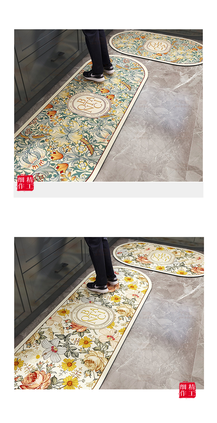 Almohadillas de suelo de cocina retro largas tiras antideslizantes, absorbentes de agua y resistentes al aceite están llenas de alfombras combinadas de almohadillas para los pies en la puerta de entrada de los hogares.