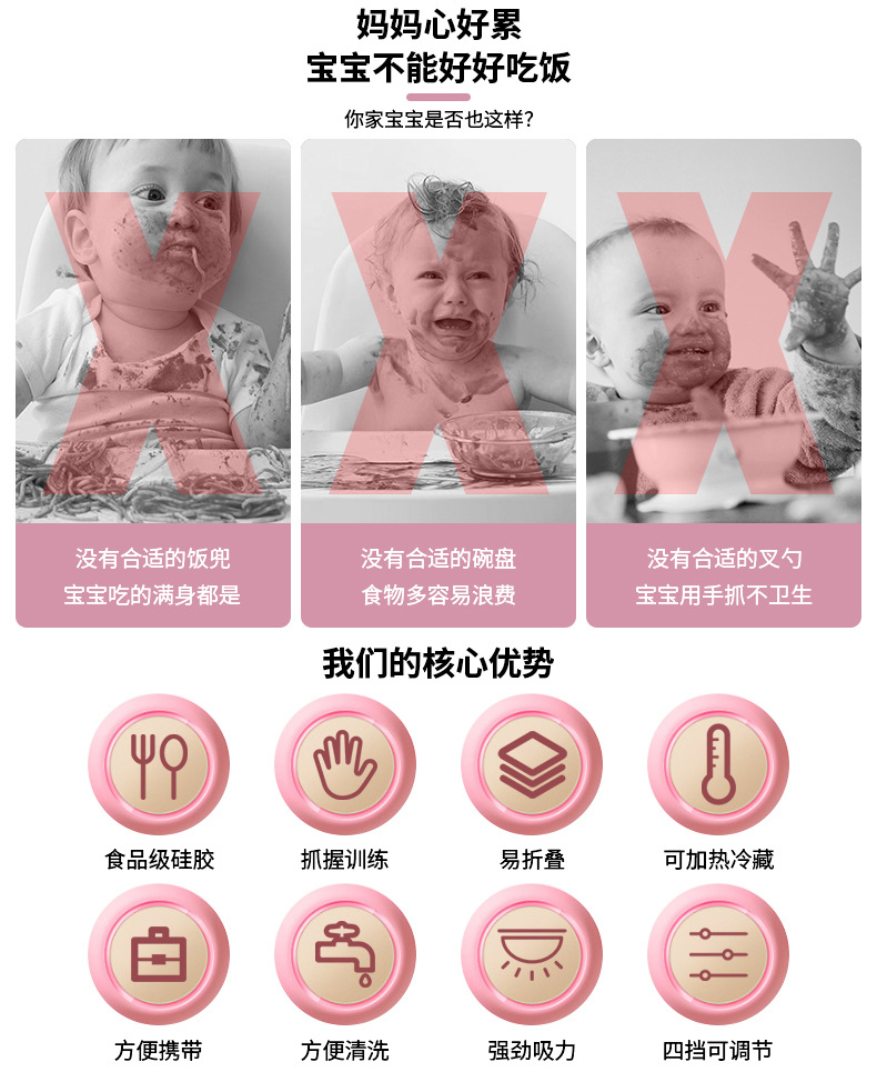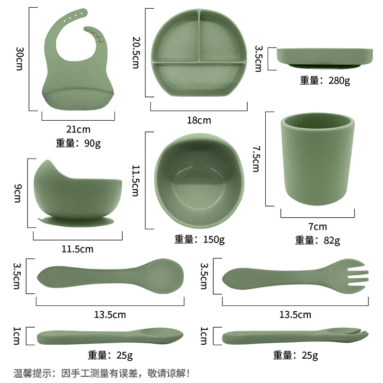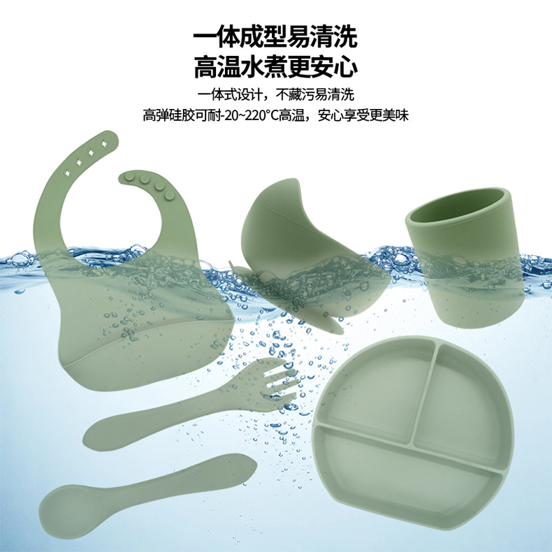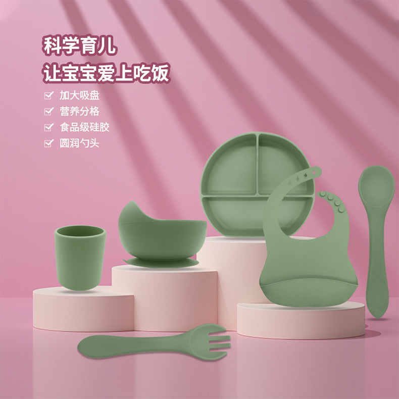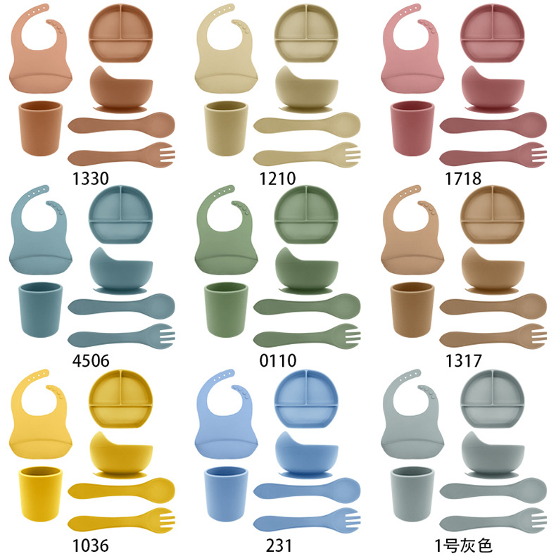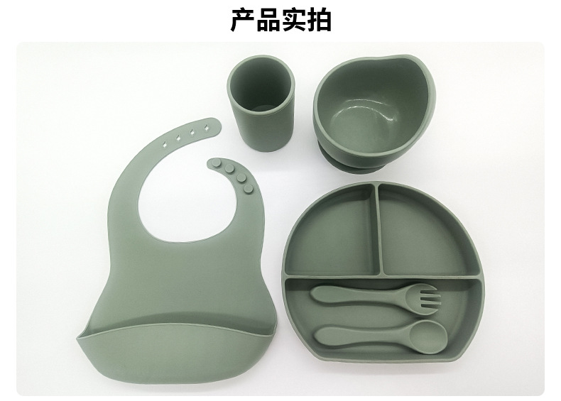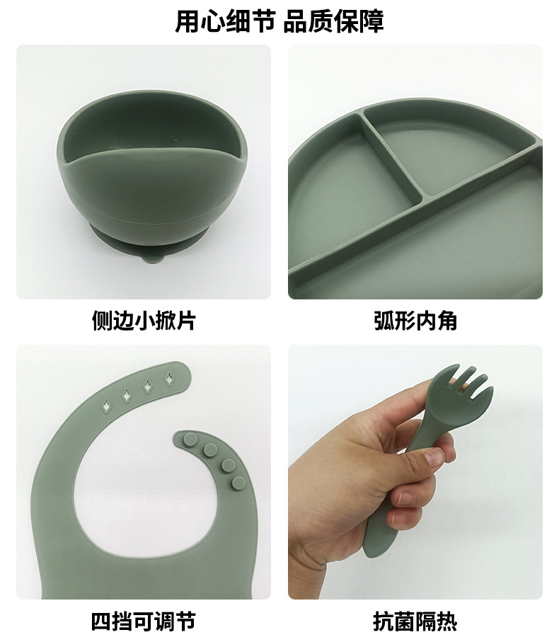 Juegos de vajilla de alimentos complementarios para niños de silicona de grado alimenticio al por mayor de vajilla de entrenamiento de alimentación para bebés a prueba de caídas