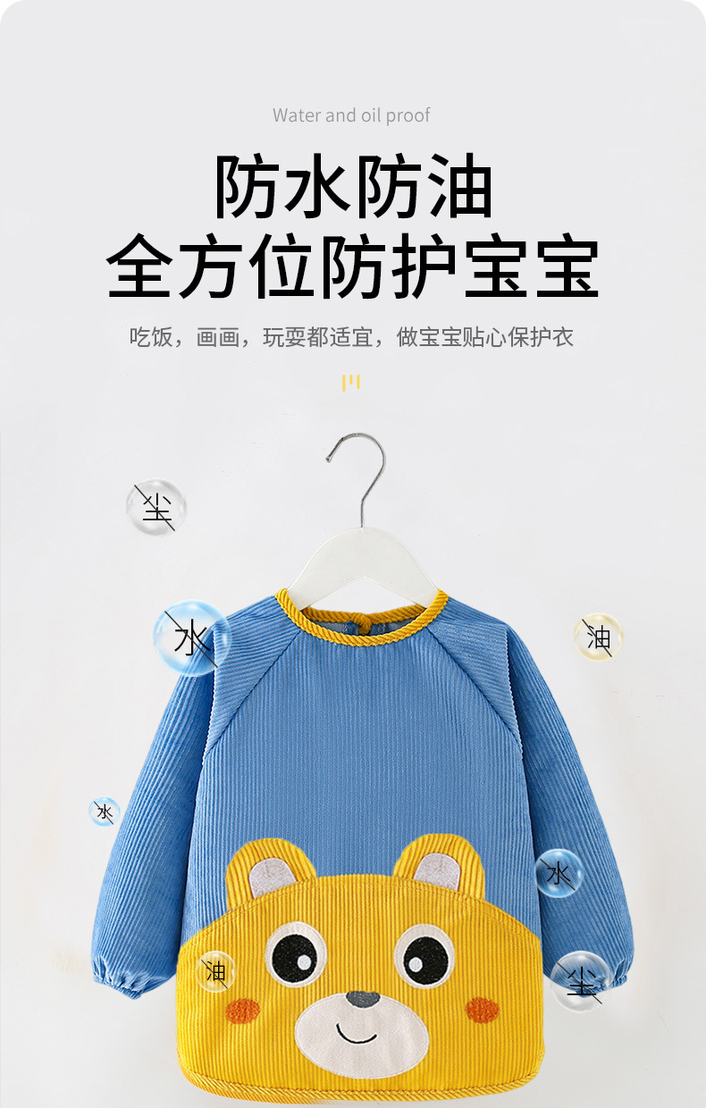 Ropa de abrigo para niños, pana de manga larga, impermeable y sucia en otoño e invierno, ropa de protección para bebés, baberos para bebés, comida y ropa.
