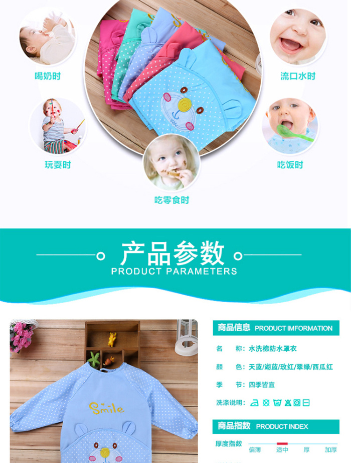 Ropa de abrigo para niños contra la ropa de manga larga impermeable para bebés y niños con ropa de algodón lavada para comer contra la ropa de abrigo