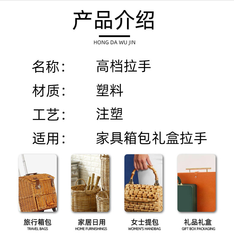Accesorios de equipaje de hardware de mano, caja de trolley, plástico rojo de la mano, bolso de mano de plástico plegable
