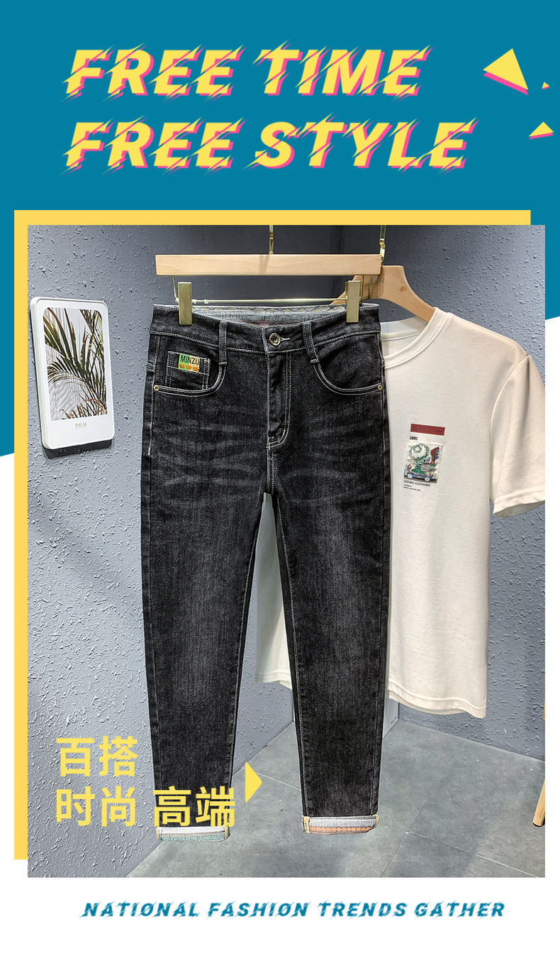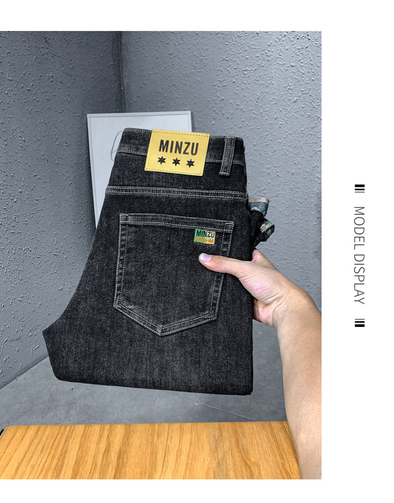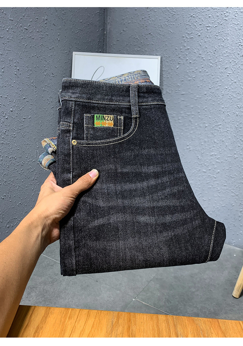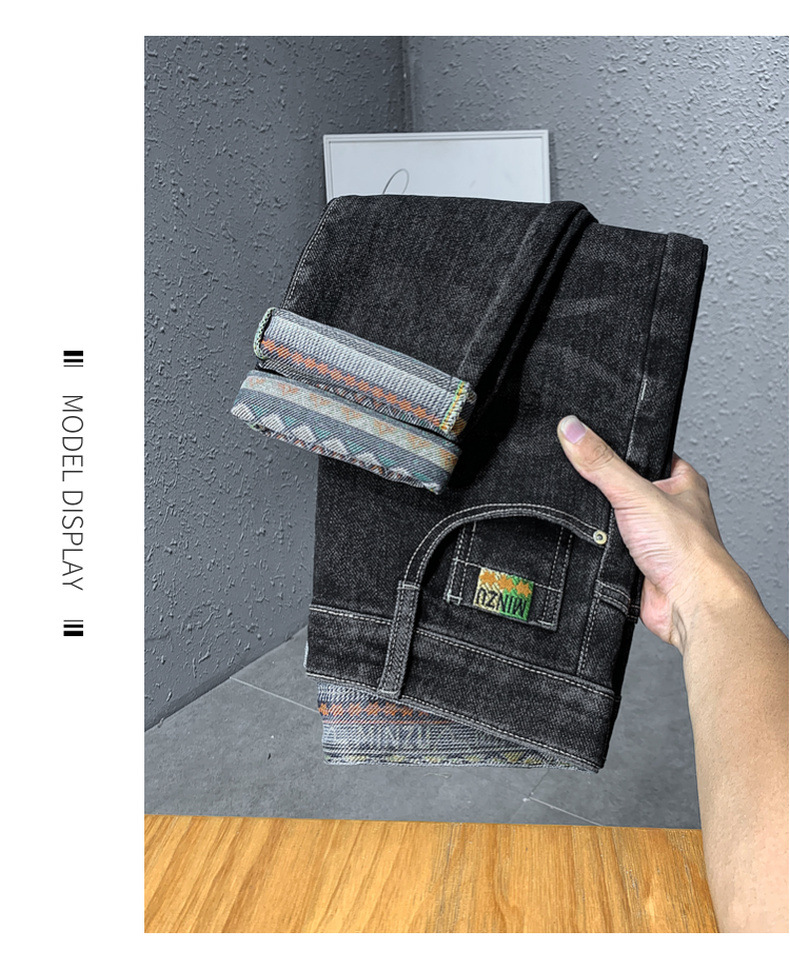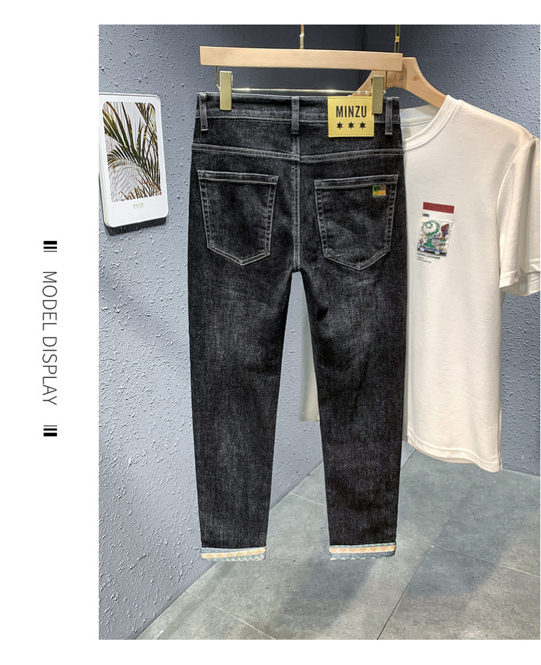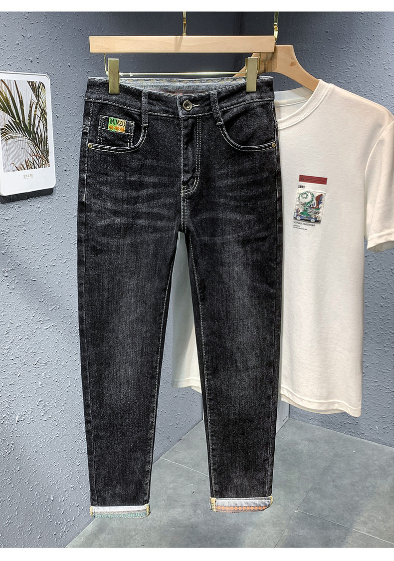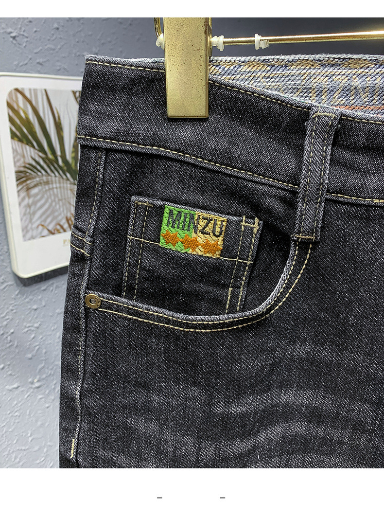 En otoño de 2023, los nuevos jeans masculinos están bordados de moda, delgados, rectos y elásticos, y pantalones negros largos 3002.
