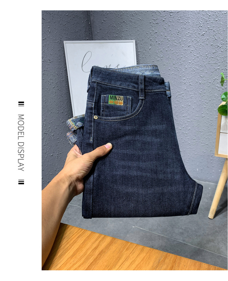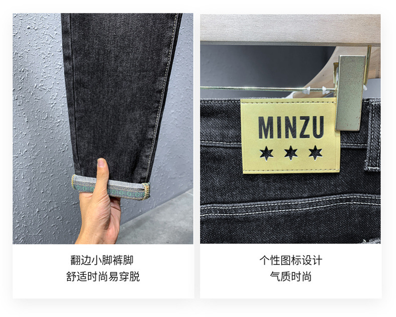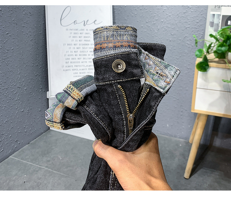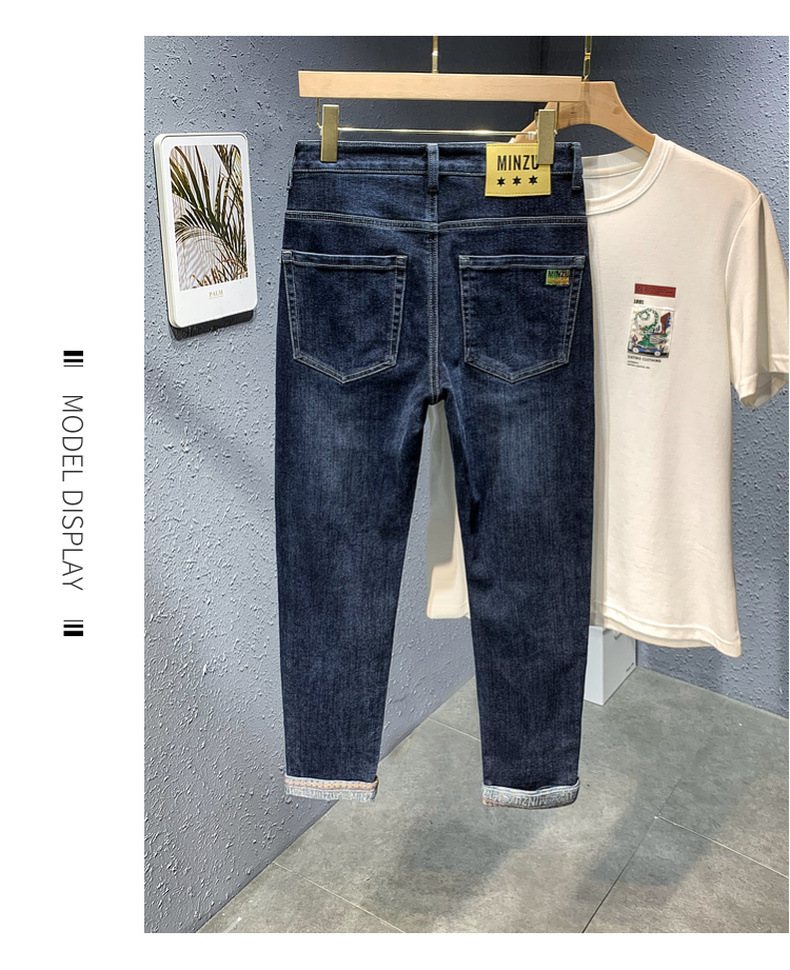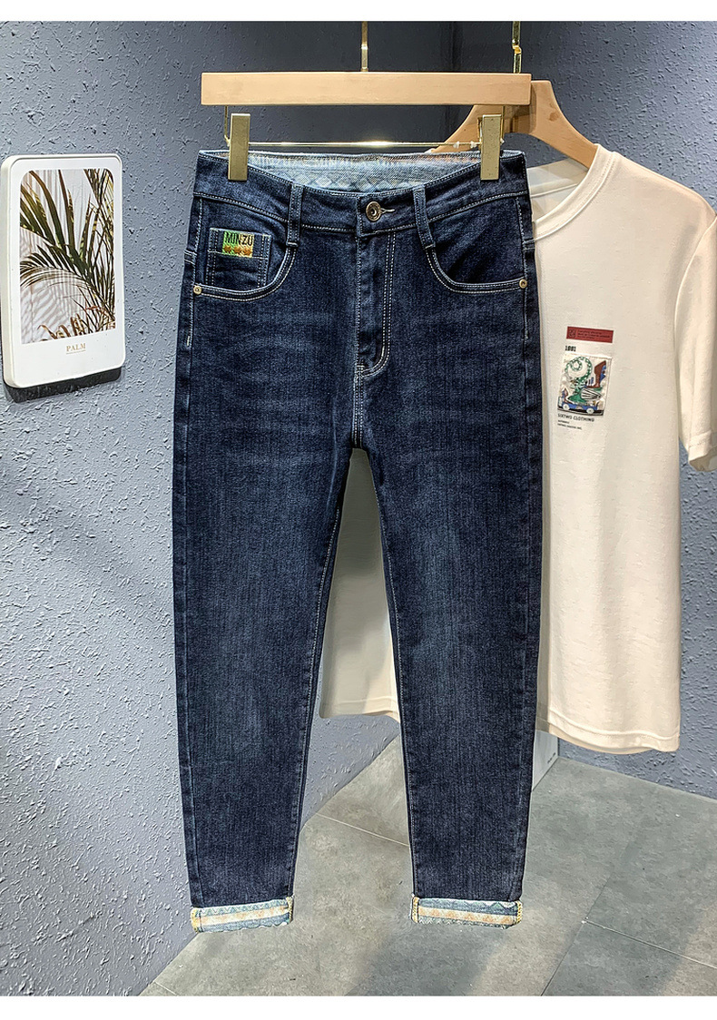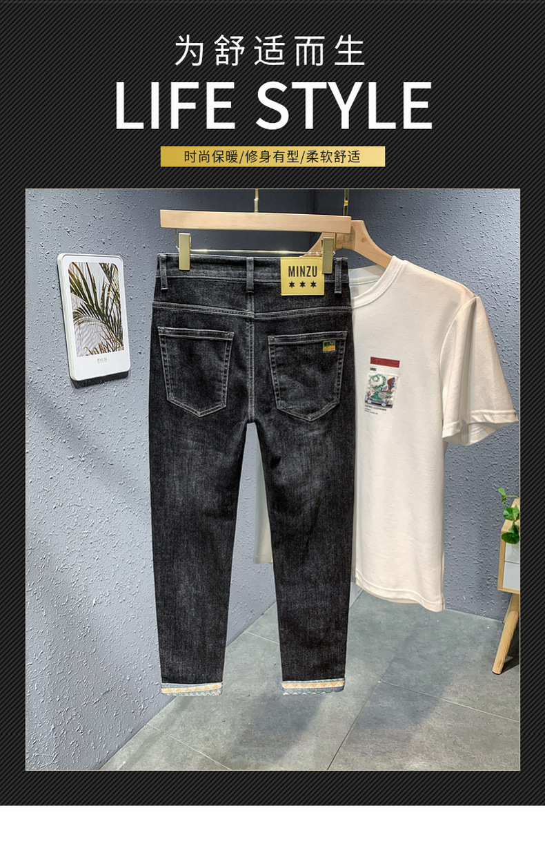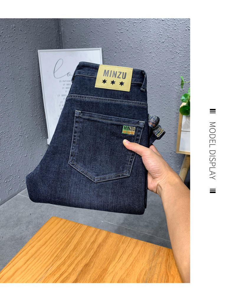 En otoño de 2023, los nuevos jeans masculinos están bordados de moda, delgados, rectos y elásticos, y pantalones negros largos 3002.