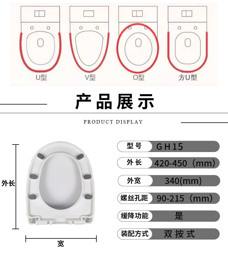 El fabricante suministra directamente una tapa de inodoro en forma de u para quitar rápidamente el asiento engrosado con un clic y cubrir una tapa de inodoro en forma de u para reemplazar la placa de pp.