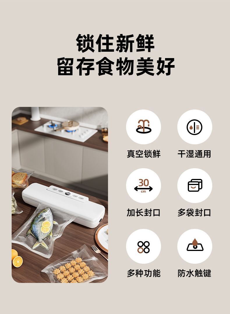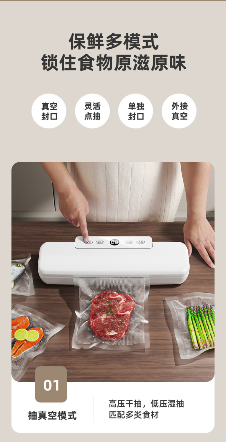 Pantalla digital de alta gama, máquina automática de sellado al vacío, máquina de embalaje de alimentos doméstica, bomba de vacío de extracción y compresión de Alimentos