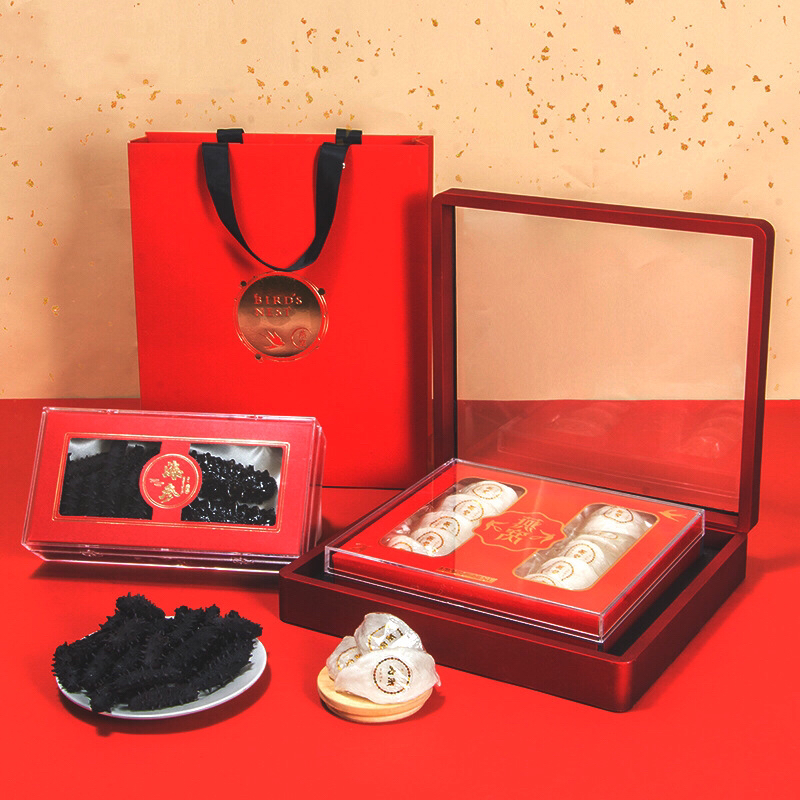 Tónico embalaje universal caja de regalo de nido de pájaro de pepino de mar 100g caja de regalo transparente con ventana abierta caja de regalo vacía se puede imprimir logotipo