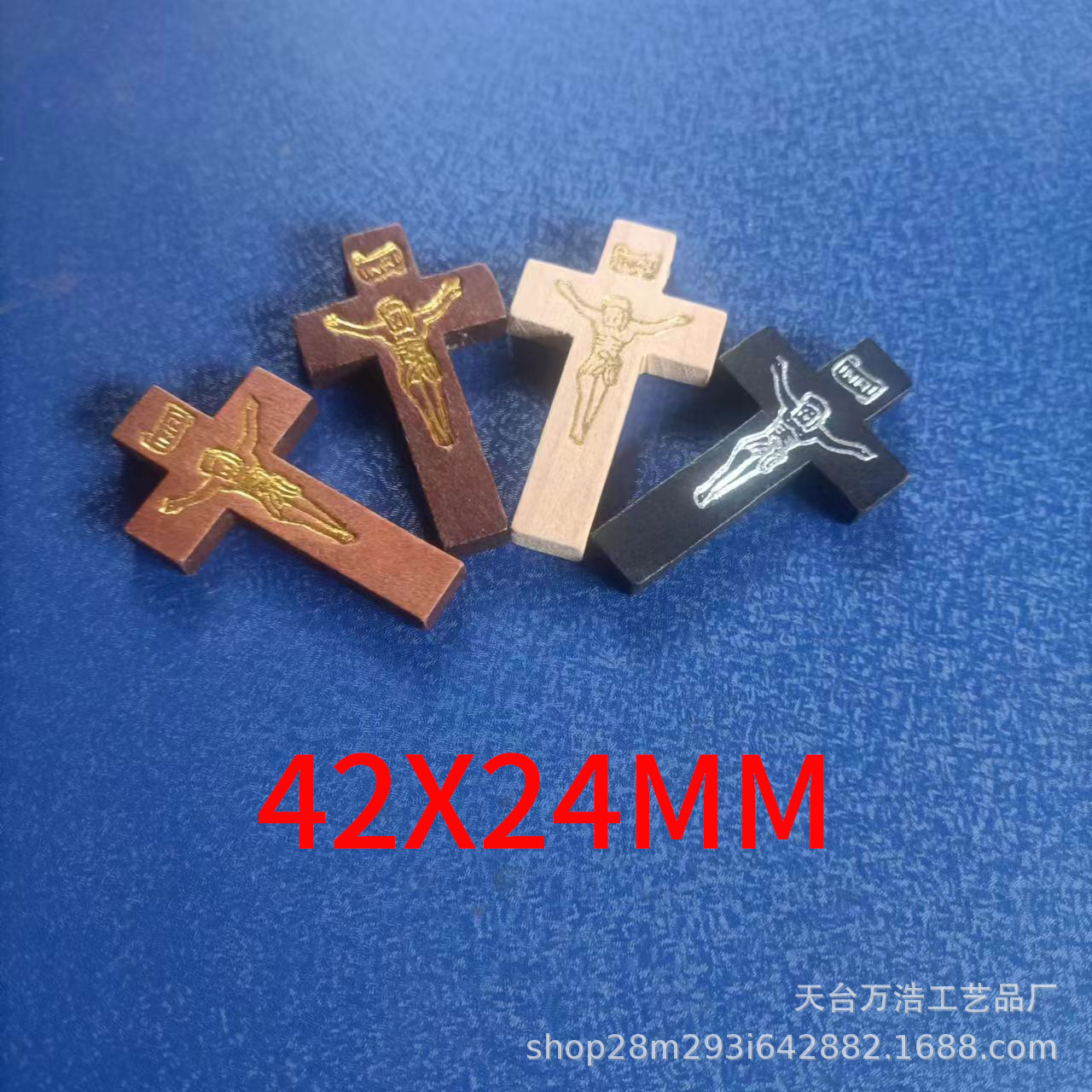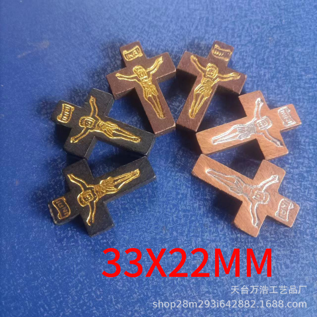 Artesanía de madera, Cruz de madera maciza estampada en caliente, madera dorada y plateada, accesorios de joyería DIY