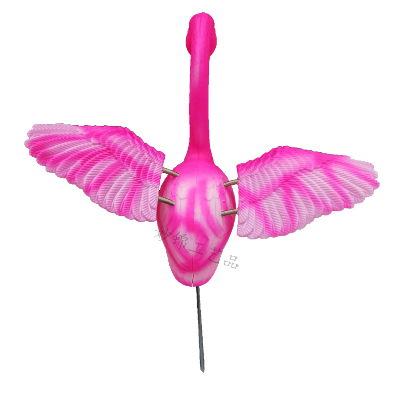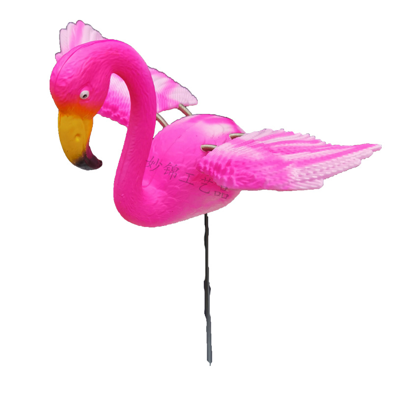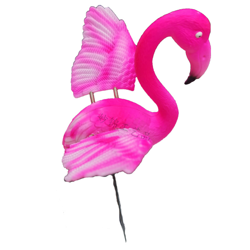 Decoración del patio del jardín creativo con alas en el suelo, flamencos y flores en el jardín de flores para decorar artesanías