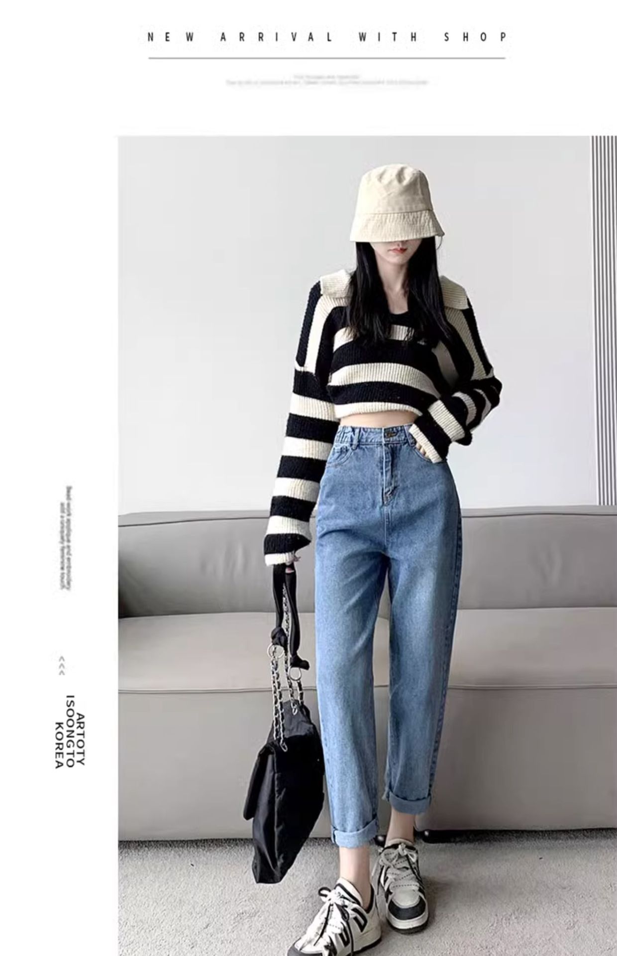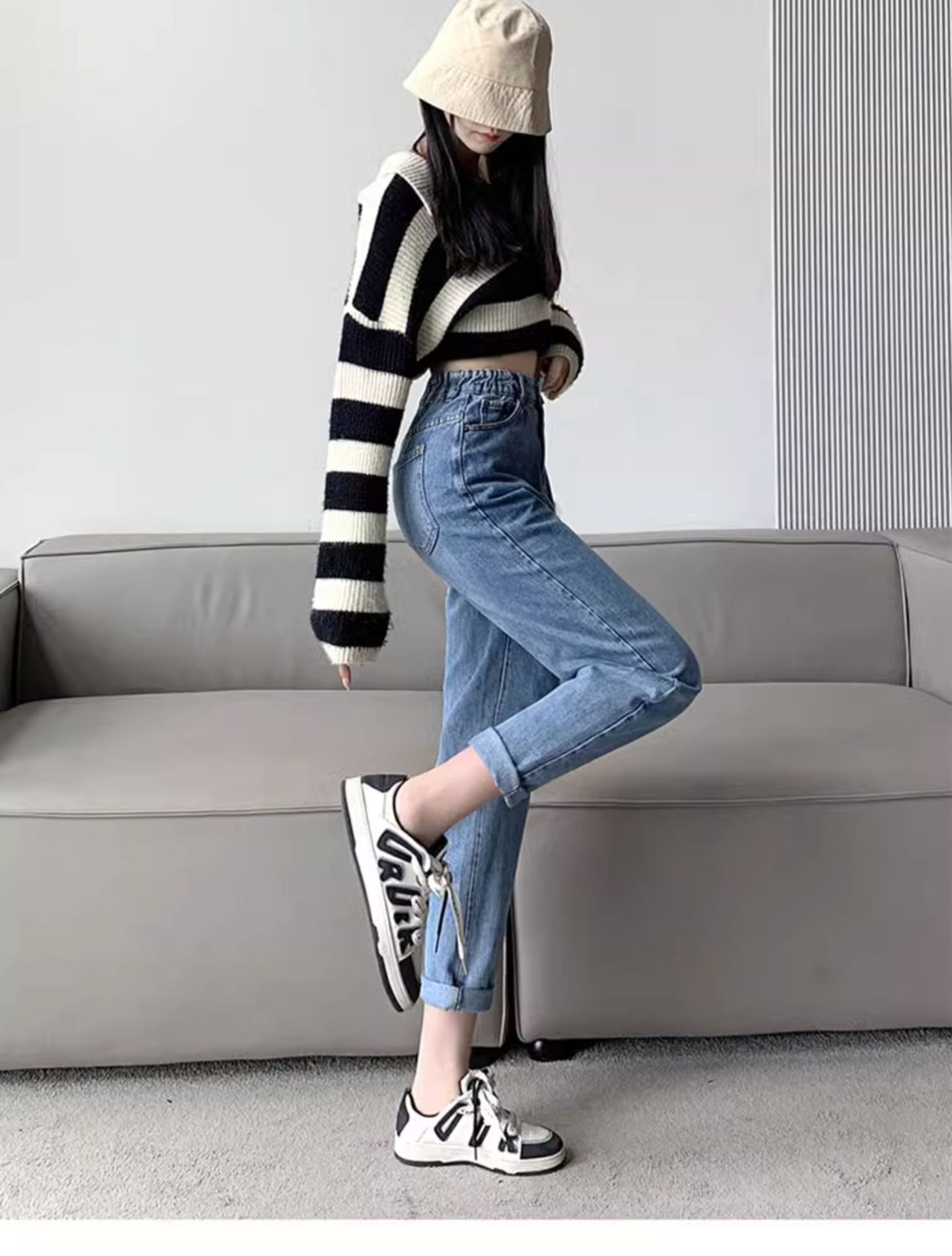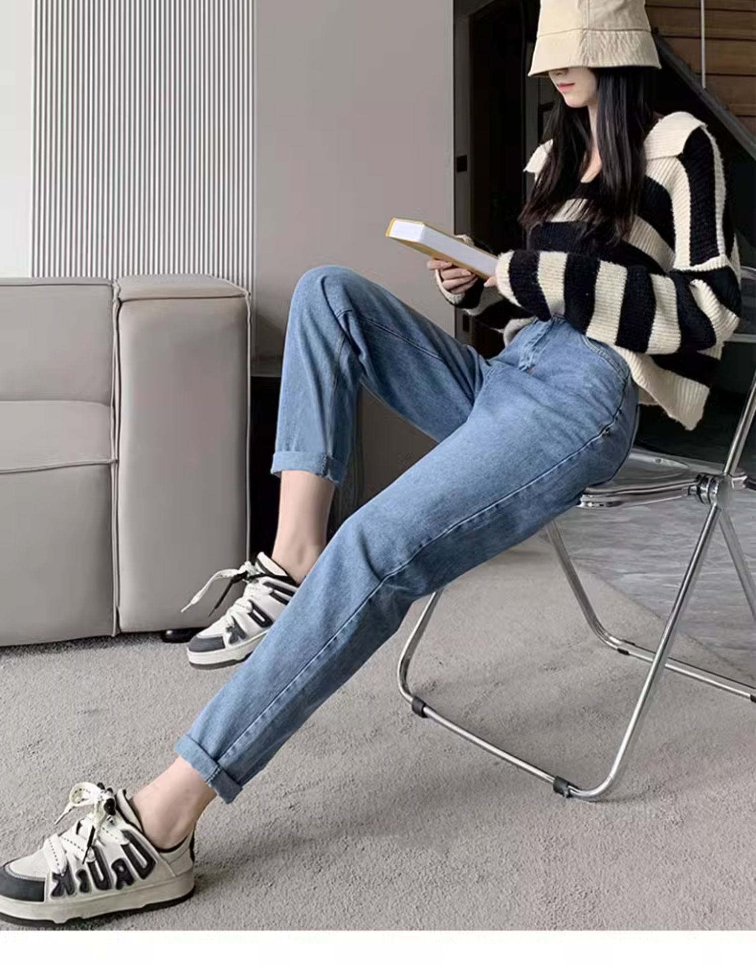 Pantalones vaqueros retro para mujeres en primavera y otoño 2022 nueva cintura alta, tubo recto suelto, rábano delgado, jeans Harun