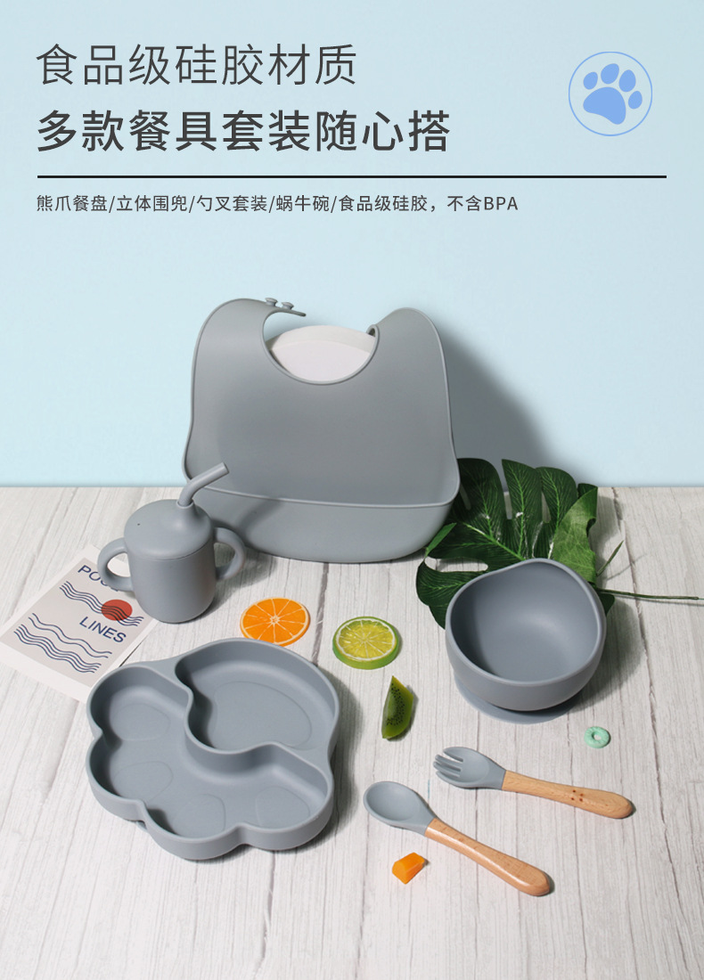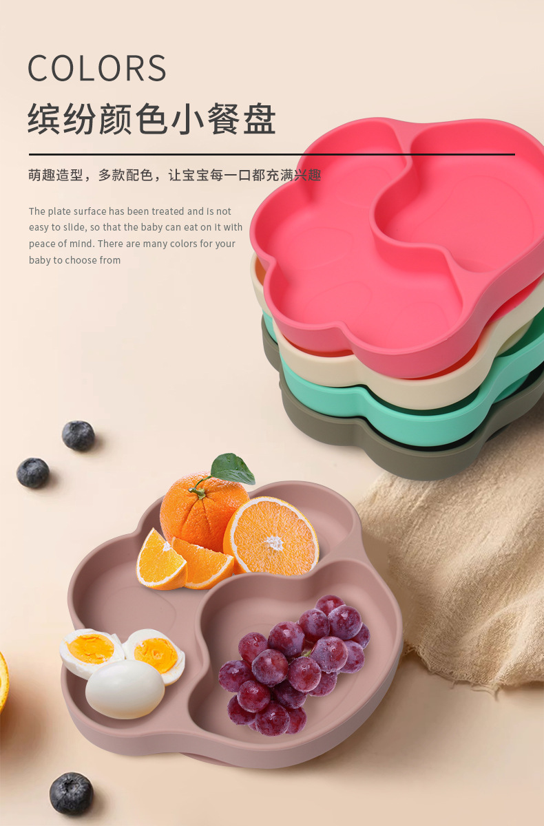 El nuevo producto explosivo, el plato de silicona para bebés, la ventosa grande, separa el plato de platino y alimenta el juego de vajilla infantil.