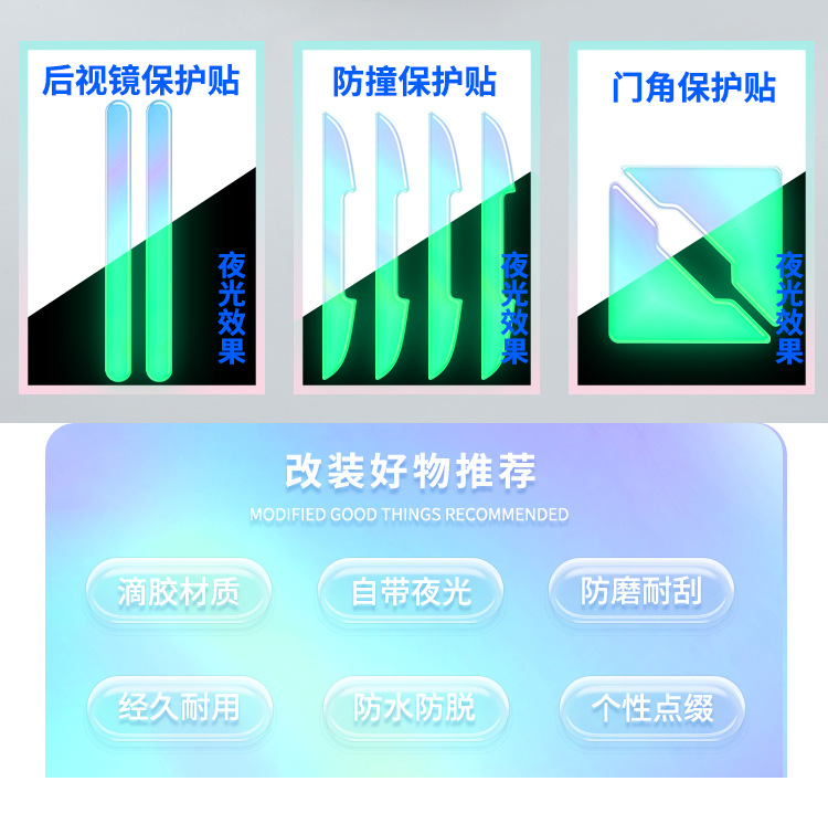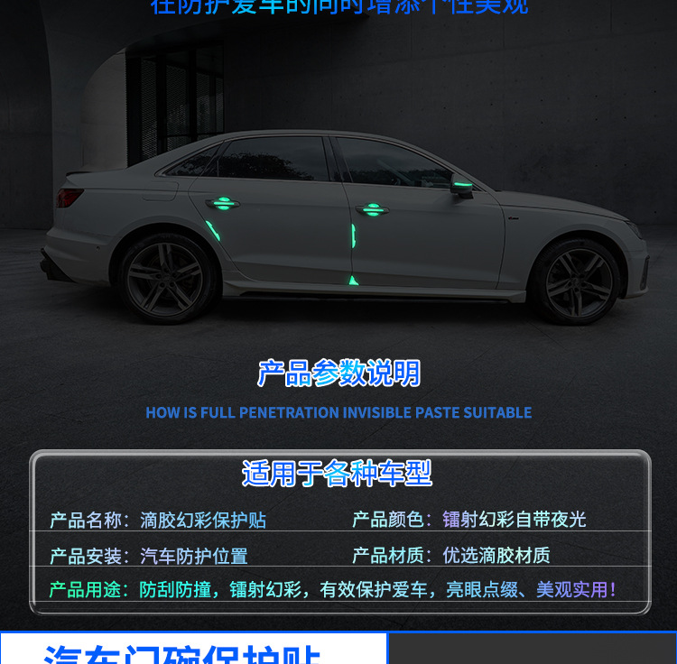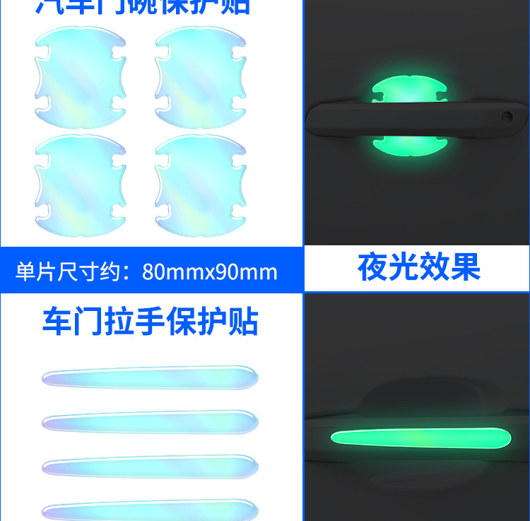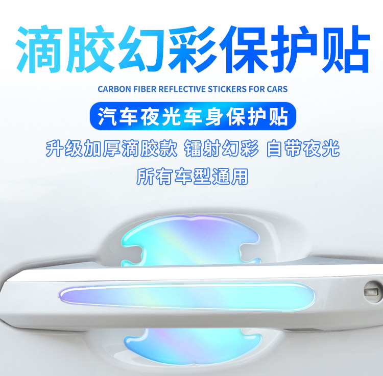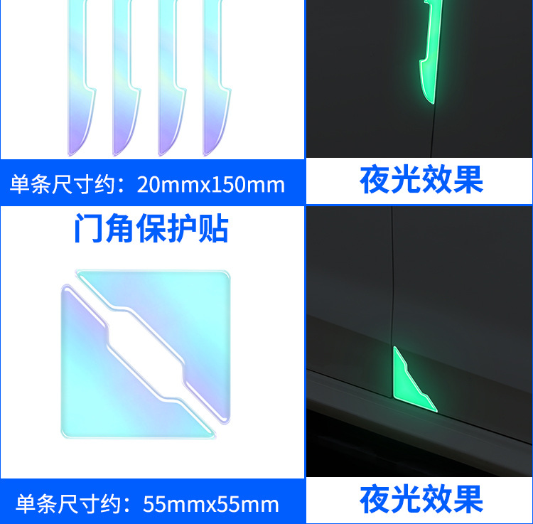 - Tira anticolisión de la puerta del automóvil, tazón de la puerta, pegatinas de protección de la mano, pegatinas de goteo de pegamento, pegatinas de protección láser contra arañazos nocturnos, pegatinas decorativas de arañazos de pintura