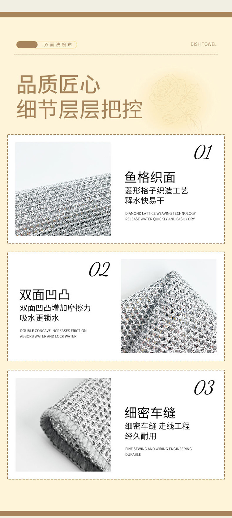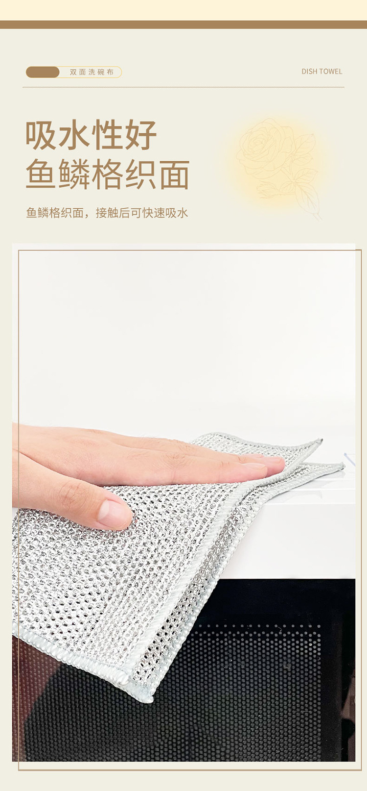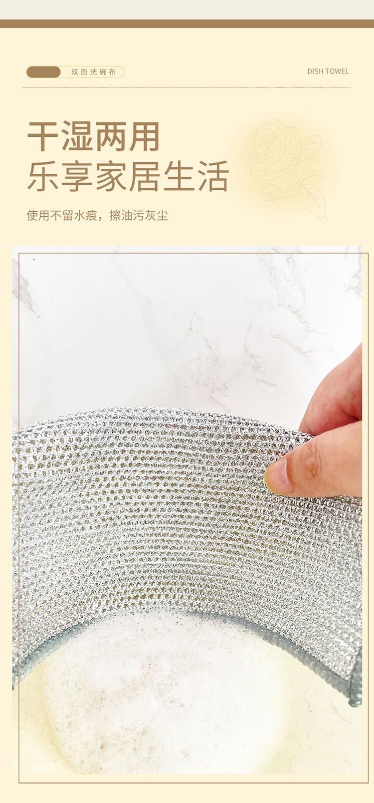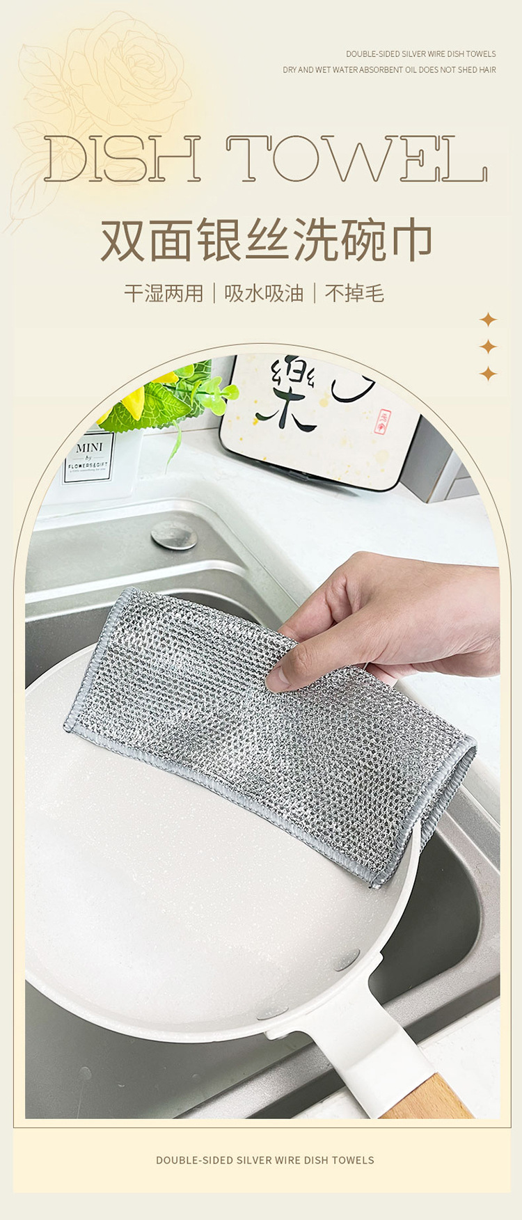 Toallitas de lavandería de alambre de plata de doble cara absorben agua sin aceite, toallitas de lavandería limpian las tareas domésticas y eliminan aceite, alambre de acero y tela de lavandería.