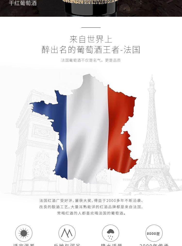La entidad de vino tinto importado de Francia se especializa en la transmisión en vivo al por mayor de la fuente del vino, cajas de regalo y envases de vino tinto seco.