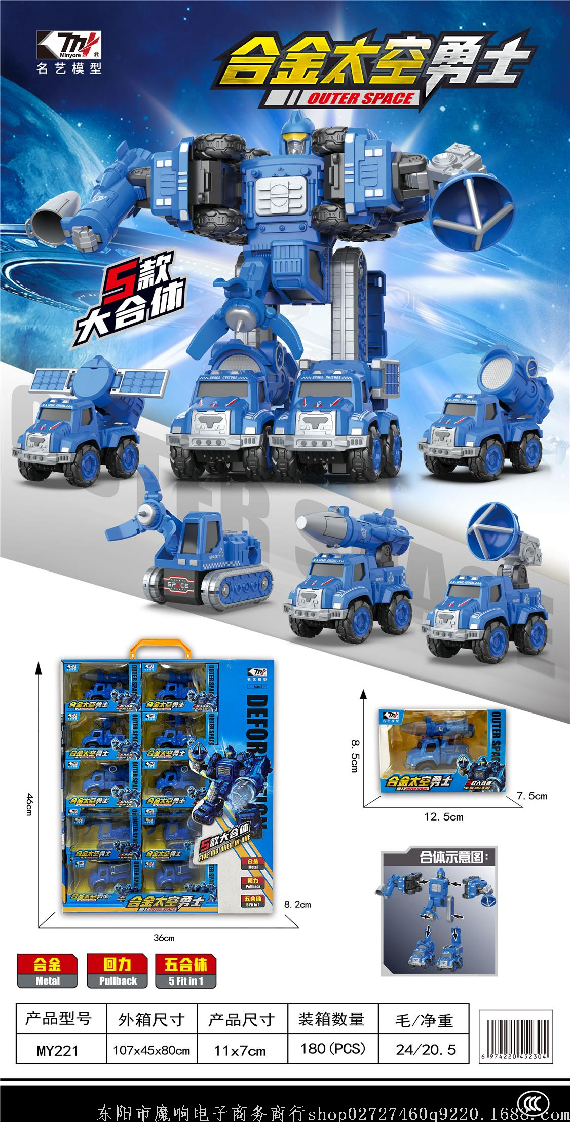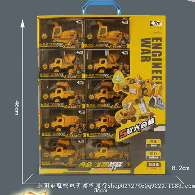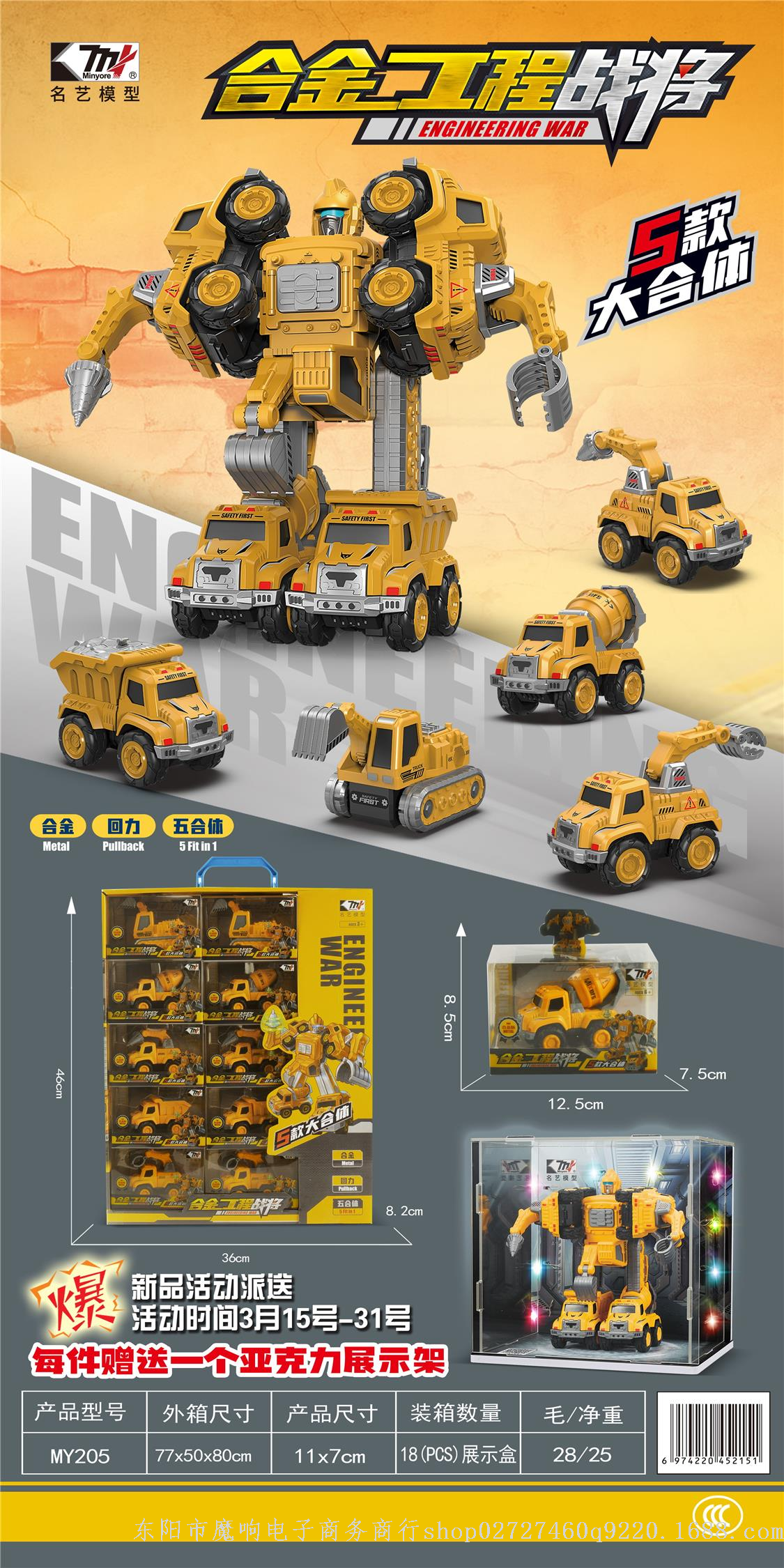 Nuevo retorno de aleación cinco en uno deformado camión de bomberos ingeniería robot ensamblaje de juguetes de puzzle regalo
