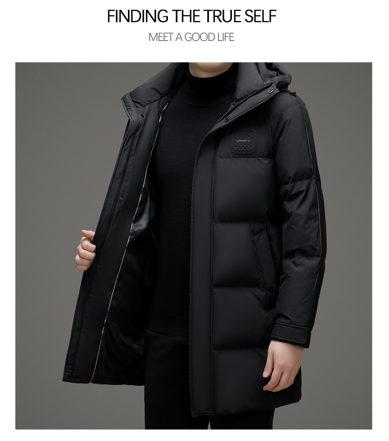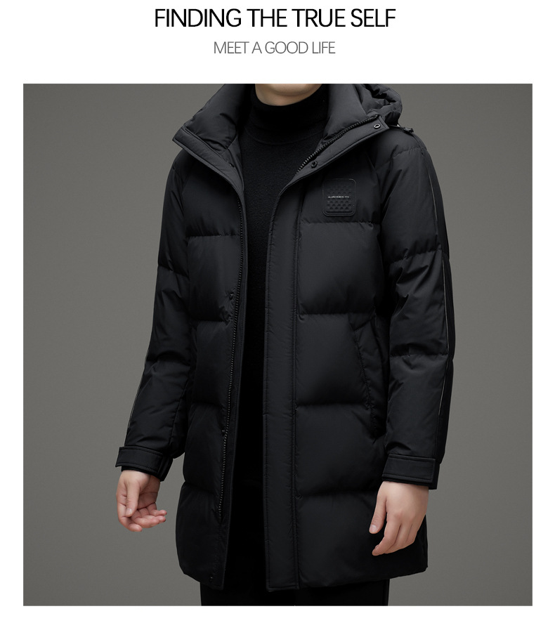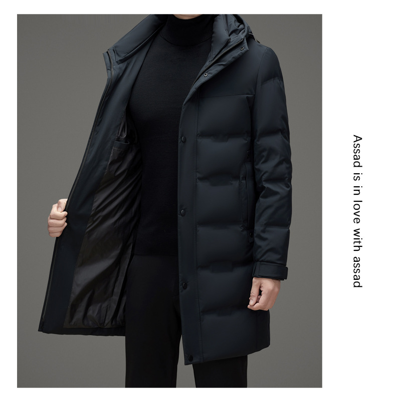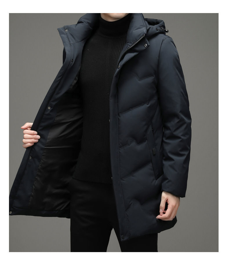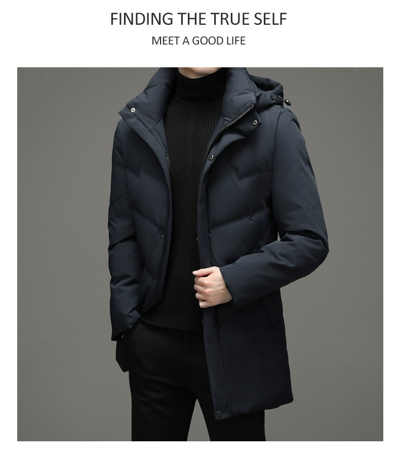 2023 engrosamiento de la nueva chaqueta de plumón para hombres chaqueta de plumón de moda de 90 plumones para hombres chaqueta de plumón de moda de plumón blanco de media y larga duración