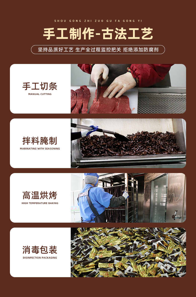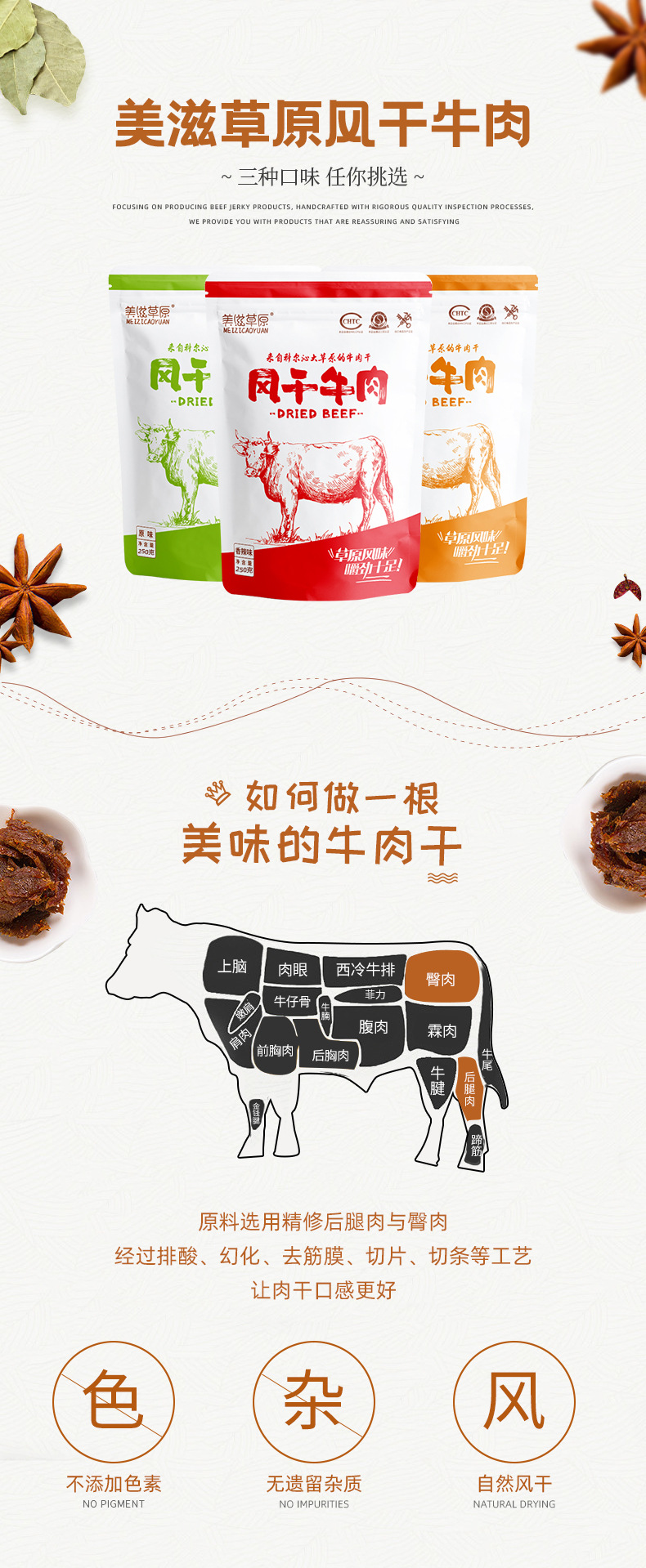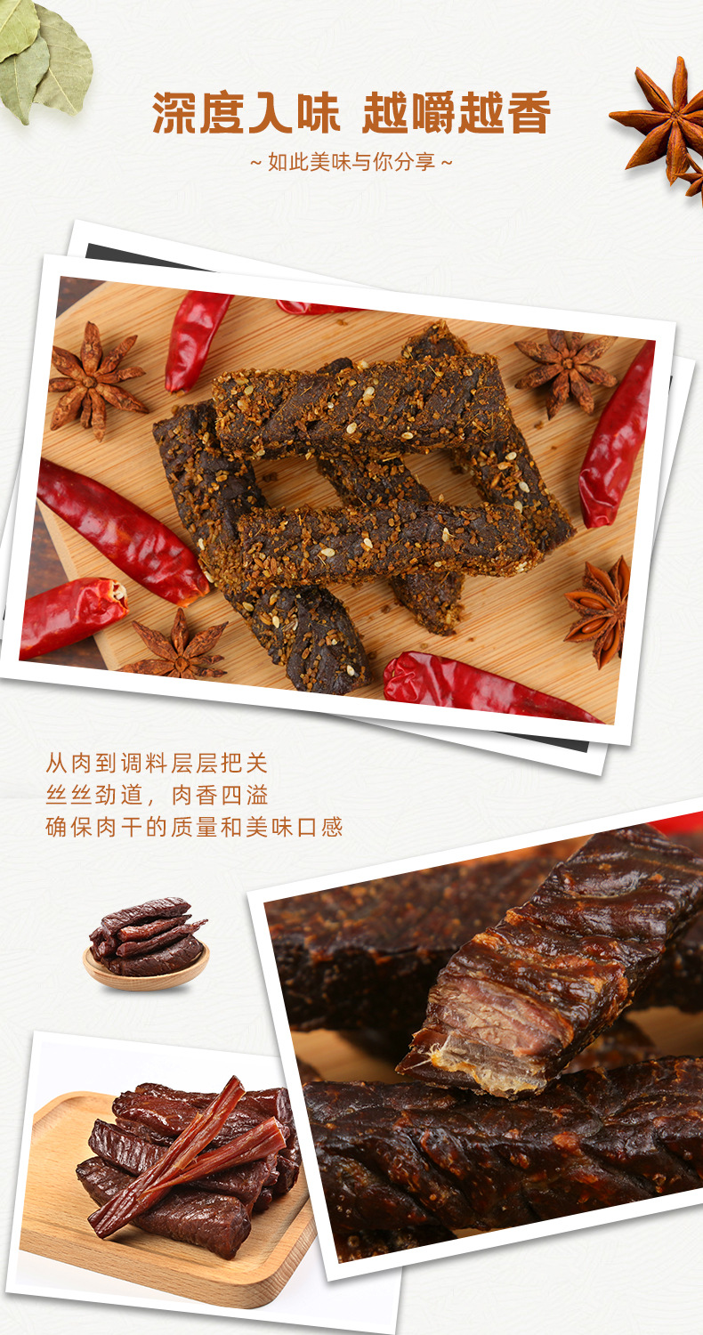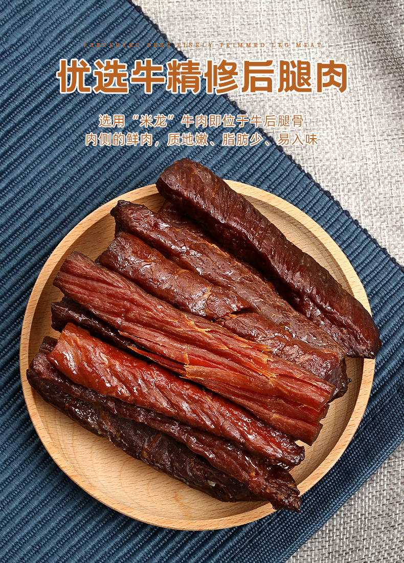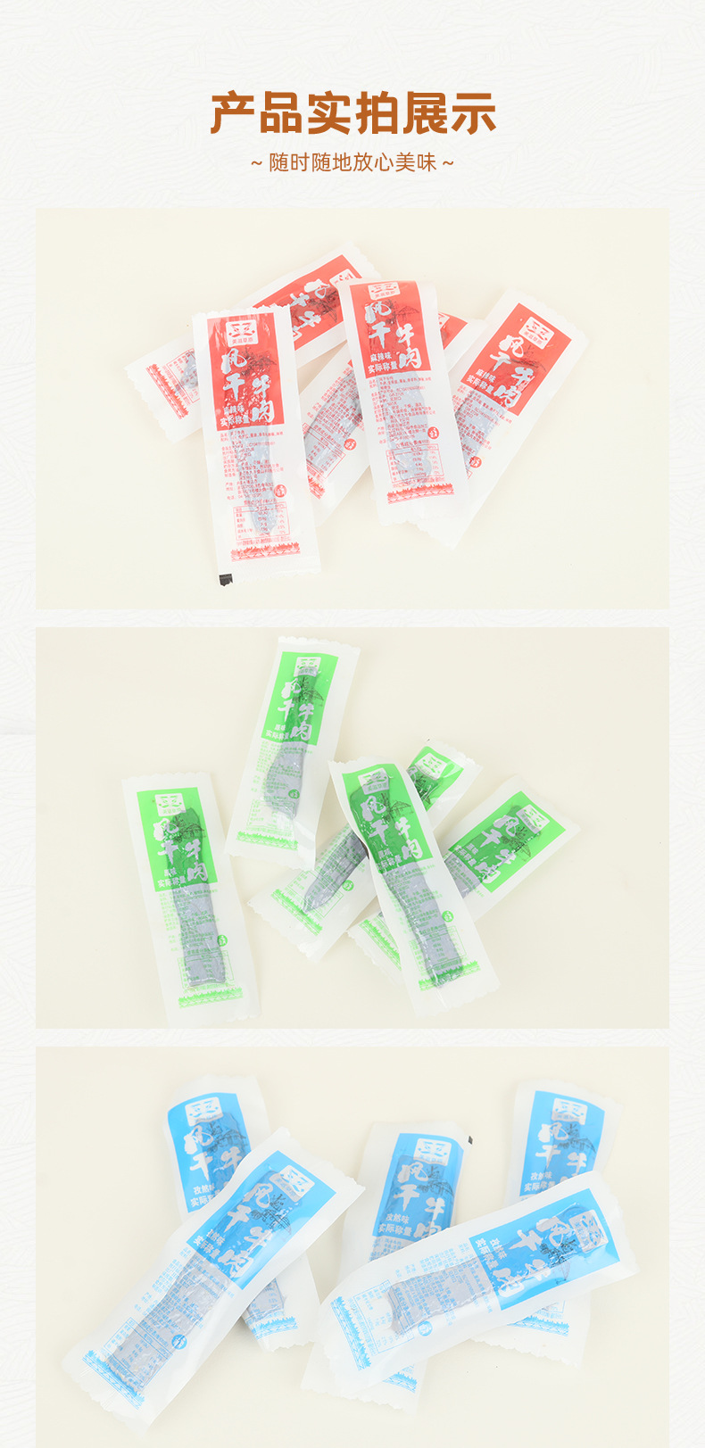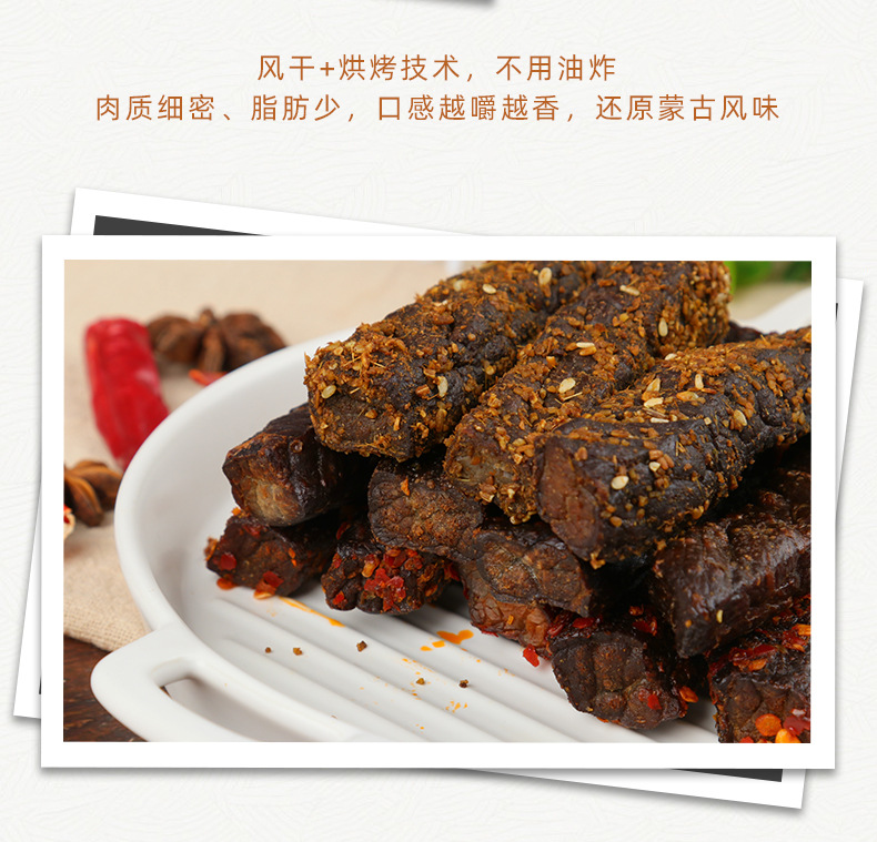 Meizi pastizales carne seca al aire, especialidades de Mongolia interior, niños rasgan carne seca bocadillos secos, carne seca cocinada al vacío