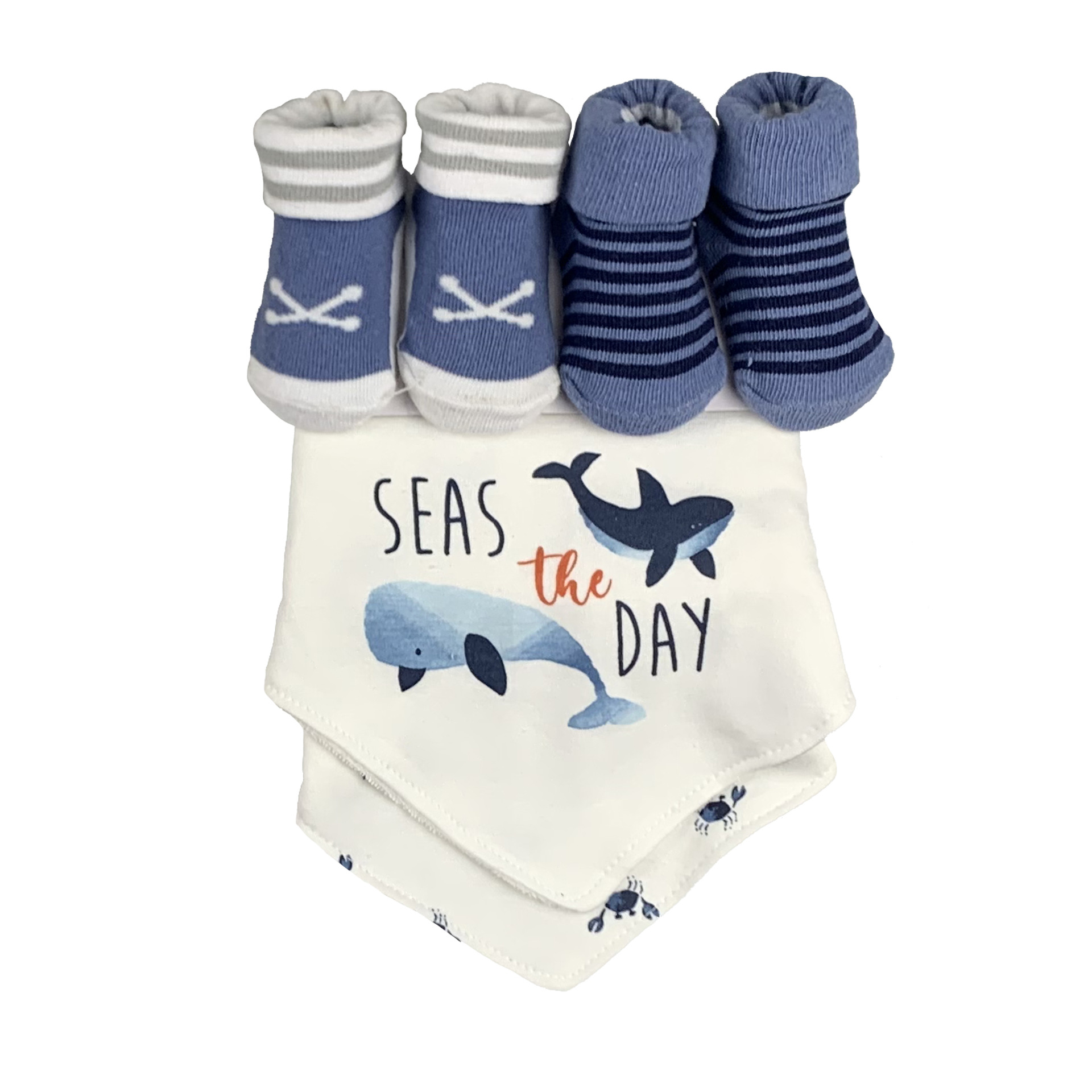 Traje combinado de calcetines de toallas triangulares para bebés toallas de saliva impresas cómodas y encantadoras