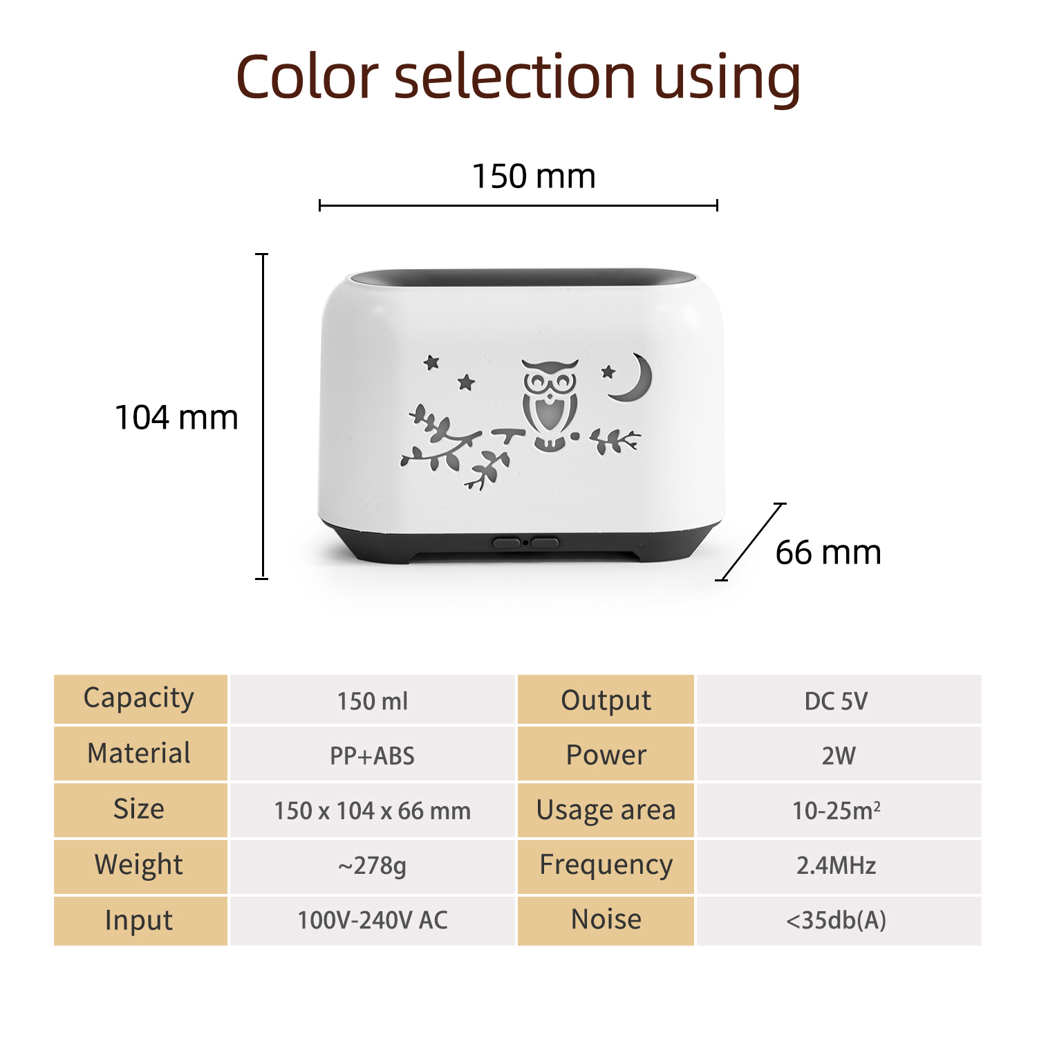 Humidificador de aire de escritorio USB búho Humidificador doméstico inteligente