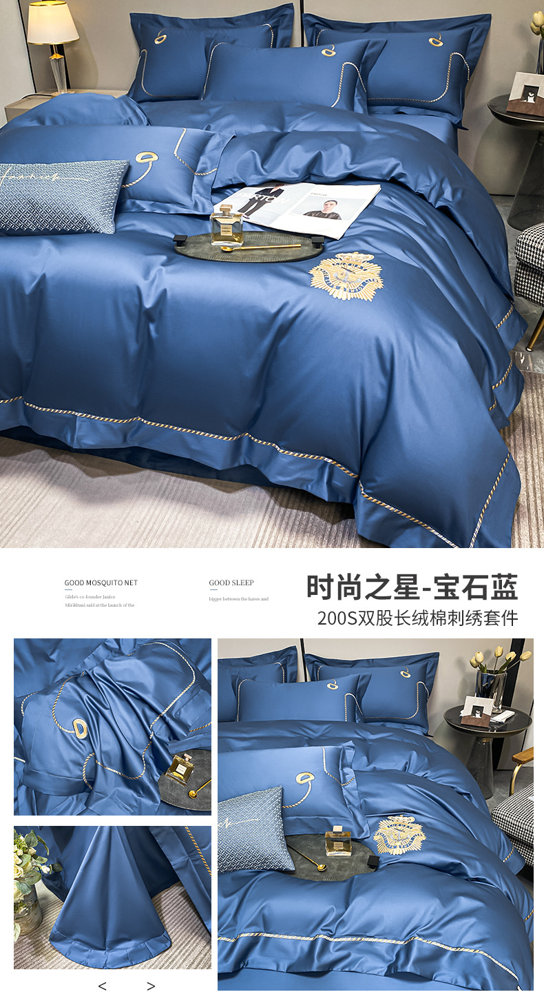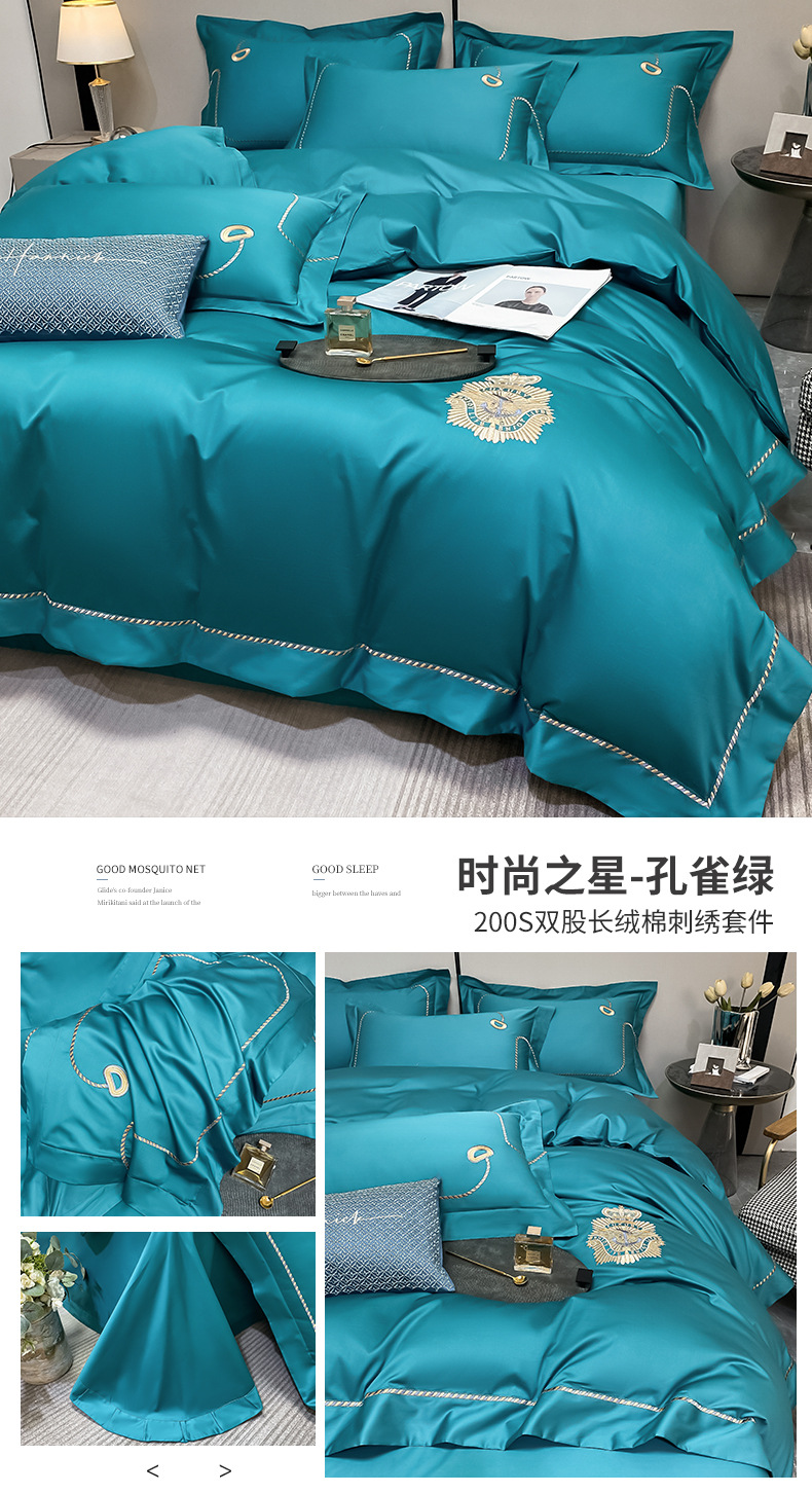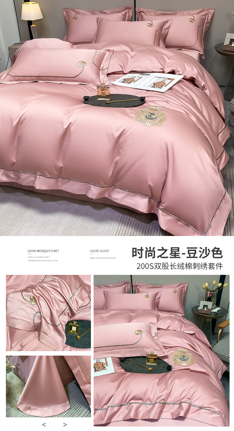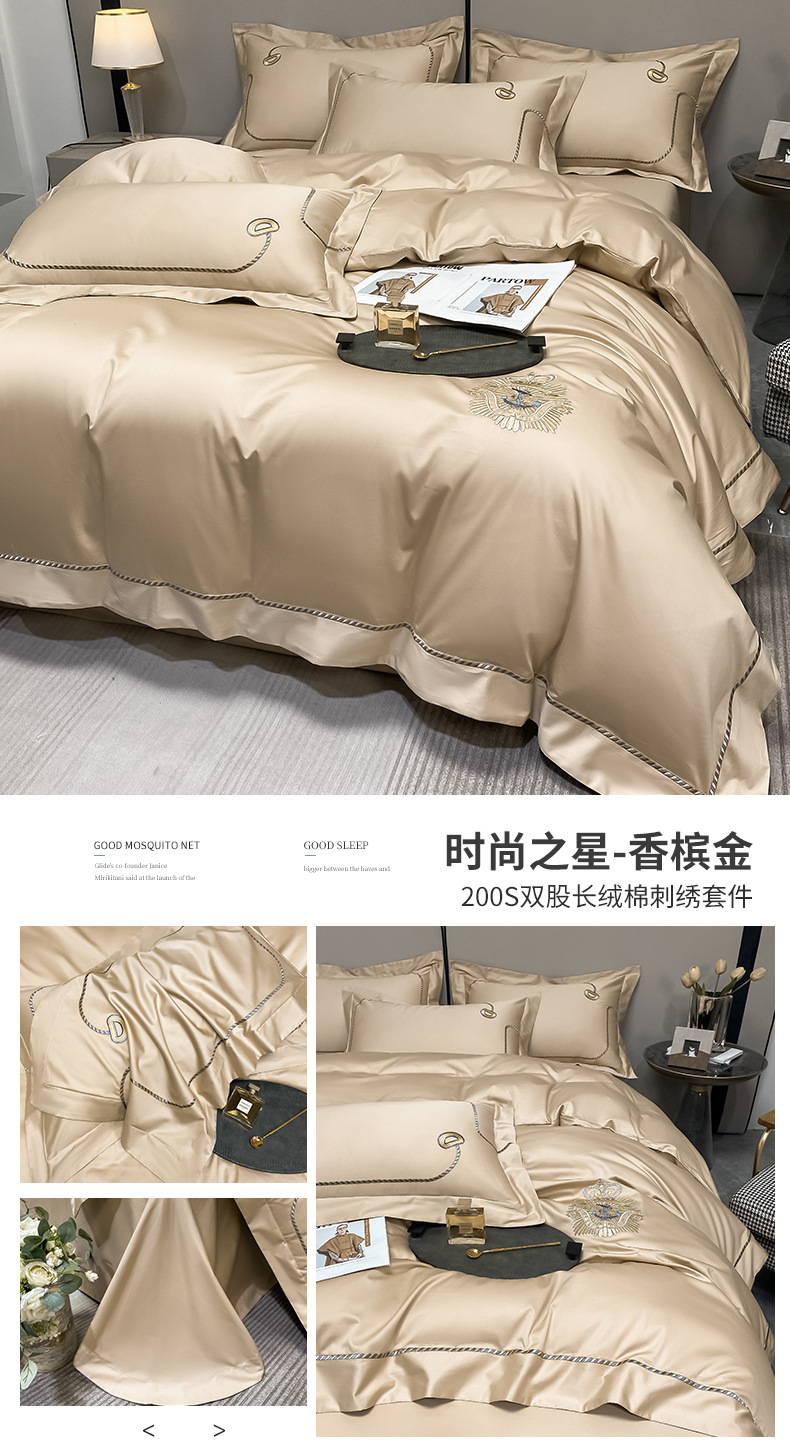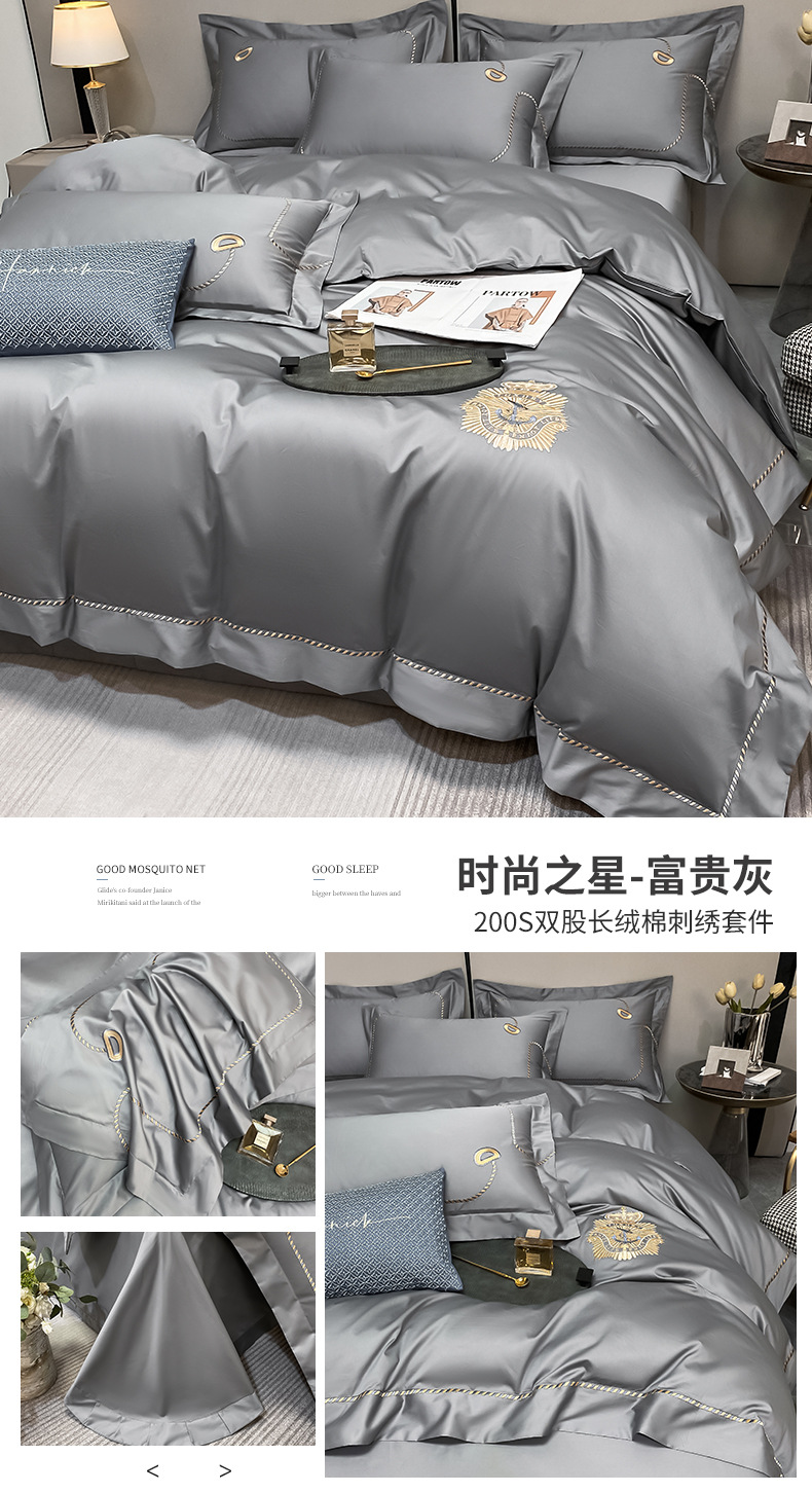 Lujo ligero 100 algodón de lana larga juego de cuatro piezas sábanas de algodón puro juego de edredones bordados ropa de cama nórdica de cuatro estaciones