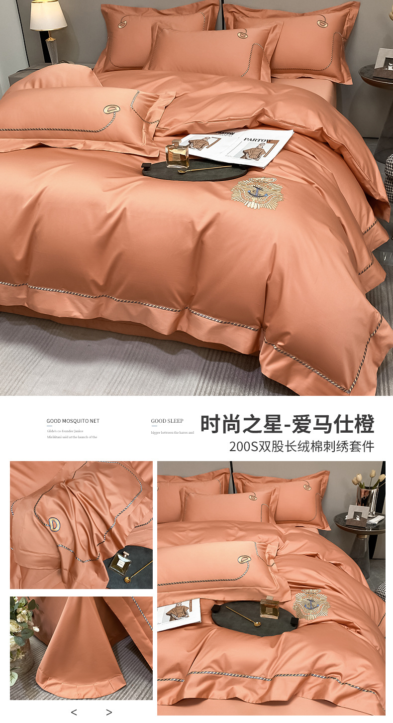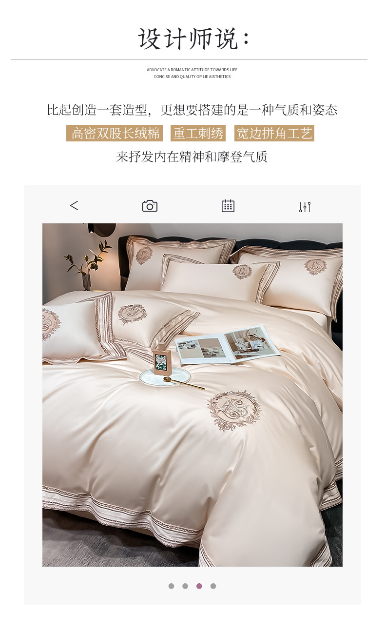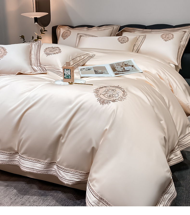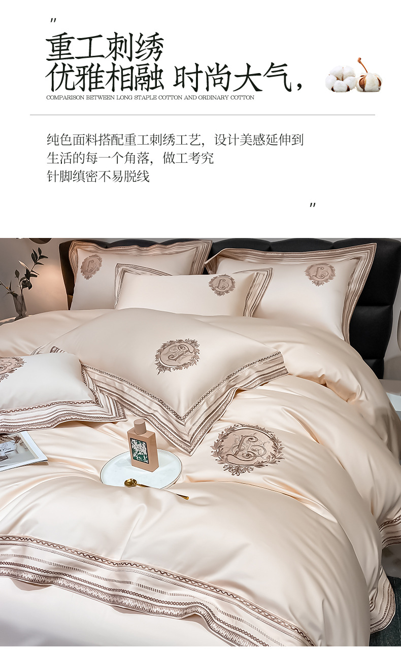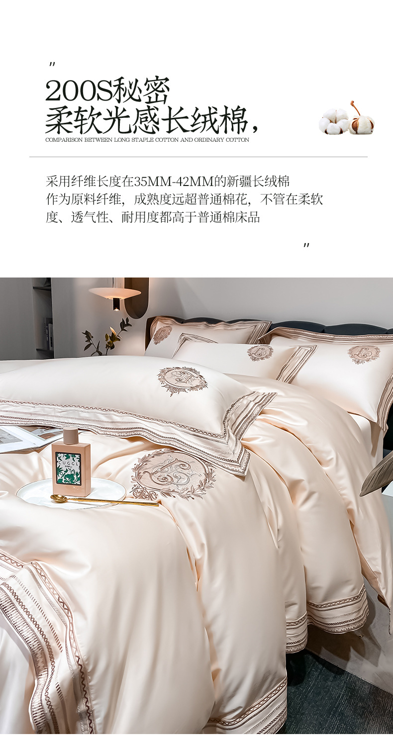 Lujo ligero 100 algodón de lana larga juego de cuatro piezas sábanas de algodón puro juego de edredones bordados ropa de cama nórdica de cuatro estaciones