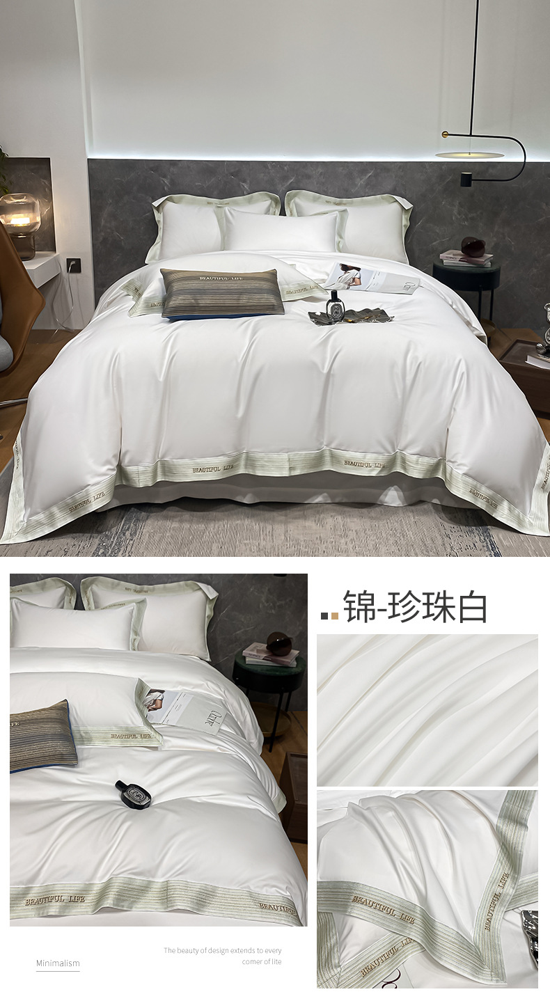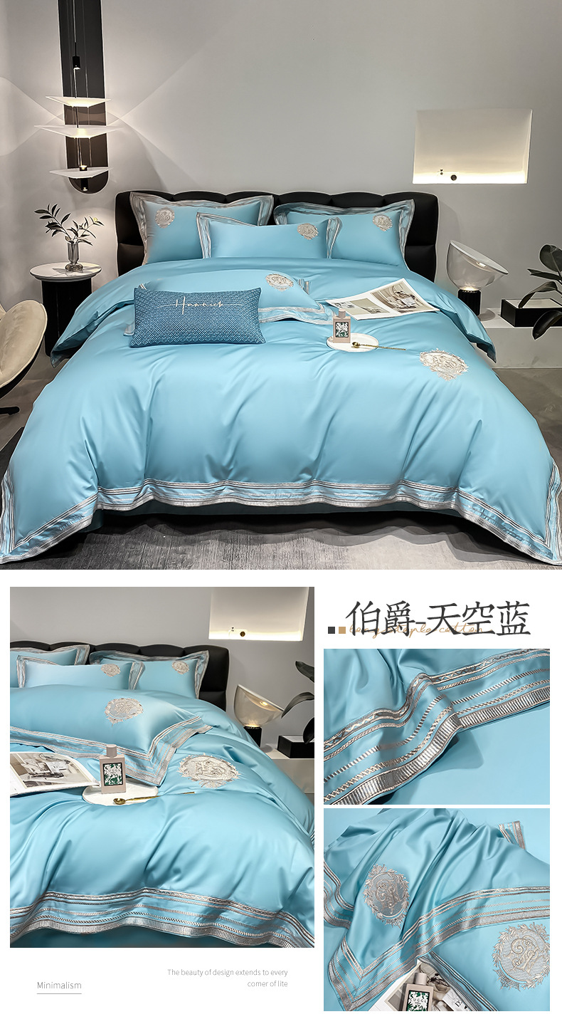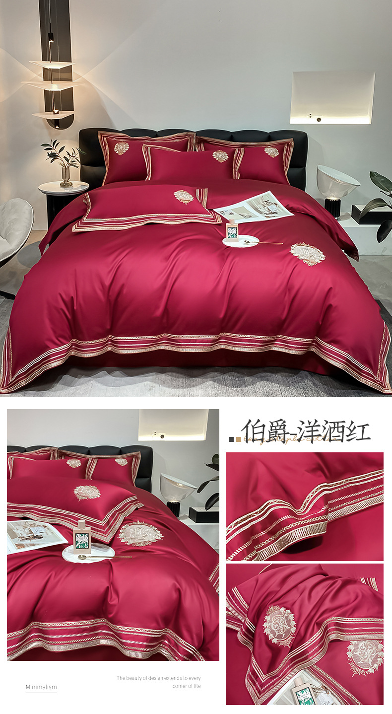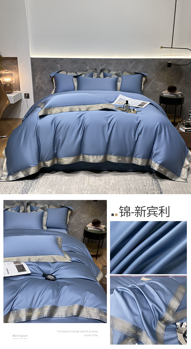 Lujo ligero 100 algodón de lana larga juego de cuatro piezas sábanas de algodón puro juego de edredones bordados ropa de cama nórdica de cuatro estaciones