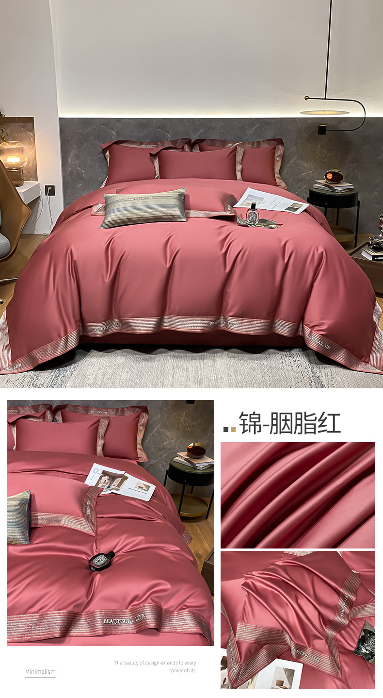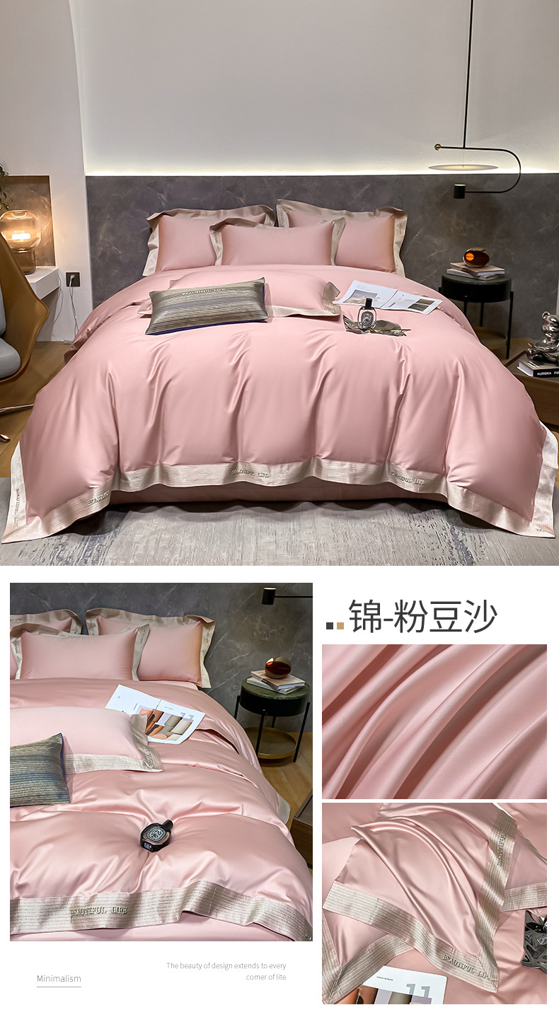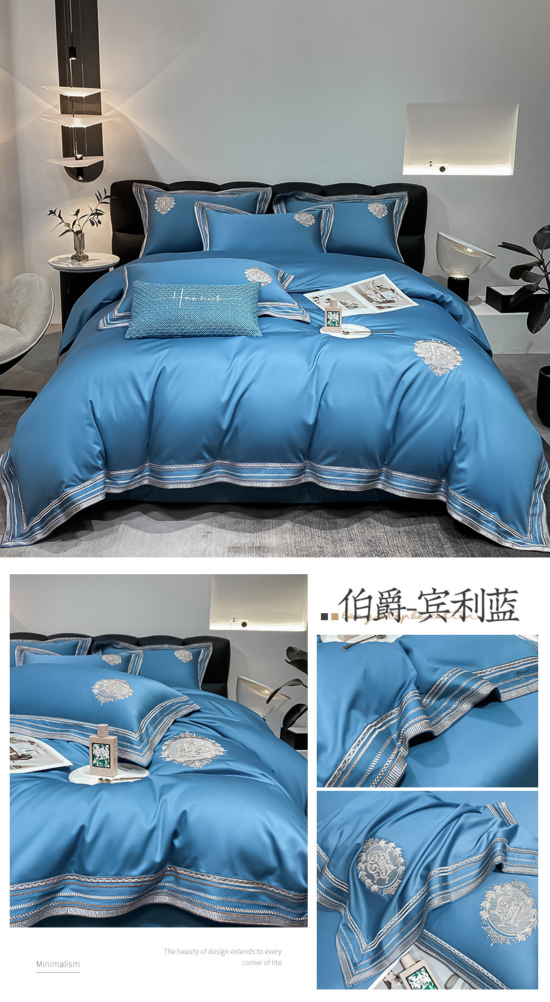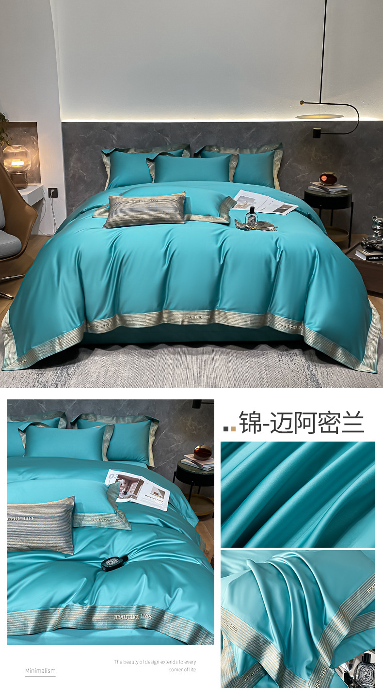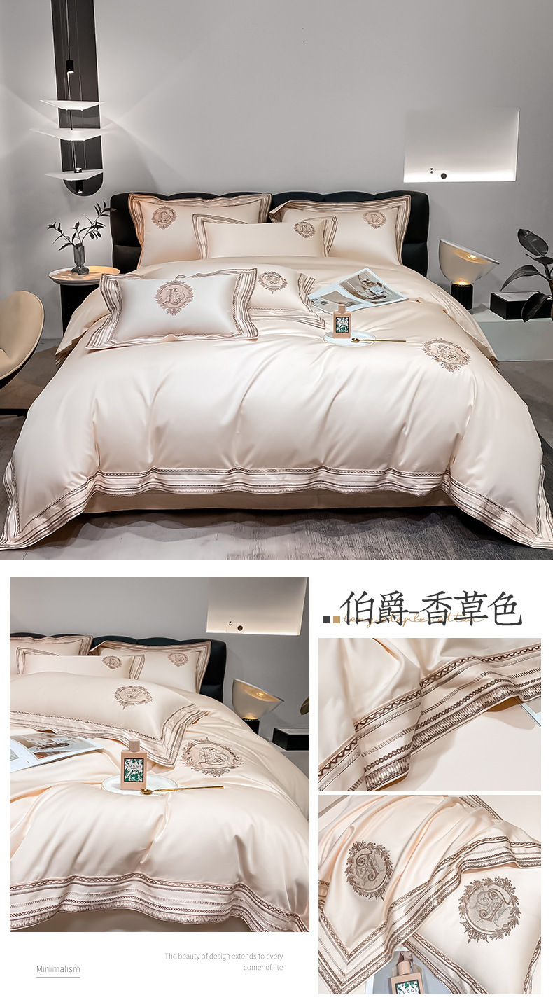 Lujo ligero 100 algodón de lana larga juego de cuatro piezas sábanas de algodón puro juego de edredones bordados ropa de cama nórdica de cuatro estaciones