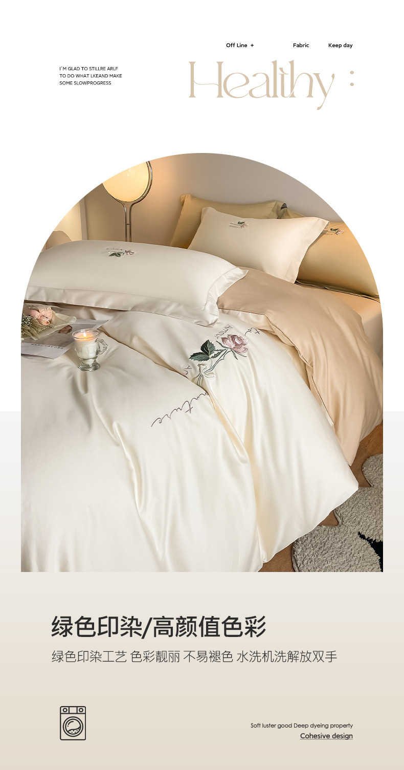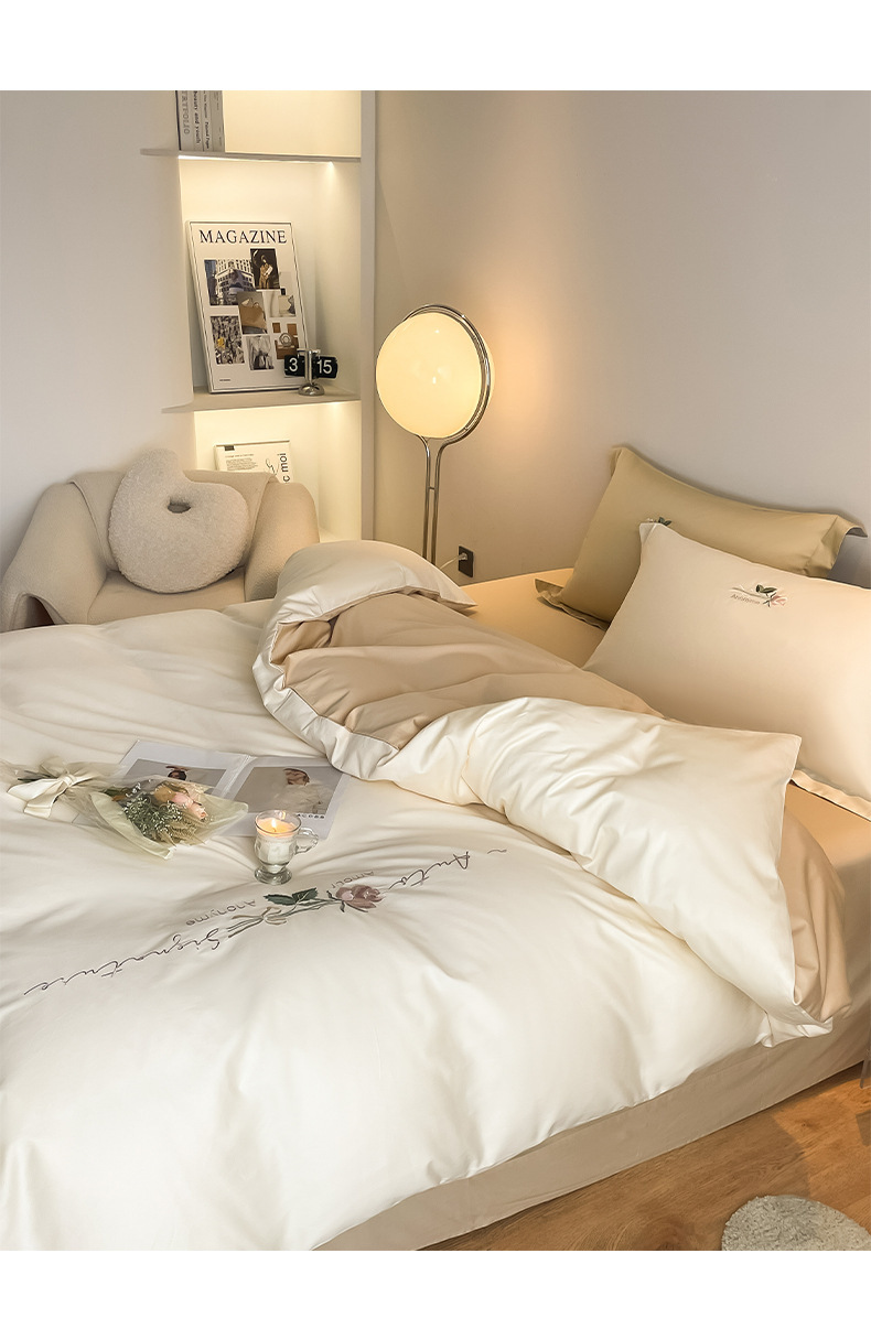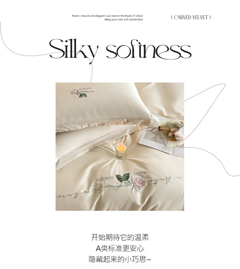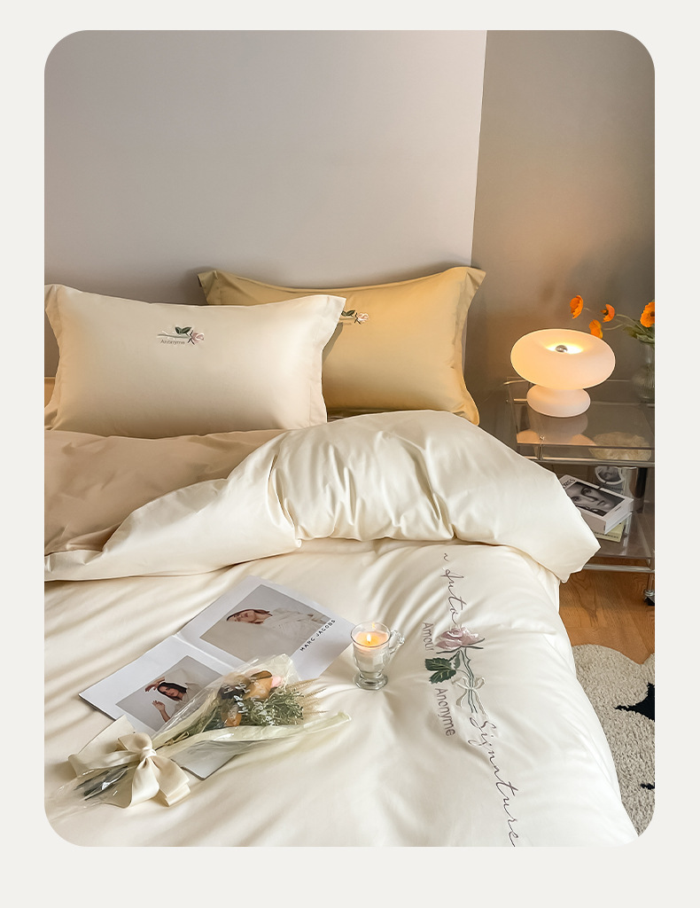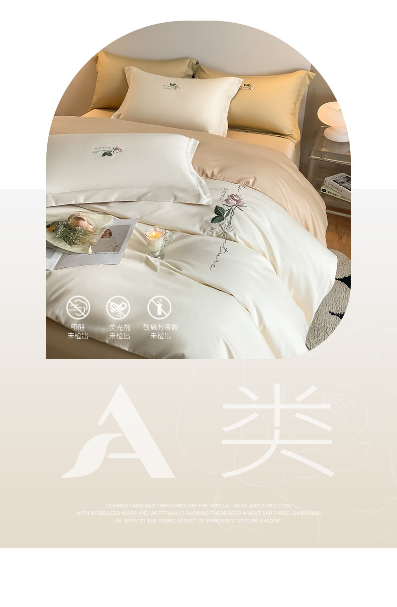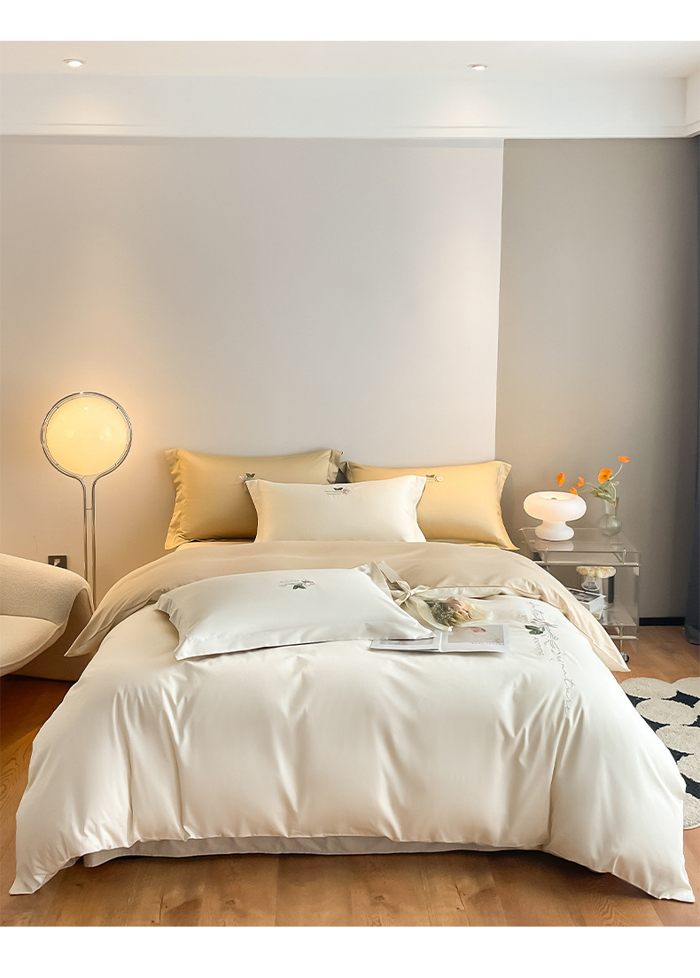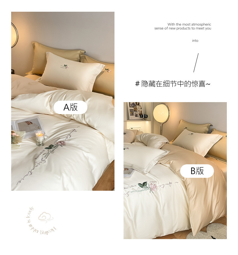 Categoría A 100s Xinjiang algodón de lana larga conjunto de cuatro piezas de bordado de lujo ligero estilo simple ropa de cama de algodón maternoinfantil