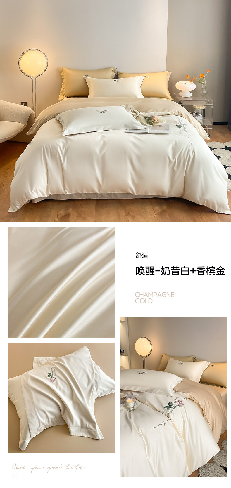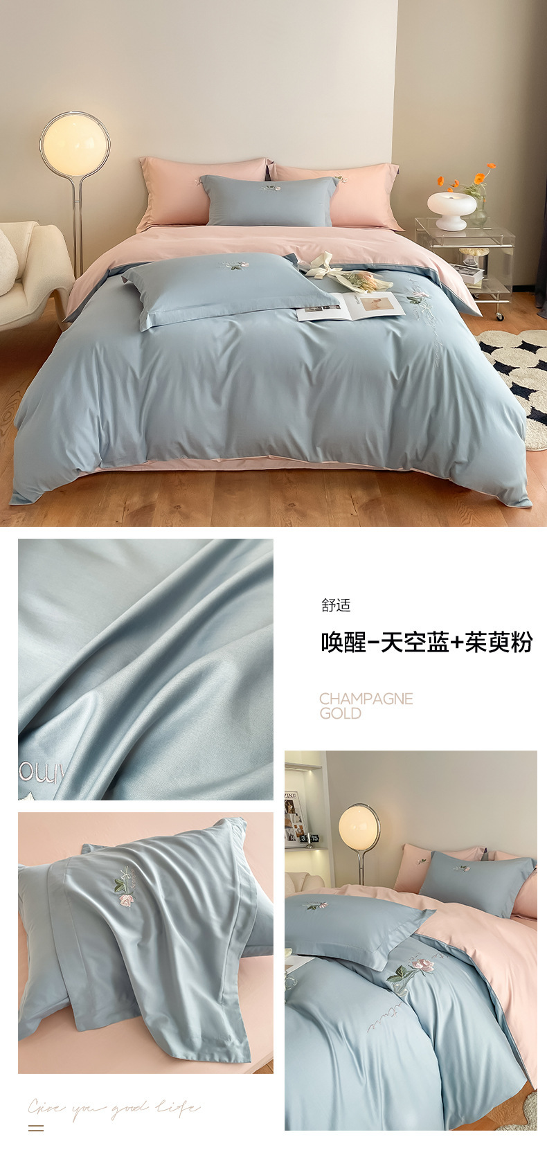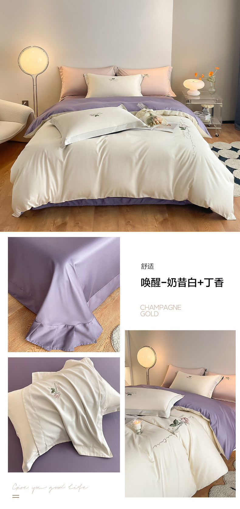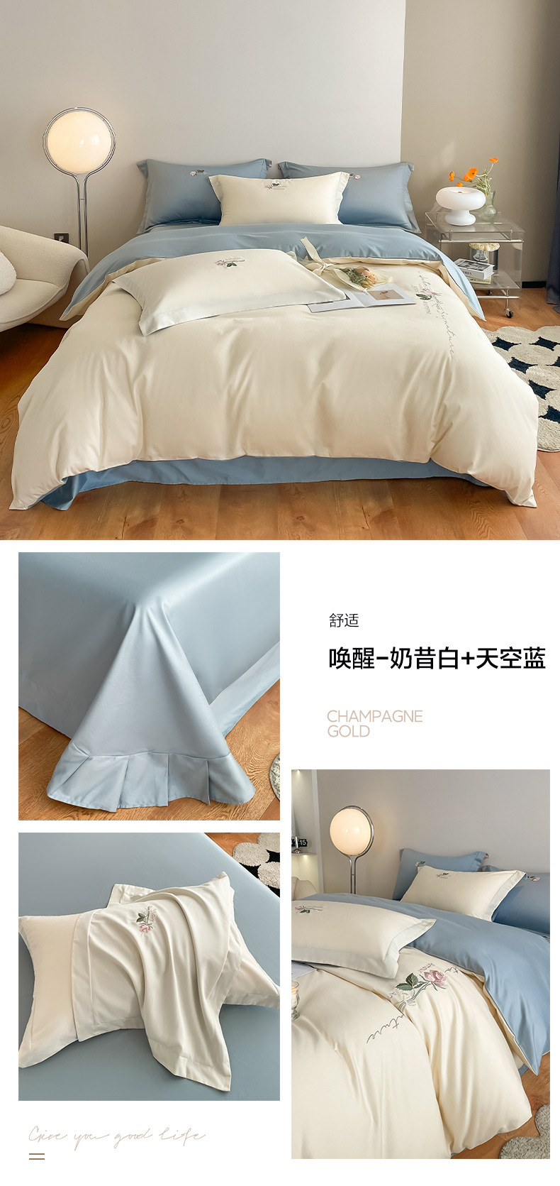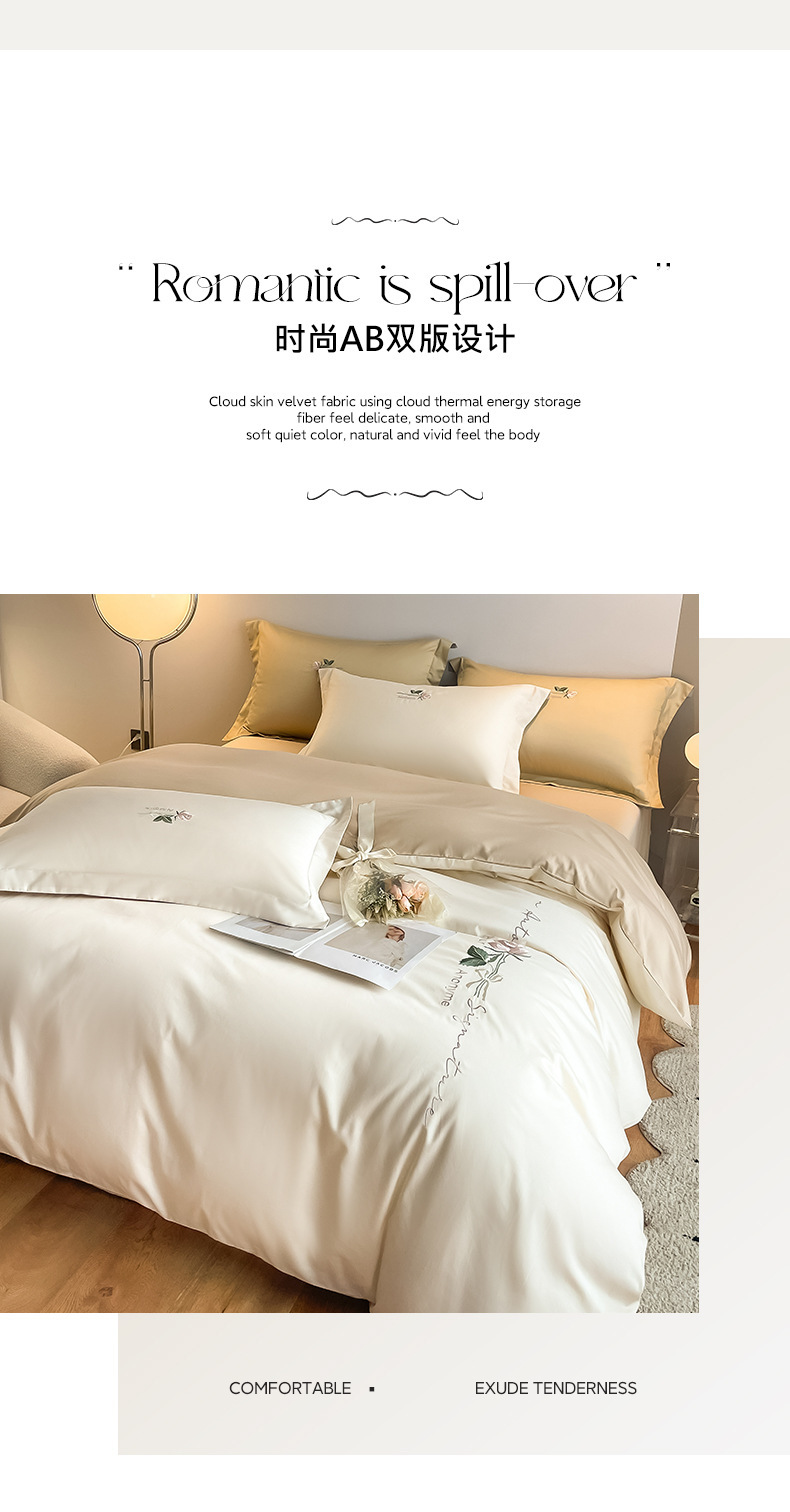 Categoría A 100s Xinjiang algodón de lana larga conjunto de cuatro piezas de bordado de lujo ligero estilo simple ropa de cama de algodón maternoinfantil