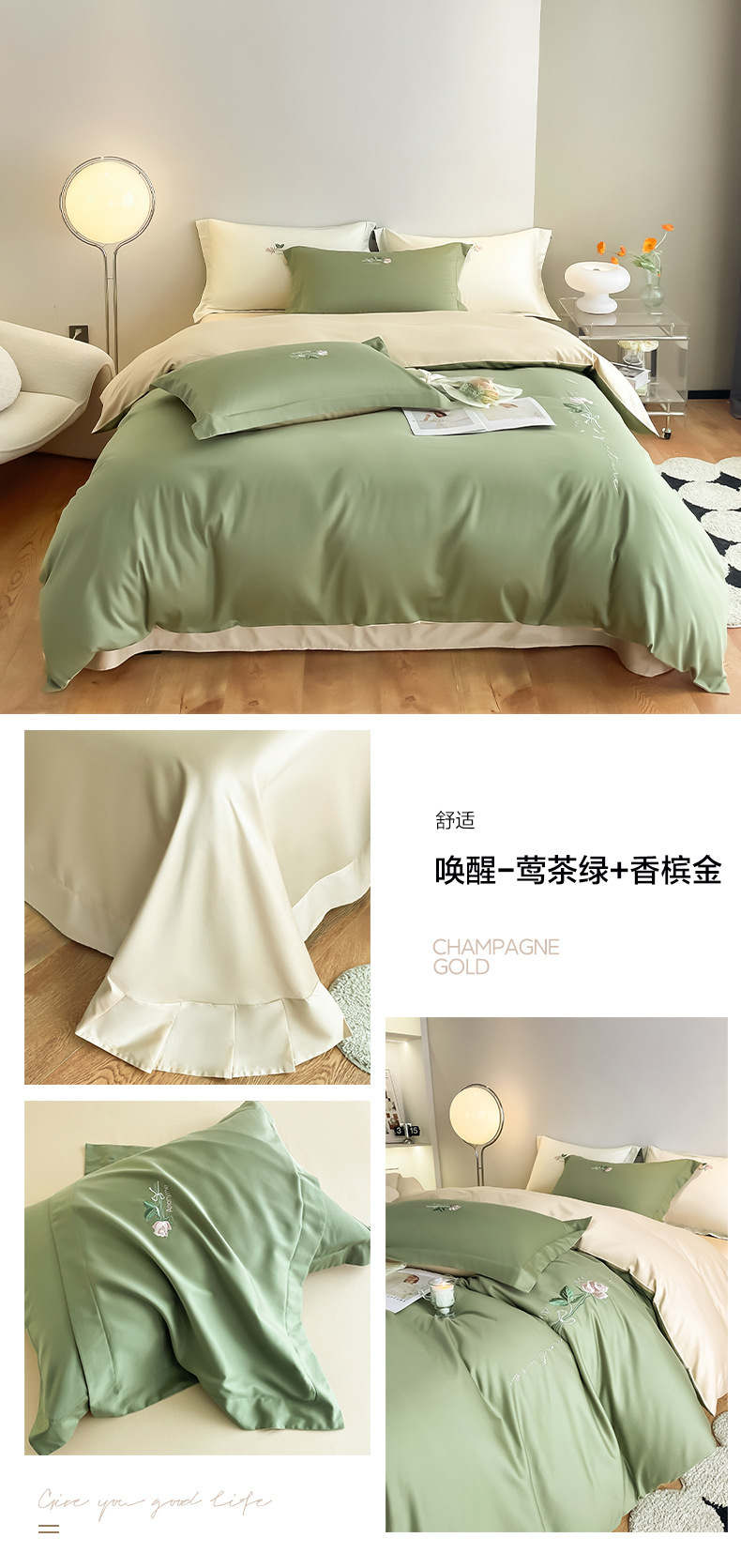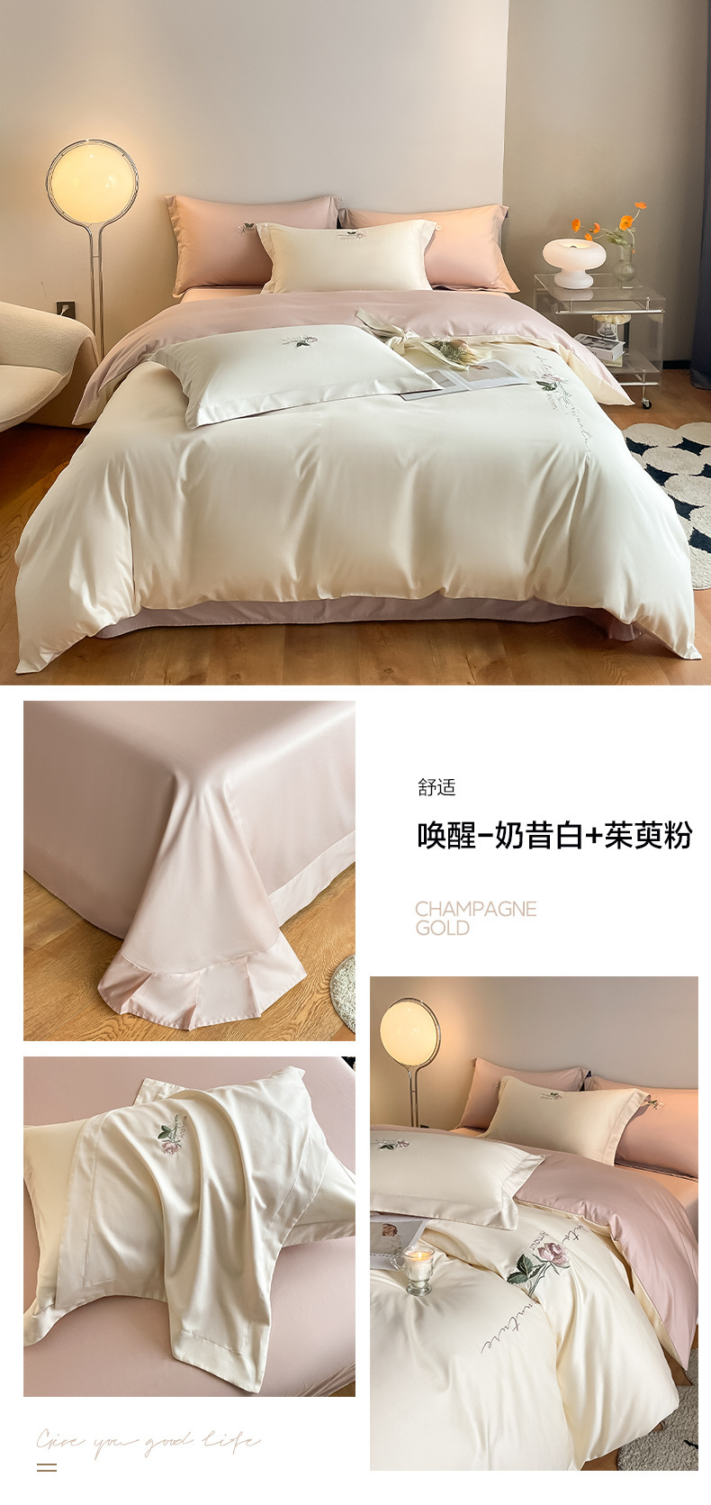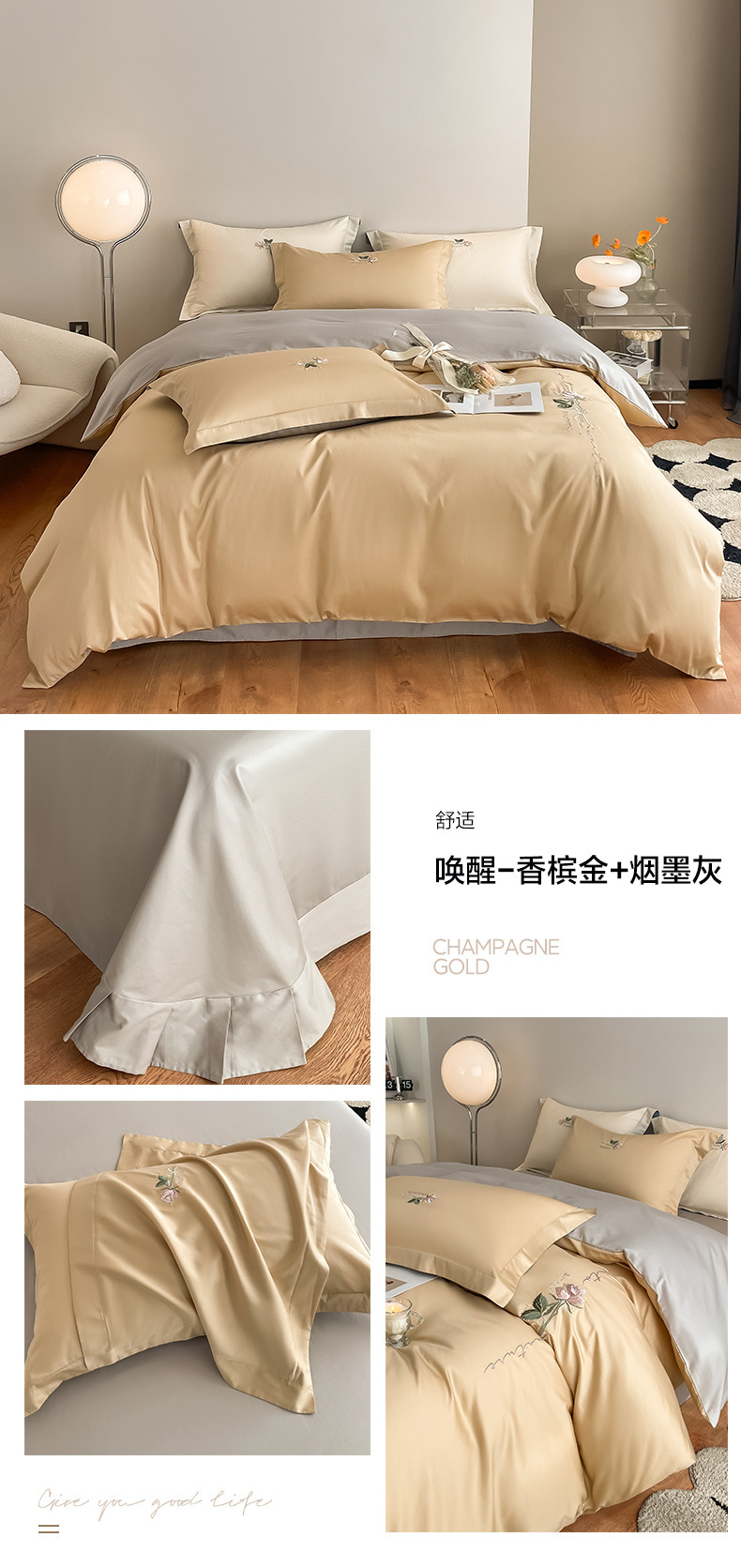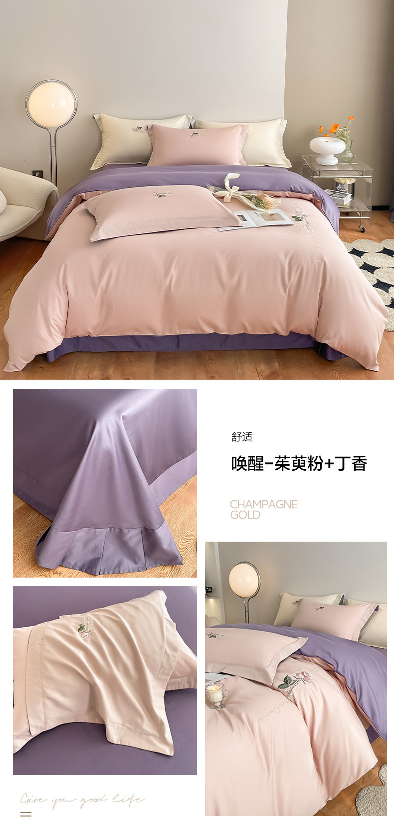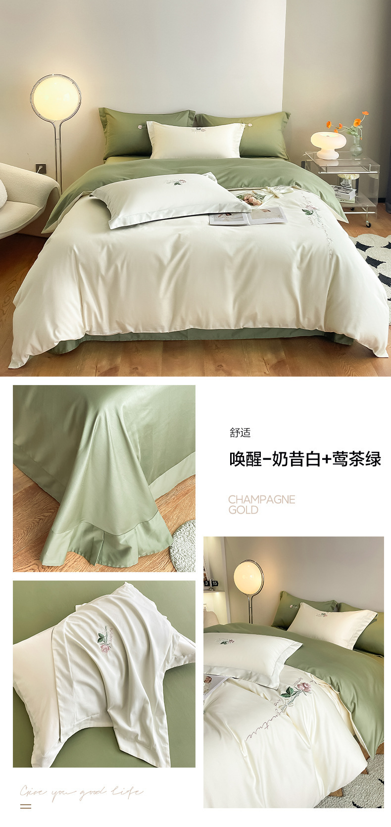 Categoría A 100s Xinjiang algodón de lana larga conjunto de cuatro piezas de bordado de lujo ligero estilo simple ropa de cama de algodón maternoinfantil