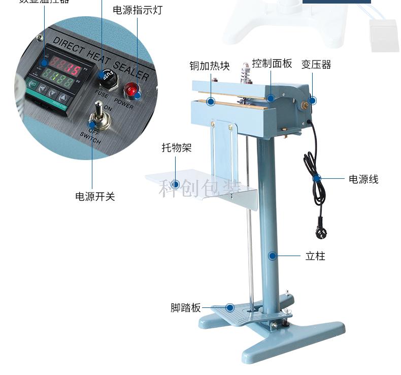 PFs - 300dd pedal / Máquina de sellado de bolsas de plástico marco de aluminio sin placa térmica calentamiento de bloques de cobre