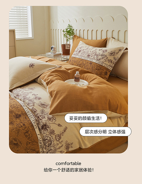 Ropa de cama engrosada, lana molida de algodón, cuatro juegos de algodón, 100 juegos de algodón, otoño e invierno, tres juegos de sábanas y edredones al por mayor