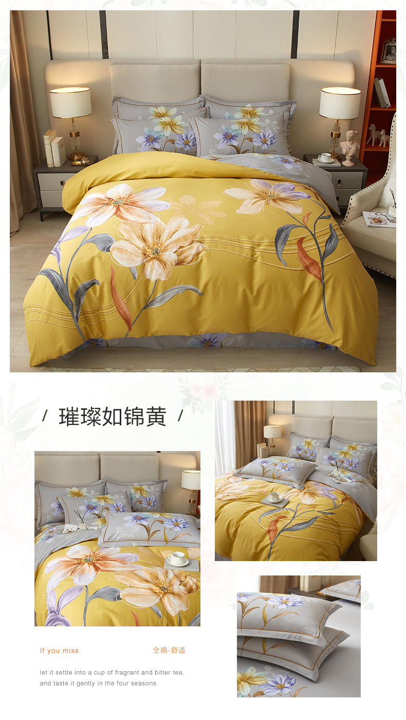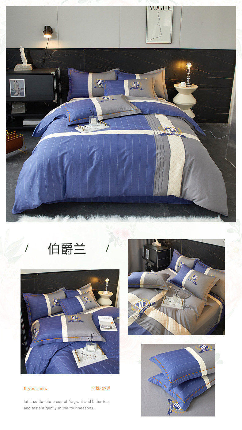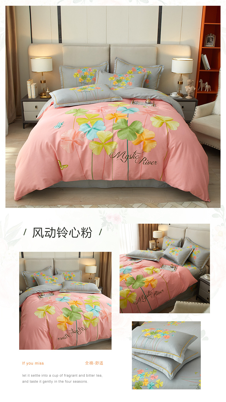 2023 cuatro juegos de sábanas de algodón puro para el hogar de verano en la nueva cama nórdica de Nantong cuatro juegos de ropa de cama