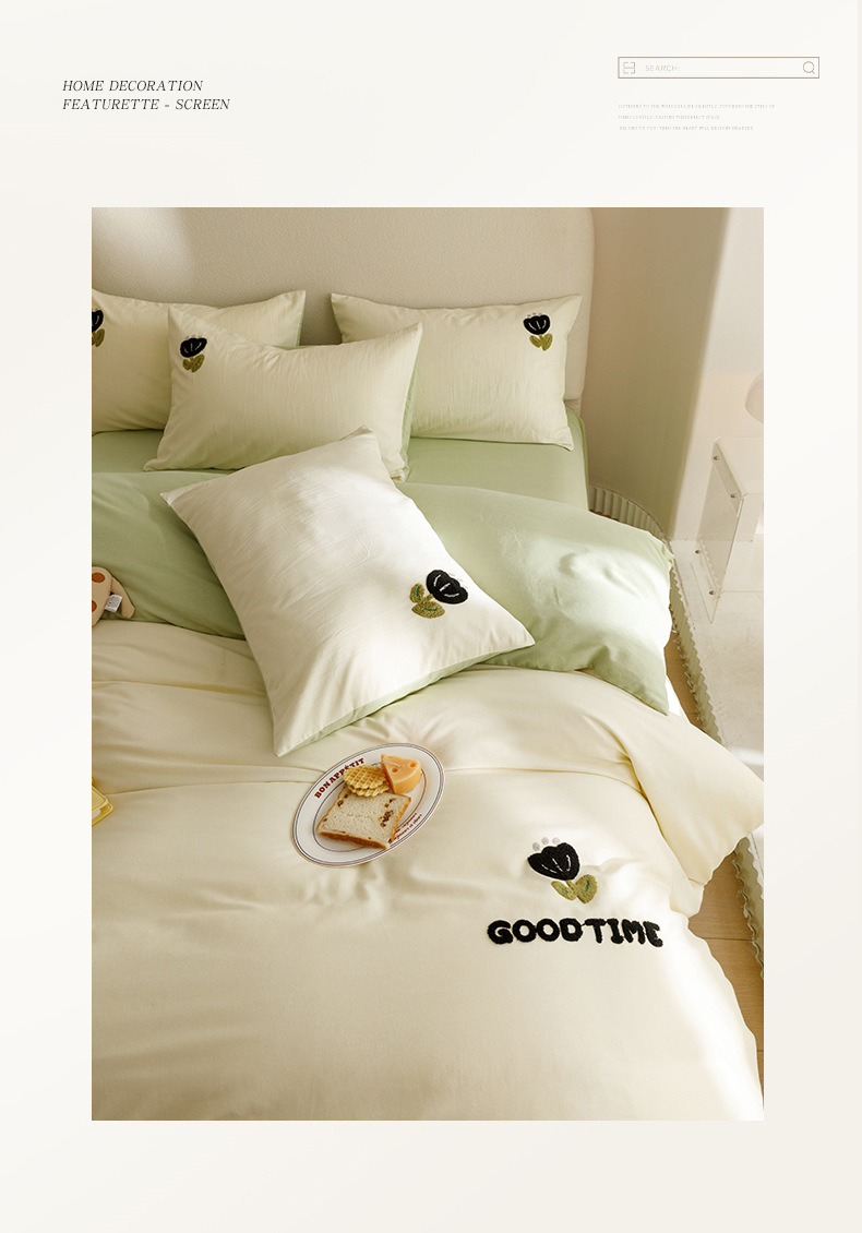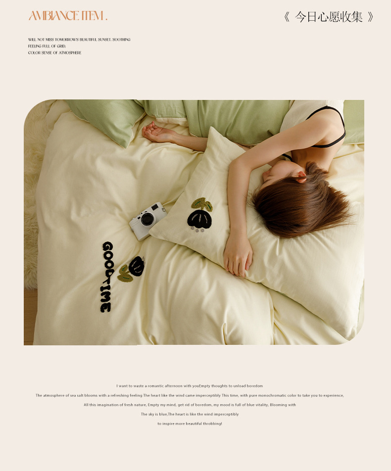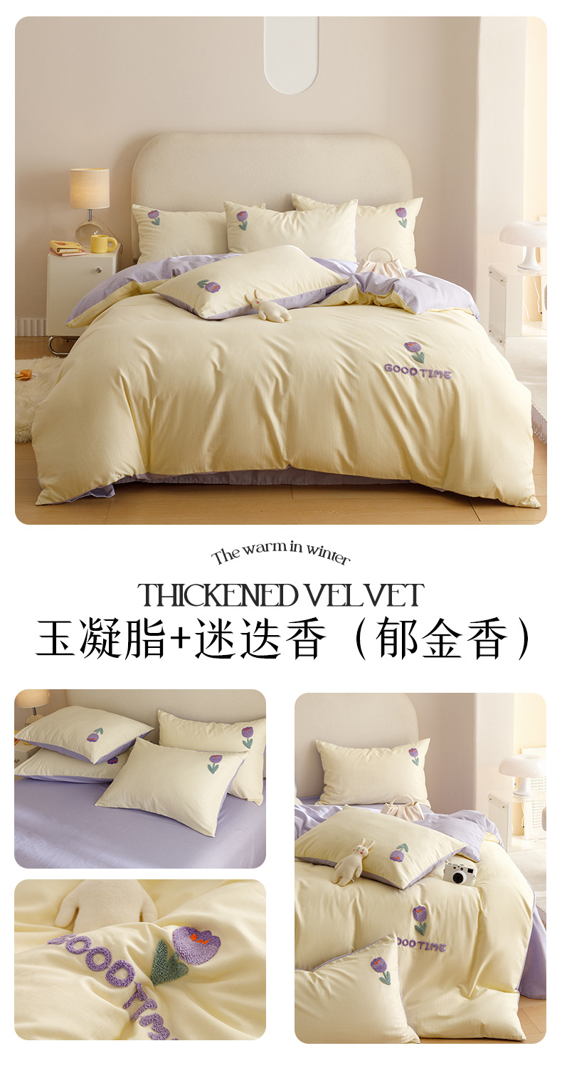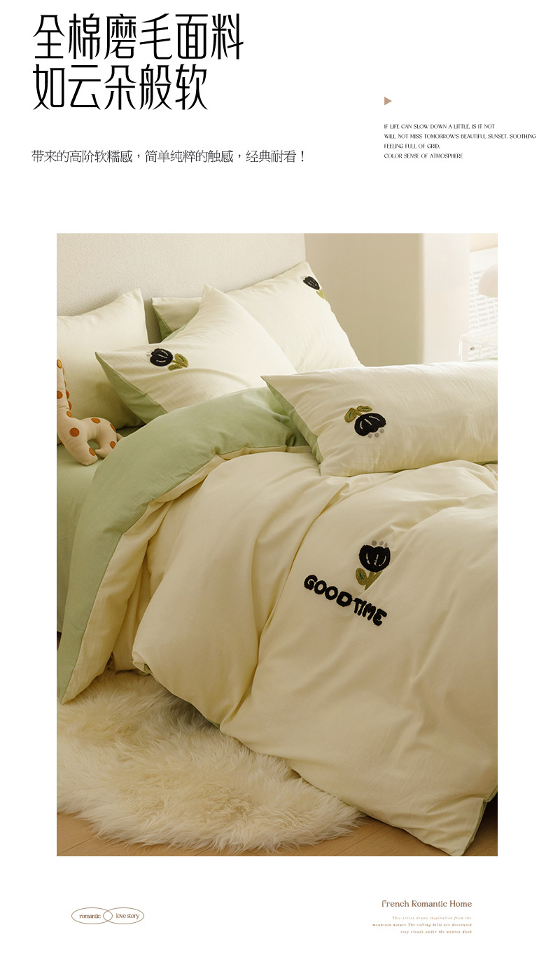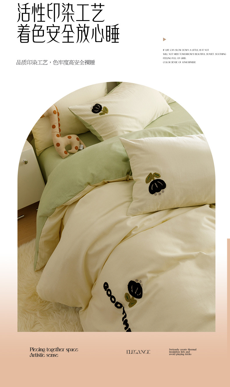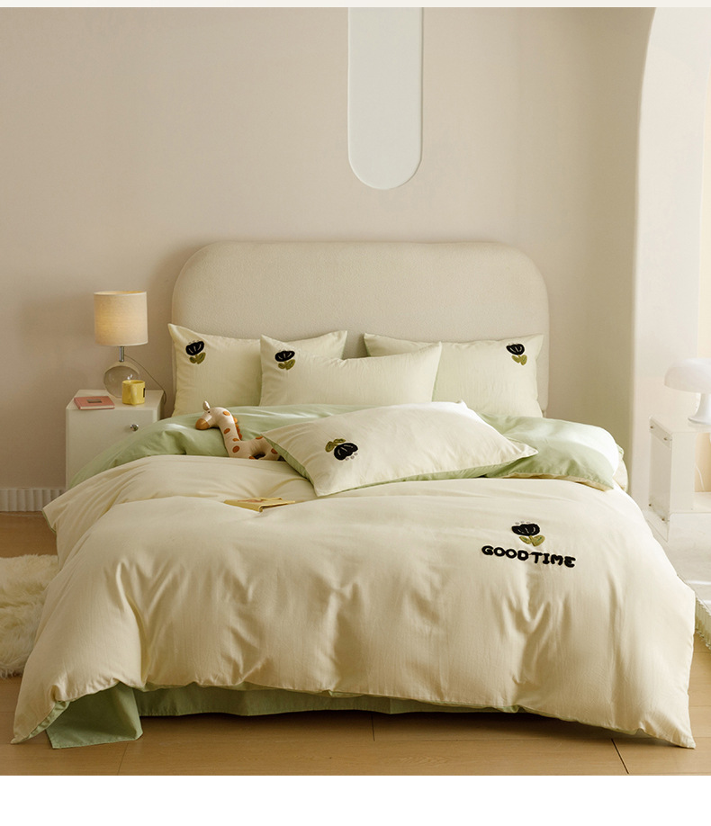 Cuatro juegos de ropa de cama de algodón molido de color sólido, cuatro juegos de ropa de cama de algodón puro, sábanas de cama, toallas de bambú, tres juegos de dormitorio bordado