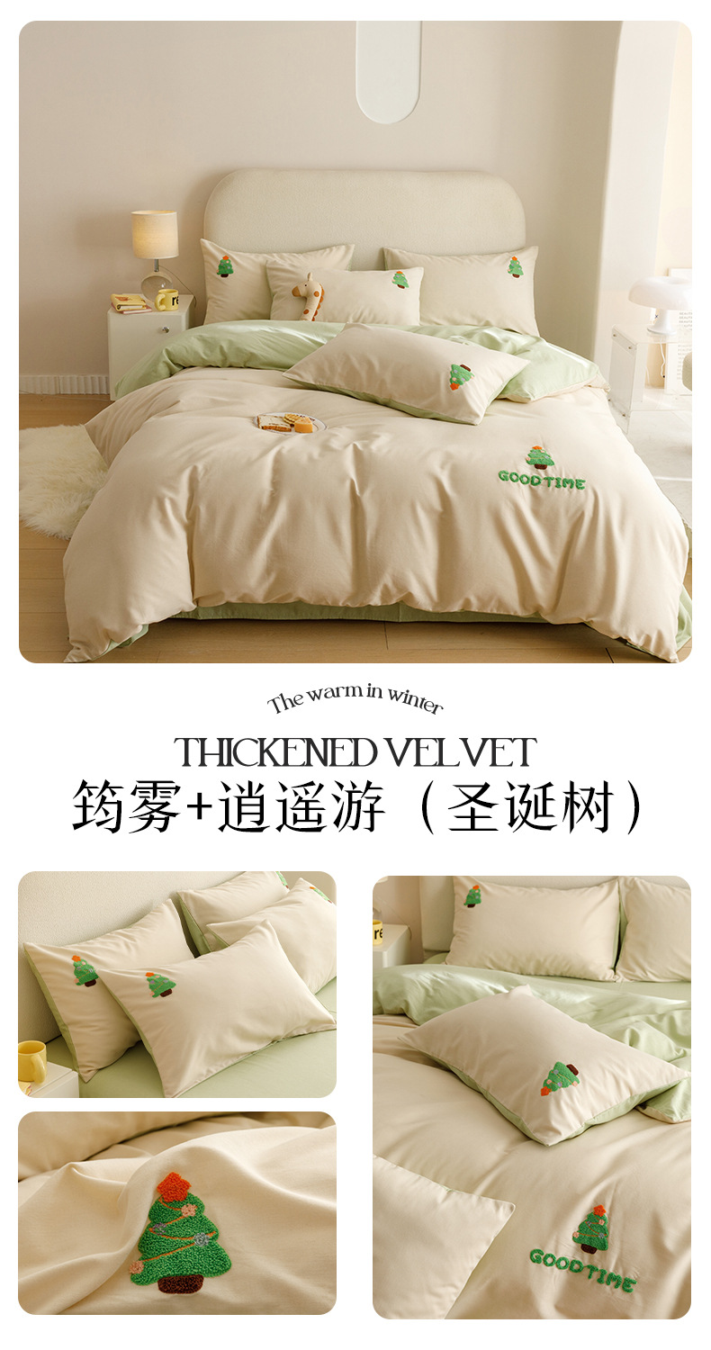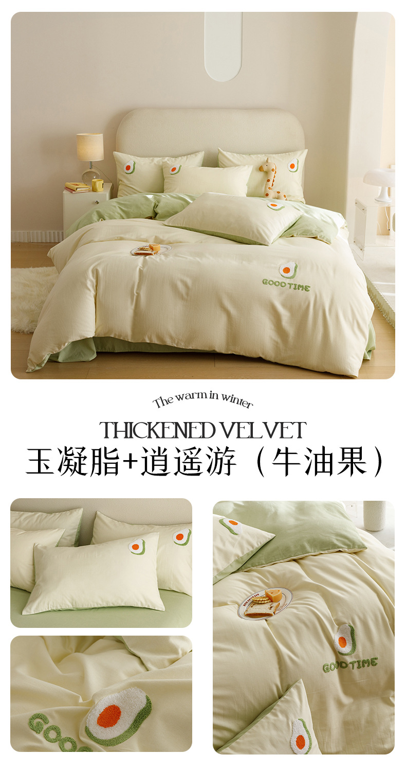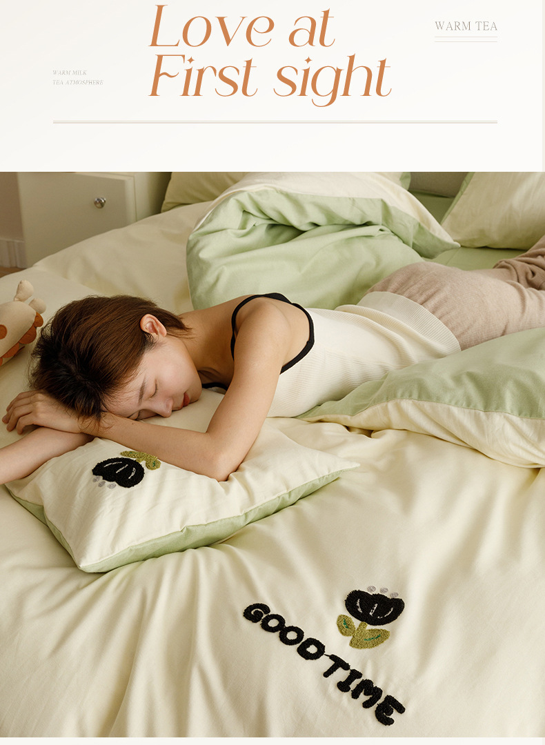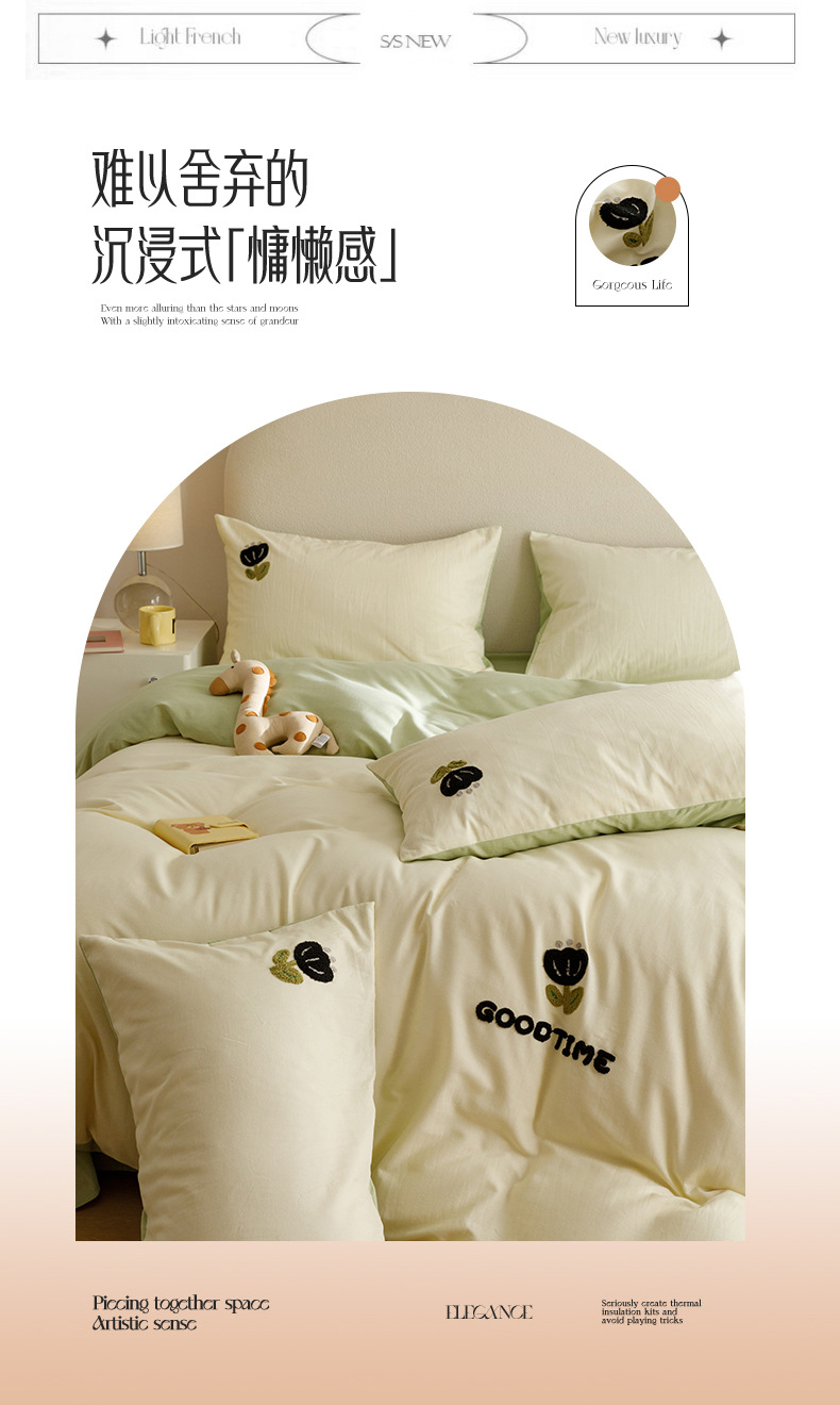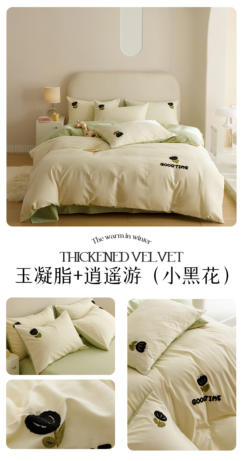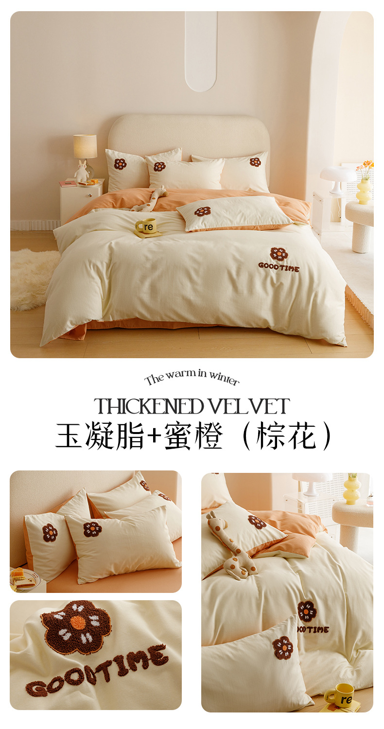 Cuatro juegos de ropa de cama de algodón molido de color sólido, cuatro juegos de ropa de cama de algodón puro, sábanas de cama, toallas de bambú, tres juegos de dormitorio bordado