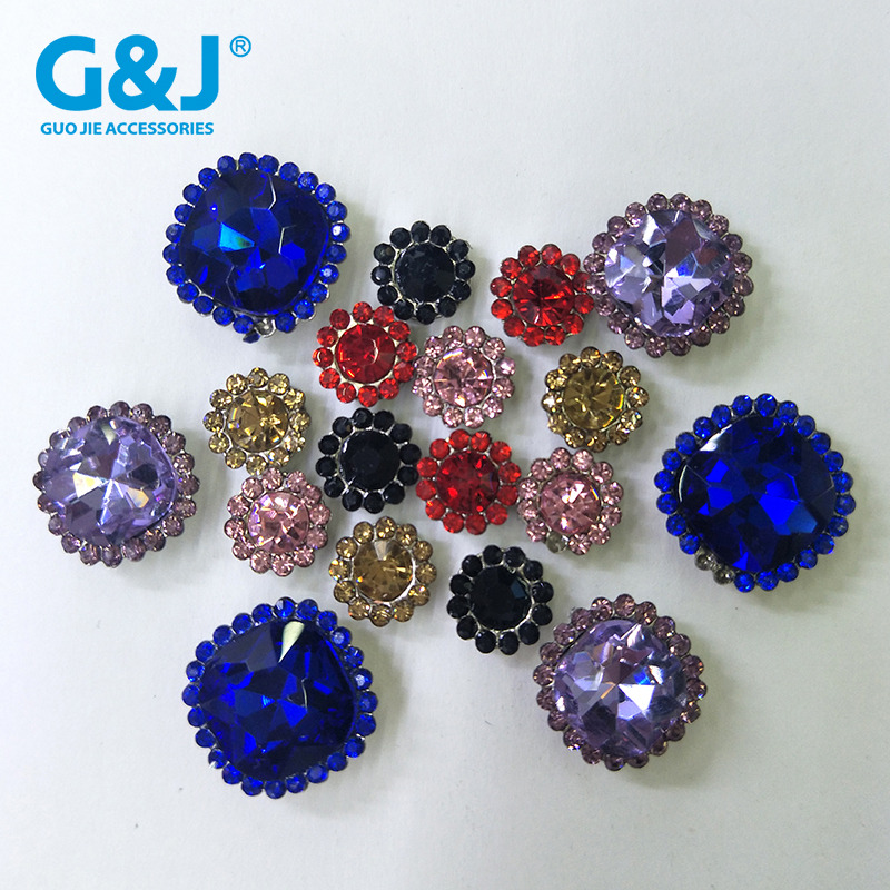 Accesorios de botones de costura de mano de viscosa para prendas de vestir de base metálica de perforación de flores solares bicolor mezcladas con diamantes de agua de moda