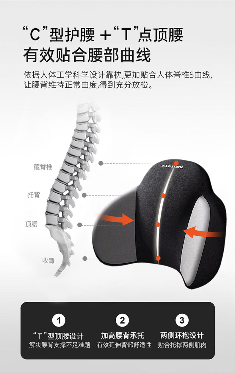 Almohada lumbar del automóvil memoria almohadilla lumbar de algodón protección del respaldo lumbar soporte lumbar juego de almohadilla delantera del asiento del automóvil
