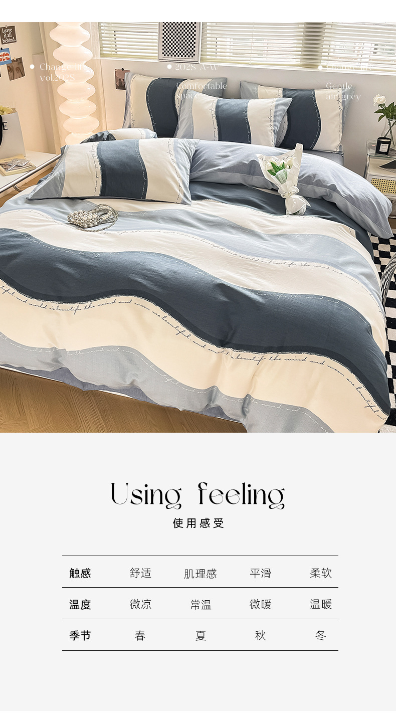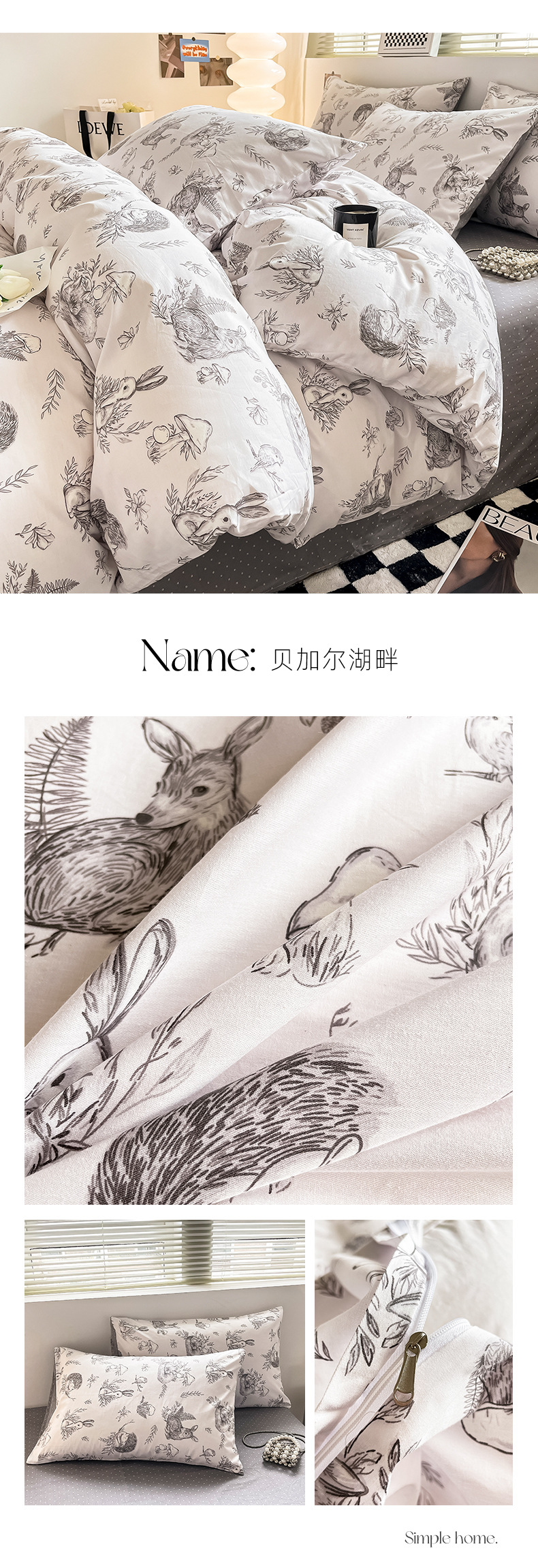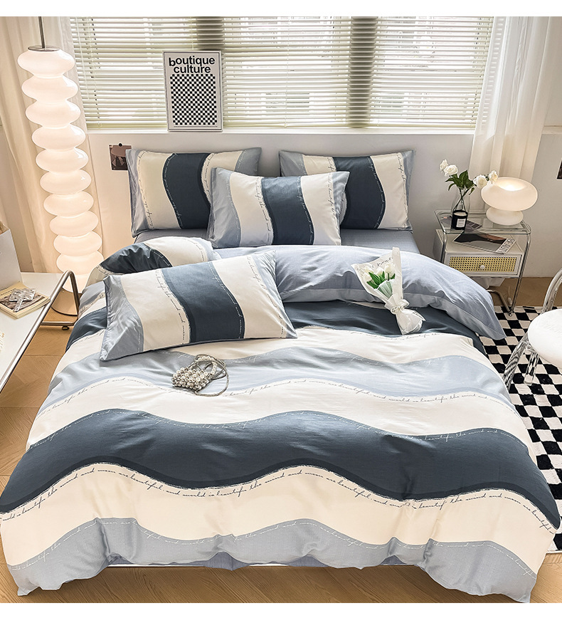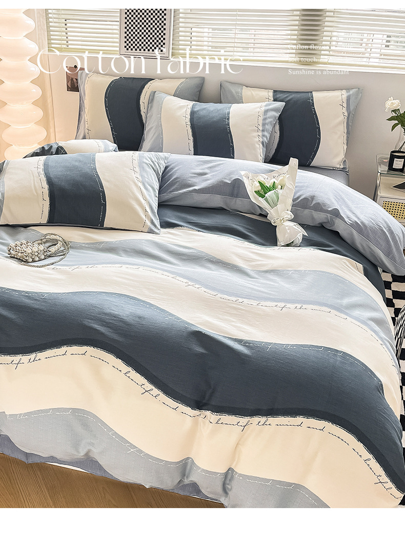 Nuevo juego de edredones de algodón de cuatro piezas de viento nórdico, ropa de cama universal para dormir desnuda y piel al por mayor en todas las estaciones