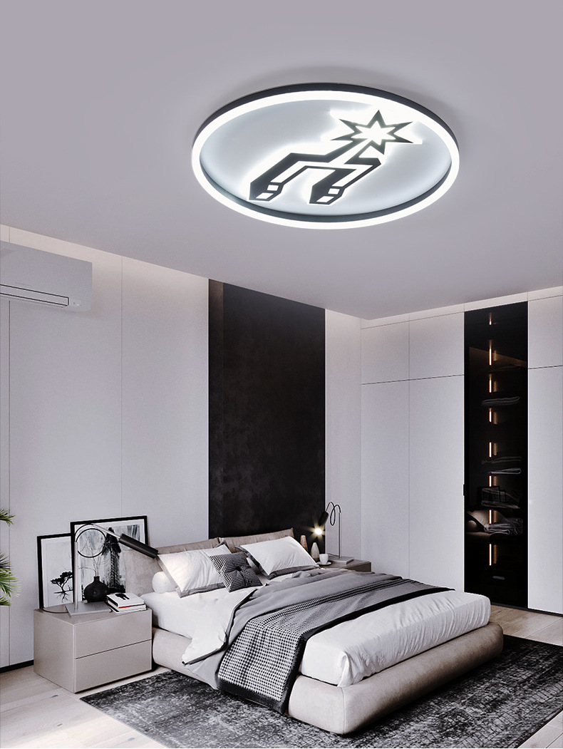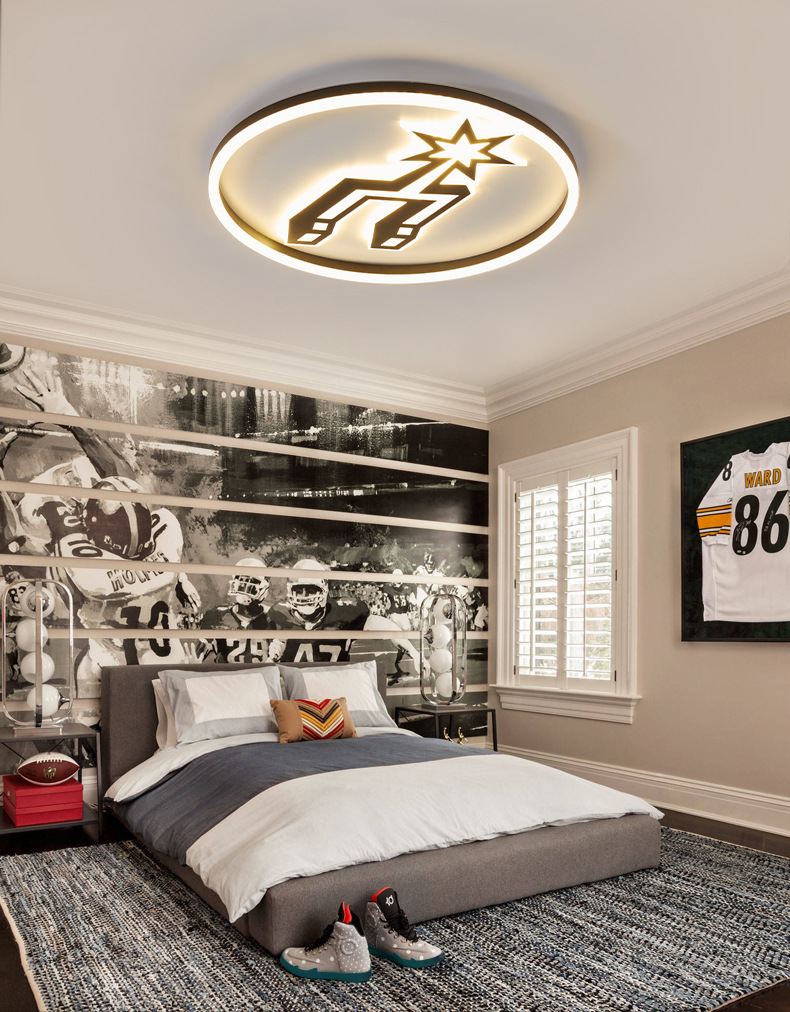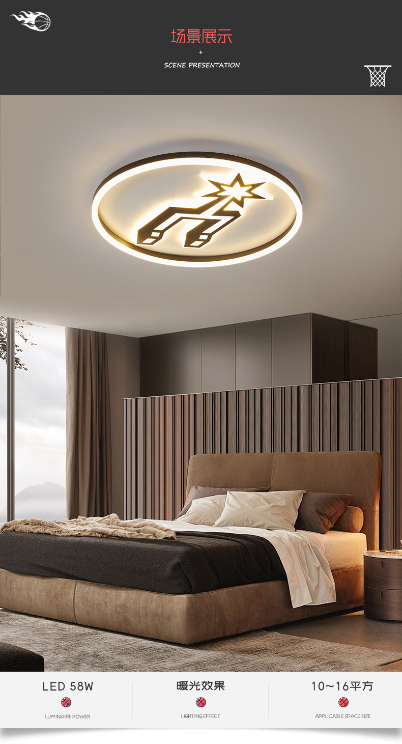 Habitación infantil lámpara de techo, habitación de niño lámpara de dormitorio LED protección ocular dibujos animados creativos NBA baloncesto forma lámparas inteligentes