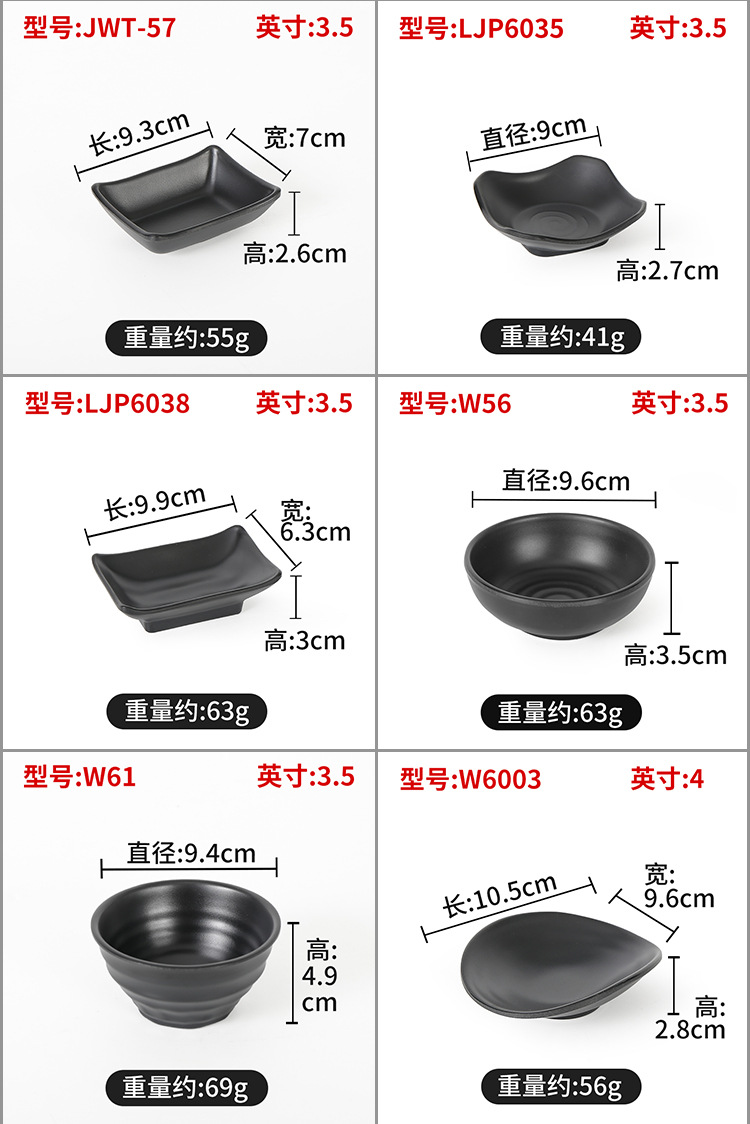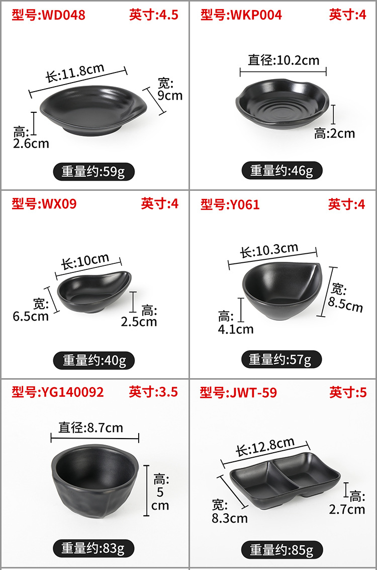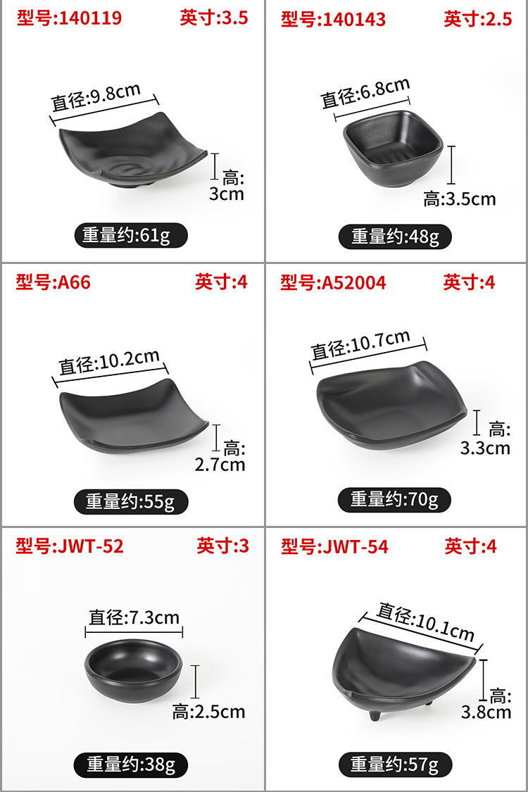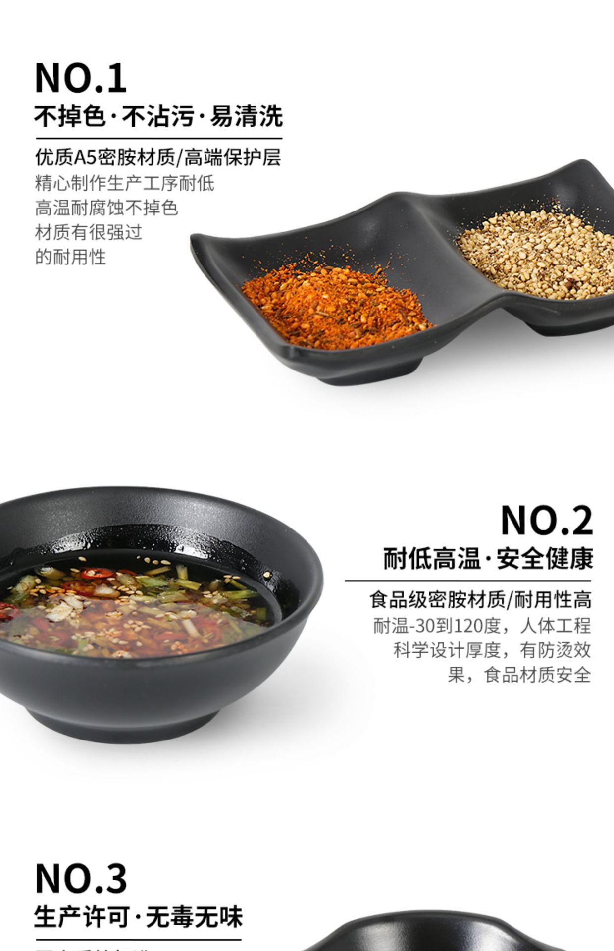 Vajilla de barbacoa de melamina, plato de plástico, plato de sabor comercial, salsa de salsa, salsa de soja, plato de salsa