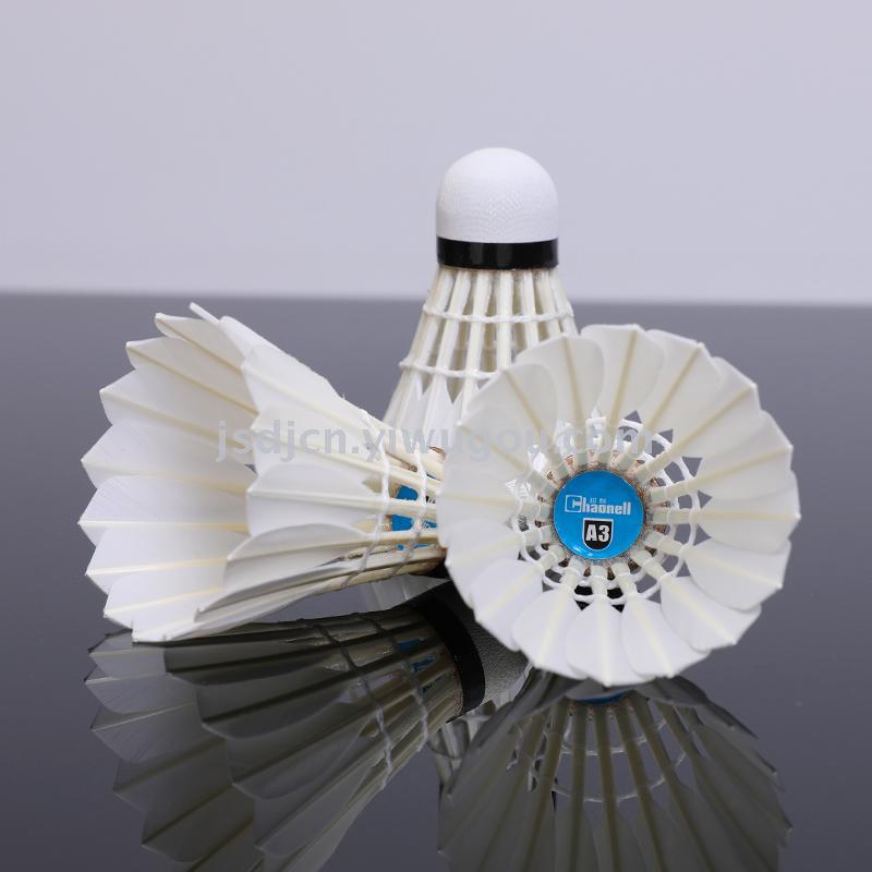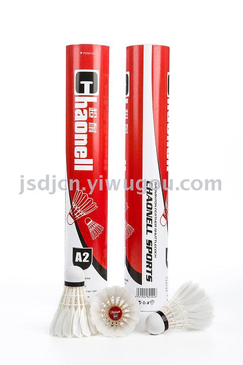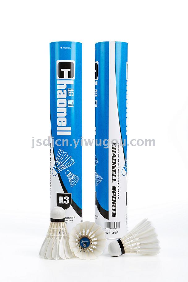 型号:超耐 A3 羽毛球 毛片:鸭毛全圆 球头:三拼球头 辅料:胶水 做工精细飞行稳定,耐打性好,球头的手感极佳。 飞行速度:77 / 76 重量:5.0 装箱:50筒一箱 ,出口时箱内有2个小箱。国内没有小箱。