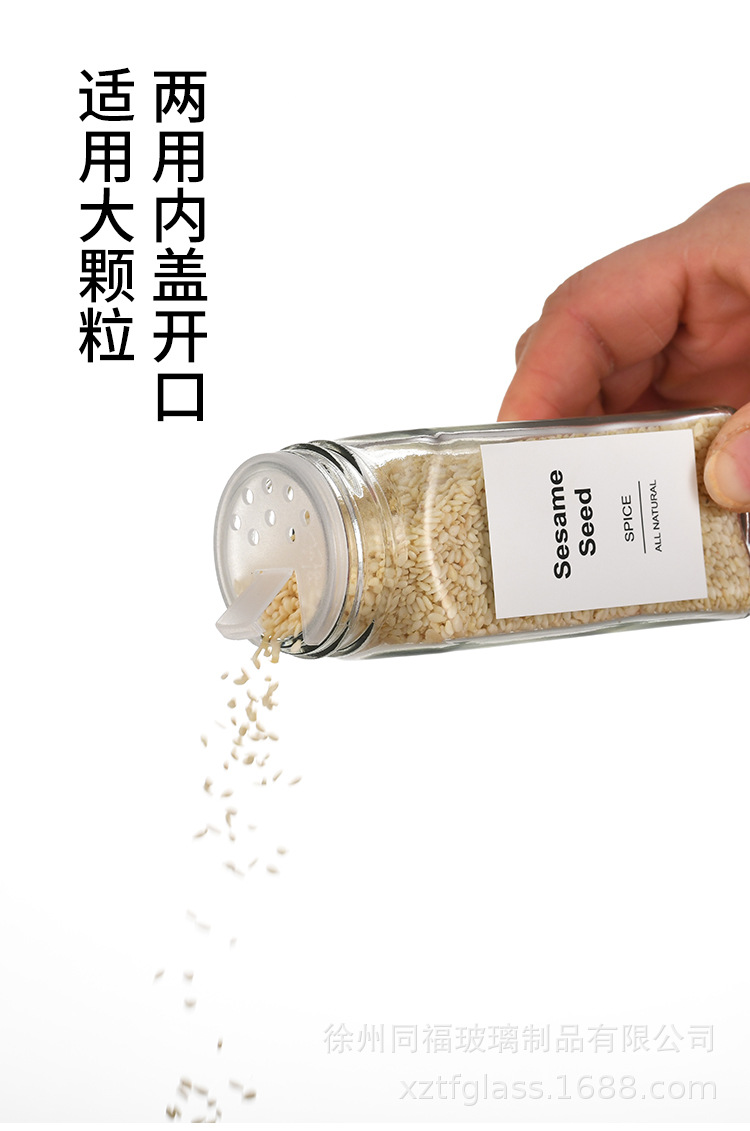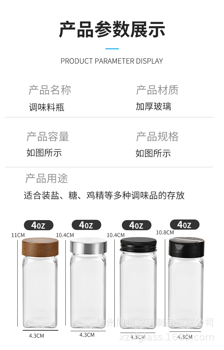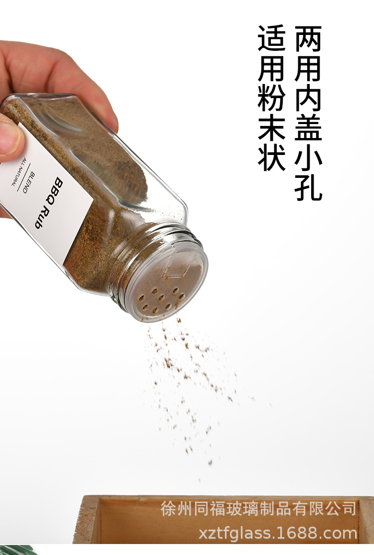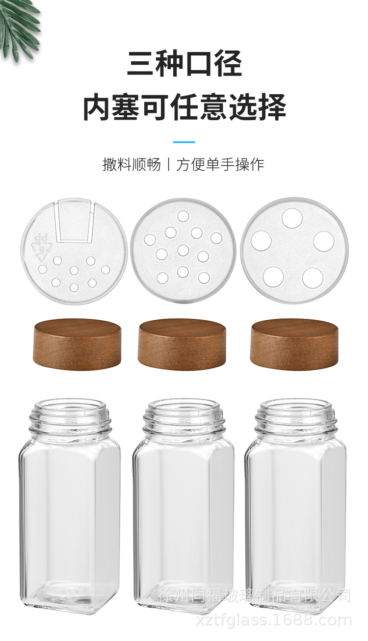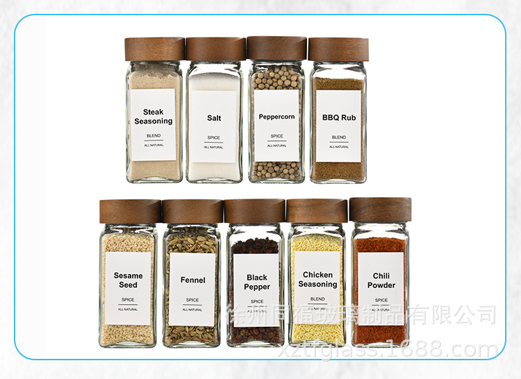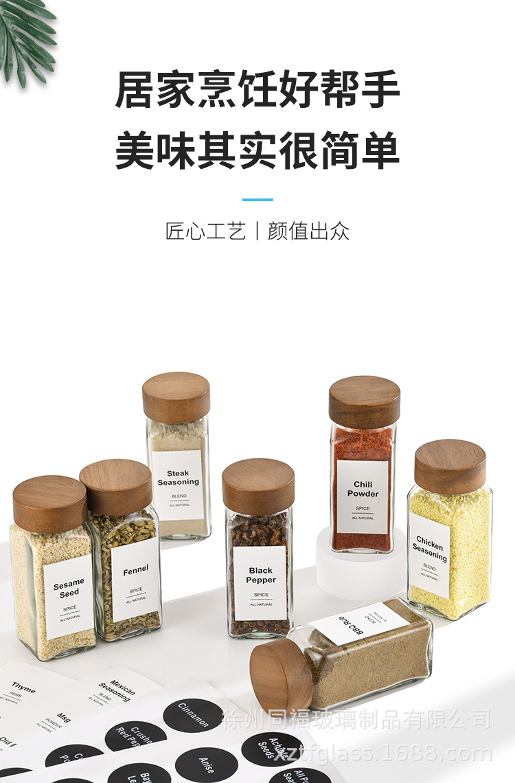 Botella de condimento con tapa de madera de acacia de 120 ml botella cuadrada de vidrio 4oz lata de condimento botella de especias Amazon con agujero botella de polvo