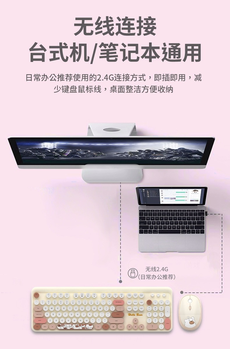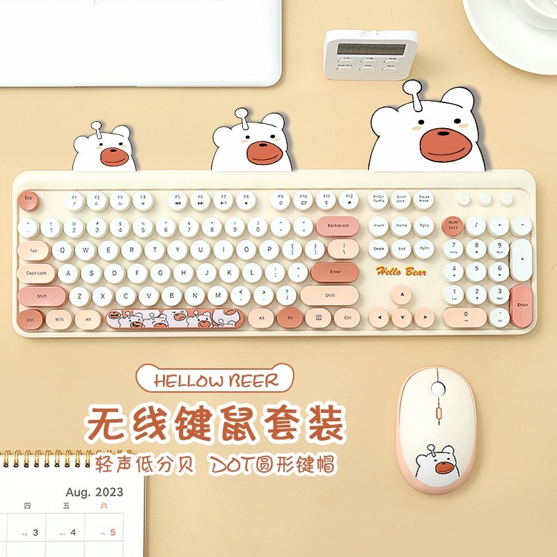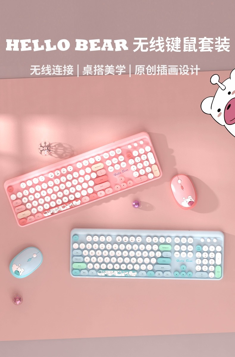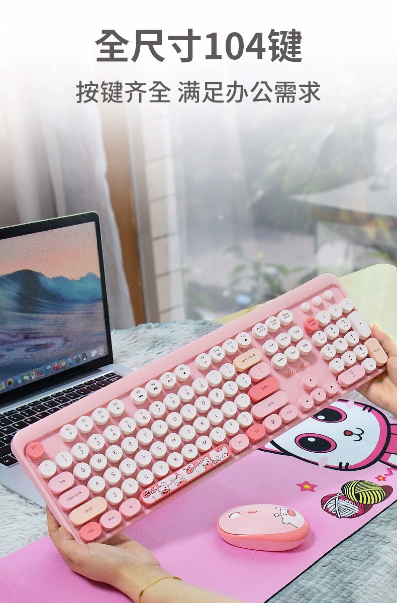 Juego de ratón de teclado inalámbrico con teclas y sombreros suspendidos de rascacielos, Oficina de chicas, alto valor facial, computadora portátil encantadora