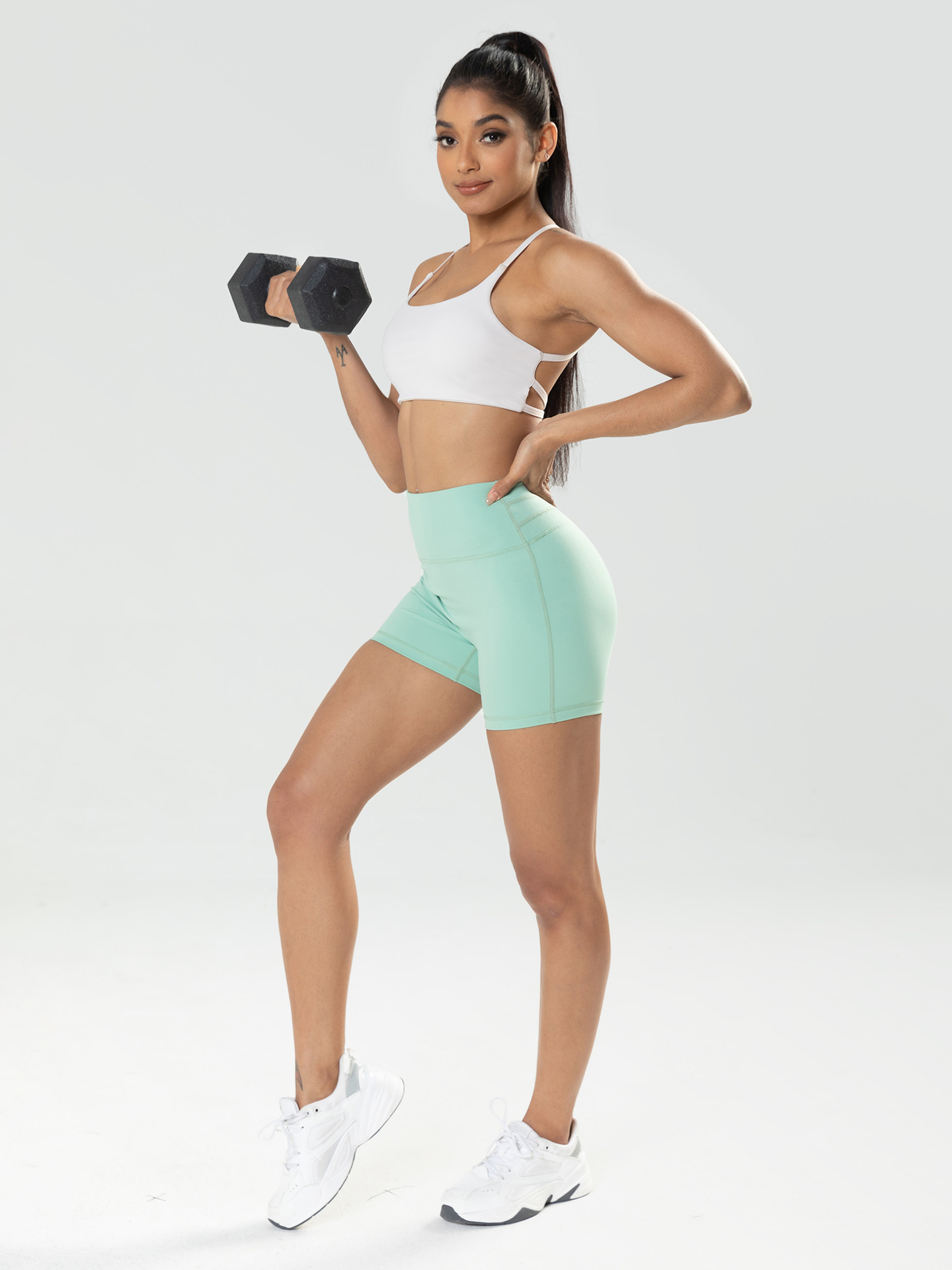 Pantalones cortos deportivos y de fitness, pantalones de melocotón, caderas de melocotón, pantalones de tres puntos europeos y estadounidenses, pantalones ajustados elásticos de cintura alta, pantalones de yoga para mujeres