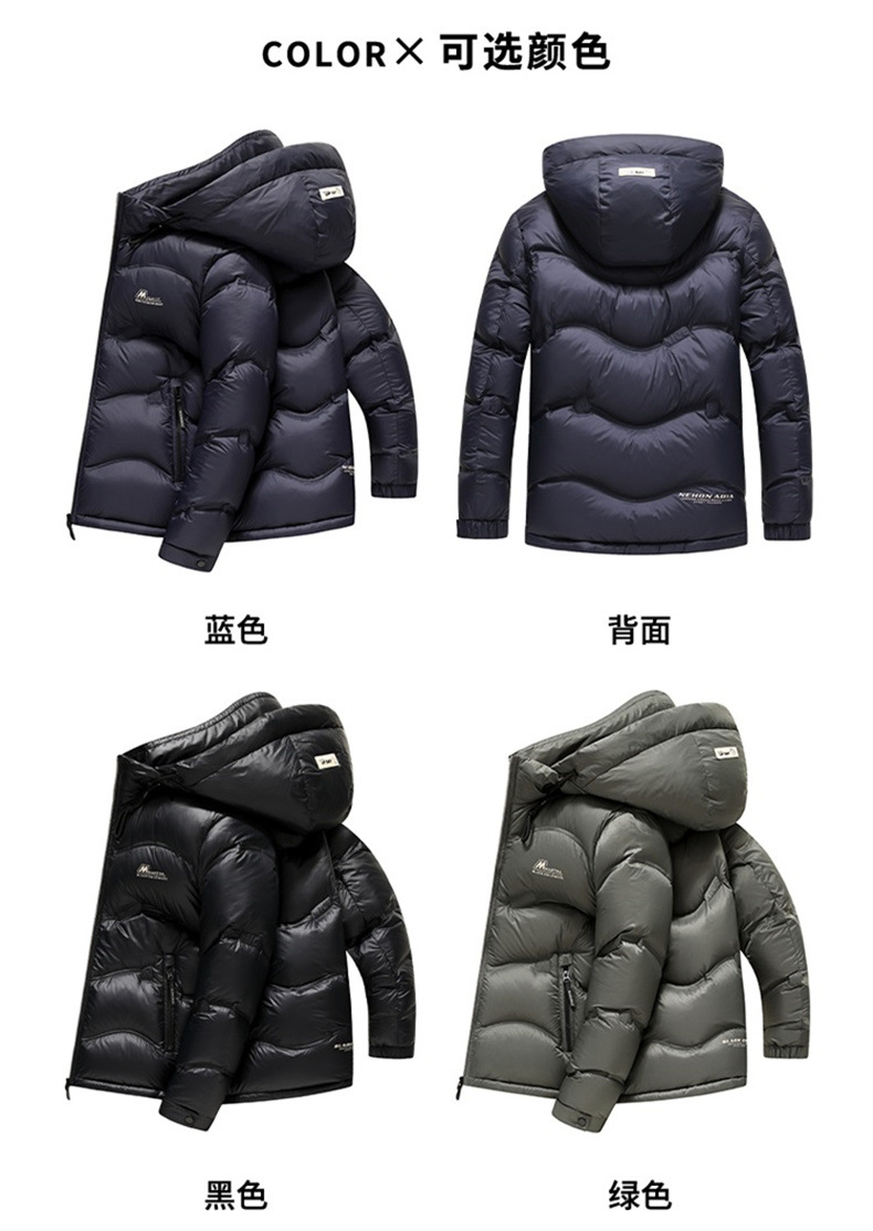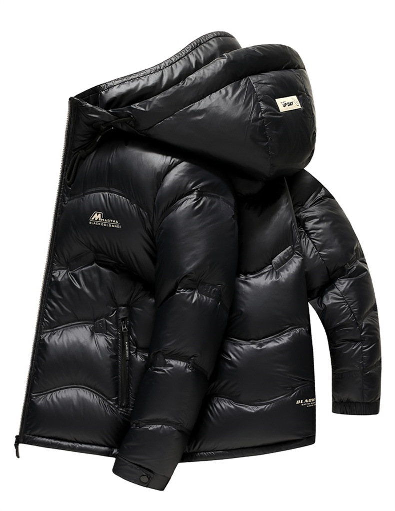 Chaqueta de plumón de 90 plumones de oro negro y fideos brillantes para hombres esponjosos y cálidos, nueva chaqueta de pan de plumón de pato blanco suelta y engrosada en invierno