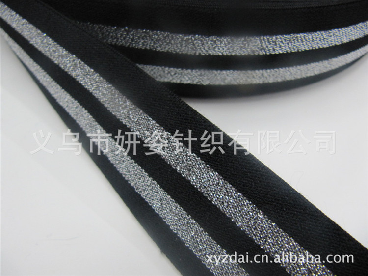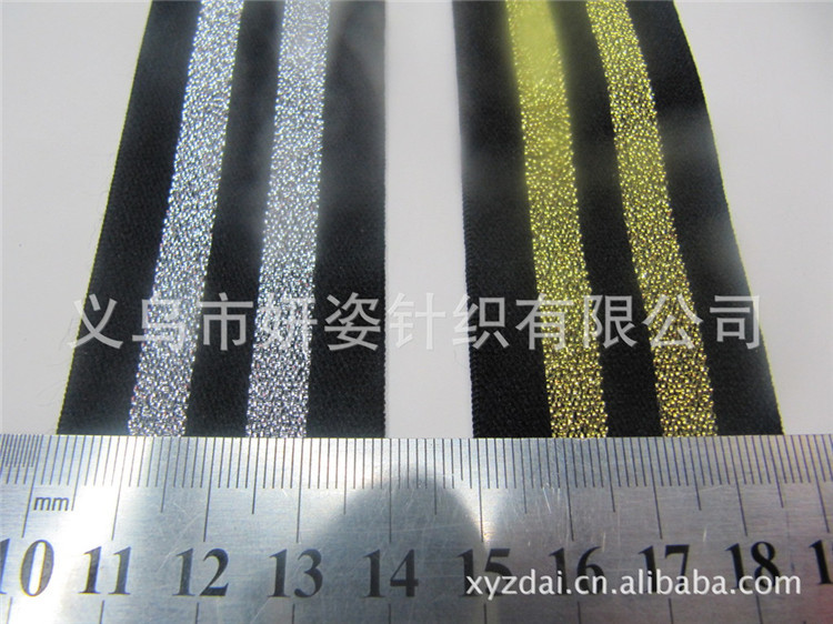 按普通分类可以分为以下几种: 运动松紧带--------是由纱线经络筒,卷纬形成纬线管后,插在编织机的固定齿座上,纬纱管沿8字形轨道回转移动,以牵引纱线相互穿插编织. 医疗用品松紧带----的ph值在弱酸性和中性之间,将不会引起皮肤的搔痒,不会破坏皮肤名义的弱酸性环境 提花涤纶。 尼龙混淆松紧带-------在干,湿情况下弹性和耐磨性都较好,尺寸牢固,缩水率小,是很好的服饰辅助资料. 宽幅松紧带--------是以牵引纱线彼此交叉编织而且锭数为奇数所织成的扁片状松紧带。 彩条刚性带--------可单面提花或双面提花,松紧带,织带手感极佳,色泽娇艳,不磨伤衣料.。 提花子母带---------以独特的格局,无穷的变革元素正在冲破传统织带只是装饰的功能,在服饰搭配风格跟功效上与品牌灵魂无缝连接融为一体。 印花松紧带---------是在松紧带上印上不同的花纹和图案,配合不同的底带,产生不同的成果,变更万千,其中包括热转印花和丝印花。 彩条松紧带--------采用经编衬纬措施织成.经线在勾针或舌针的作用下,套结成编链,纬线衬于各编链之中,把分散的各根编链衔接成带,橡胶丝由编链包覆,或由两组纬线夹持。 防滑松紧带--------拥有强度高,耐冲击性强,不易断裂,松紧带 玖庆企业社,耐热性好,耐磨性好等特点。 涤纶松紧带--------是针织(纬编,经编)或机织加工的空想原料,适合制造服装面料,床上用品,及装潢用品等.。 夹绳松紧带--------采取经纬梭织,依靠成圈纱在成圈过程中,运用成圈纱的圆柱与沉降弧,将不交织的经纱与纬纱连结成一个整体,而成为衬经衬纬的夹绳.。 纽孔松紧带--------又名扣眼松紧带或调节松紧带.主要原料为乳胶丝,低弹丝,个别用于孕妇装,儿童衣饰等可调节尺寸。