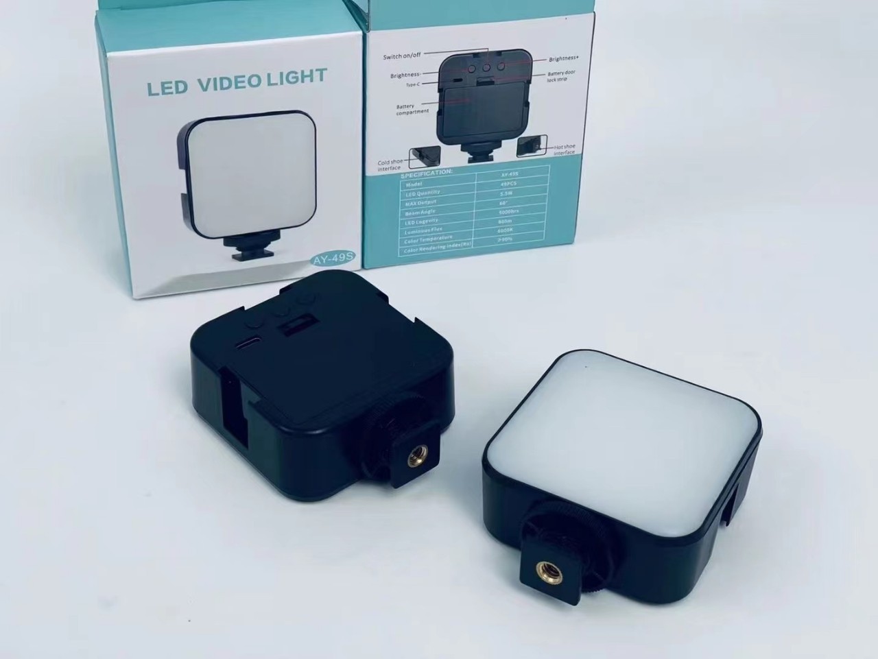 Ay - 49s bolsillo luces de llenado cámara portátil pequeña batería enchufable cuadrado videoconferencia LED