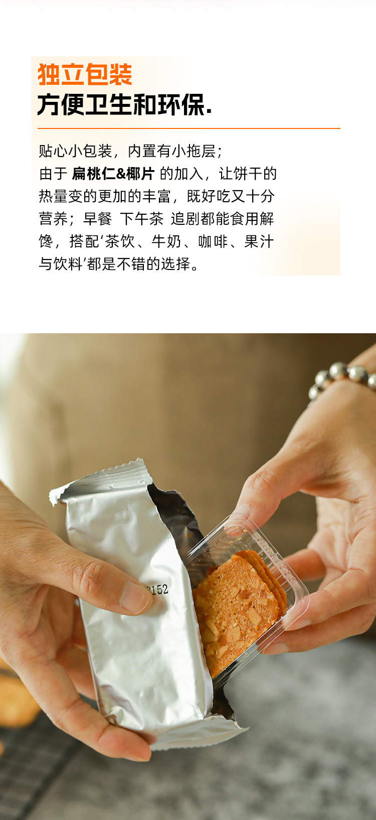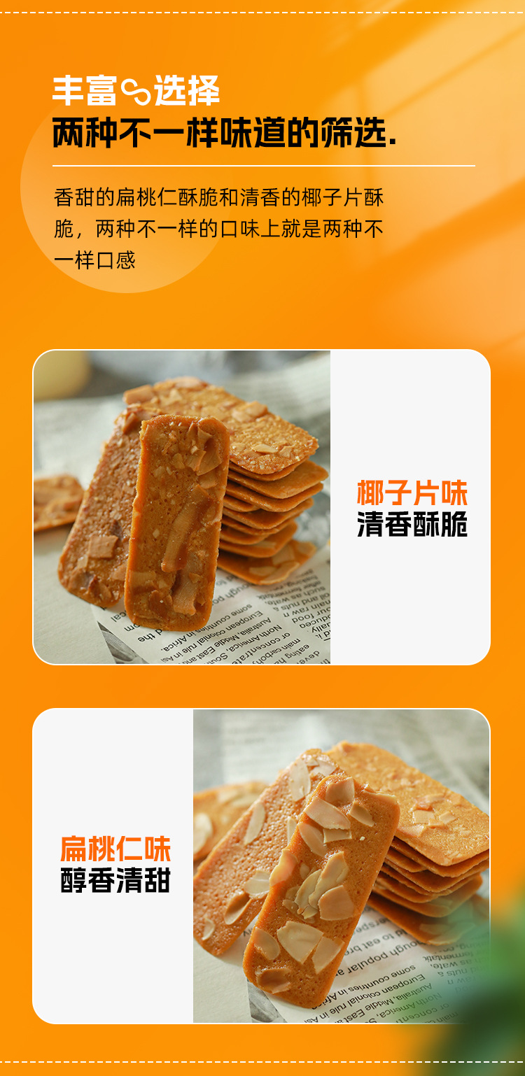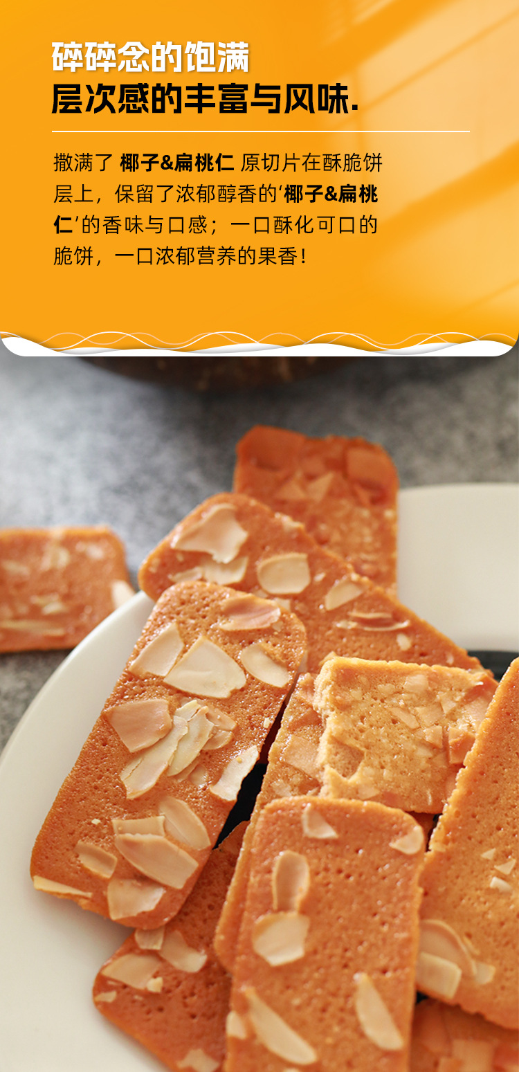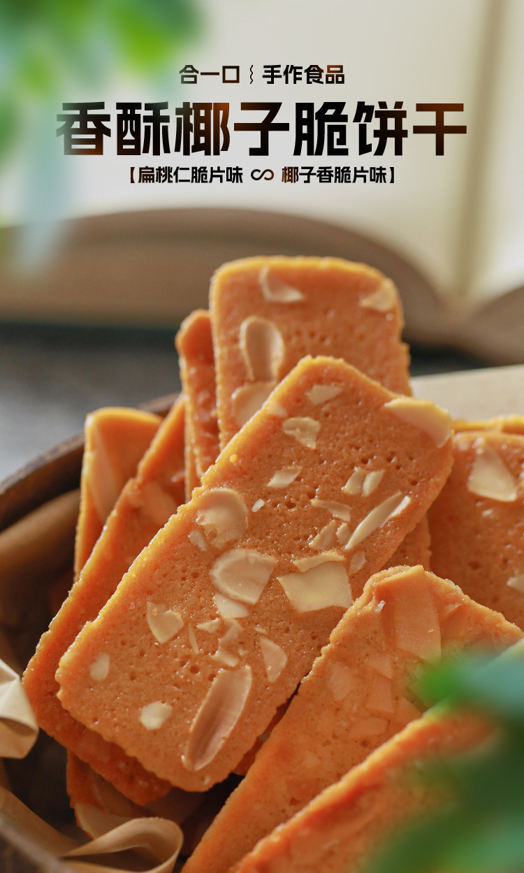 Un bocado de galletas crujientes de nueces, galletas crujientes de almendras, galletas crujientes de almendras, galletas crujientes de coco, bocadillos casuales al por mayor