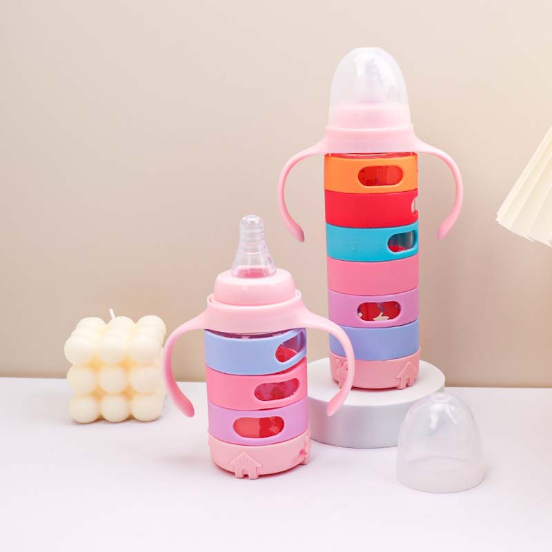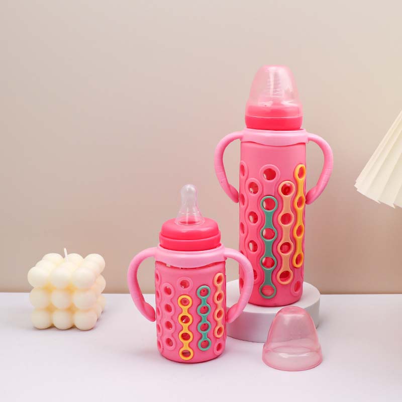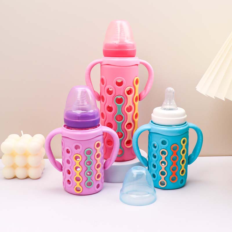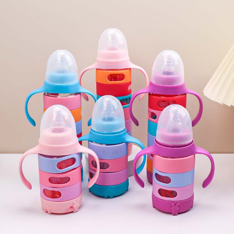 El fabricante vende directamente biberones de vidrio para evitar caídas, biberones de silicona de calibre estándar, biberones de leche materna para bebés y vasos de agua.
